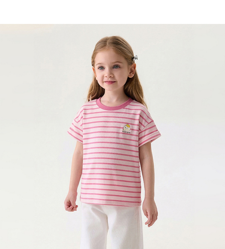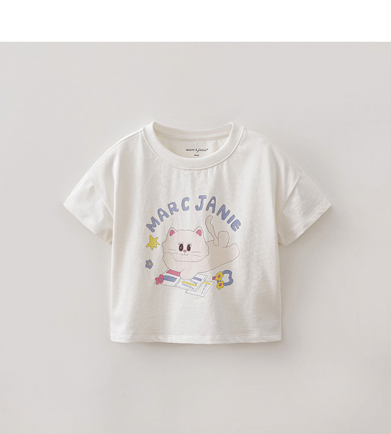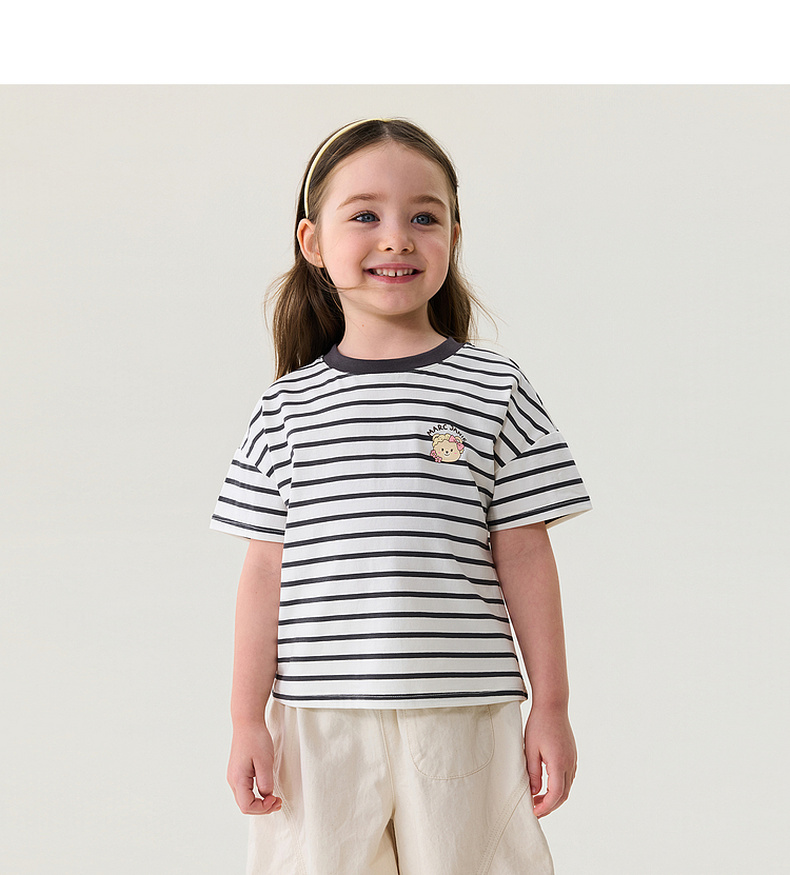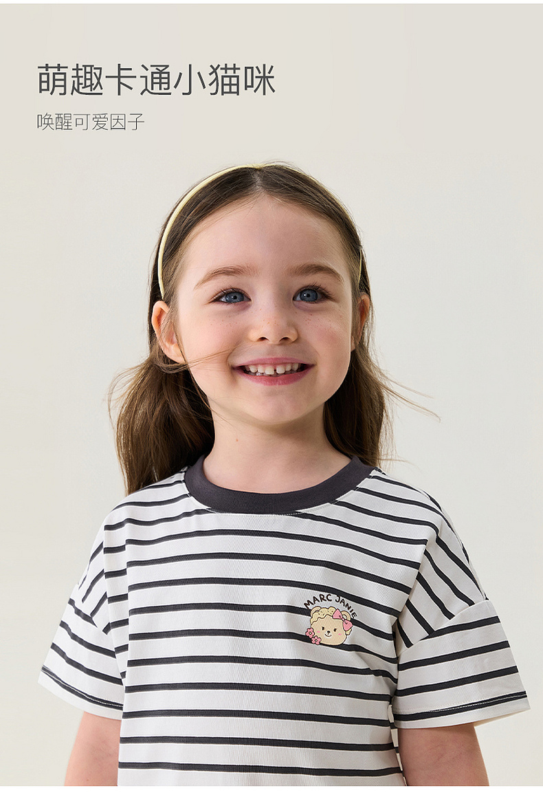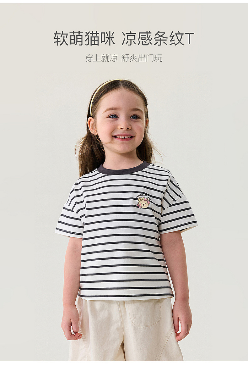 马克珍妮软萌猫咪女童凉感条纹T 2026年夏装新款560836