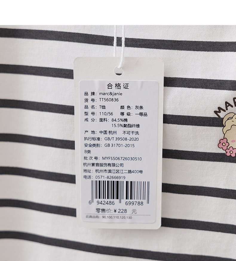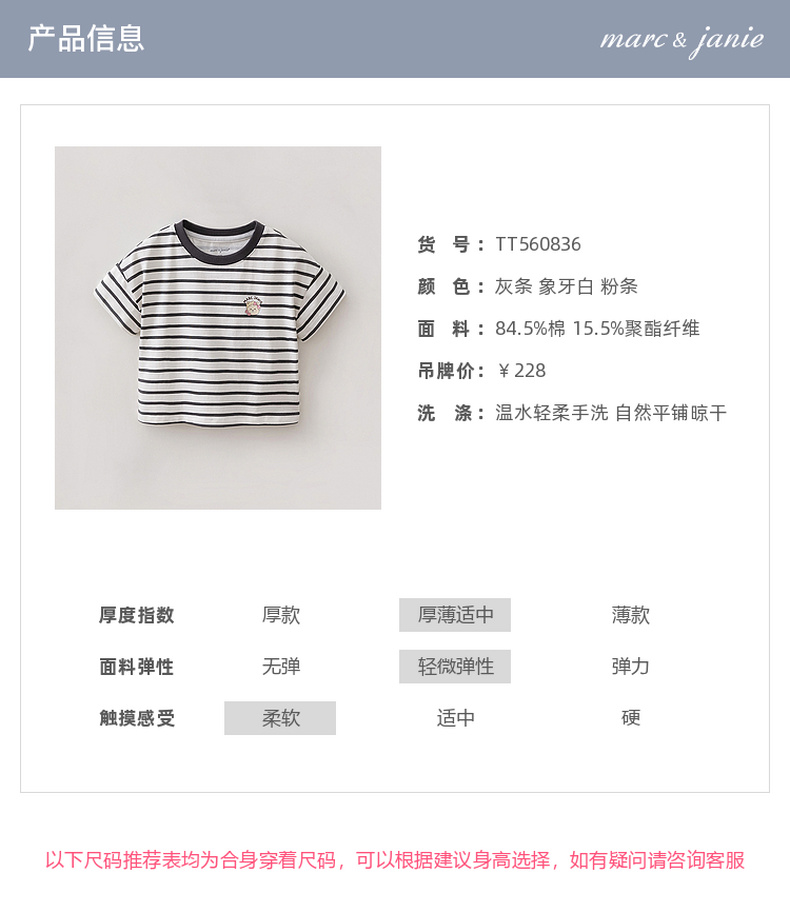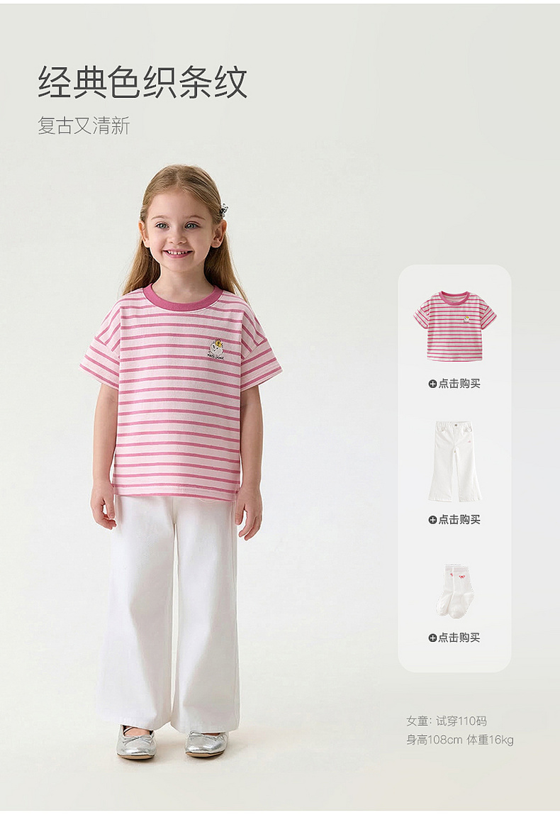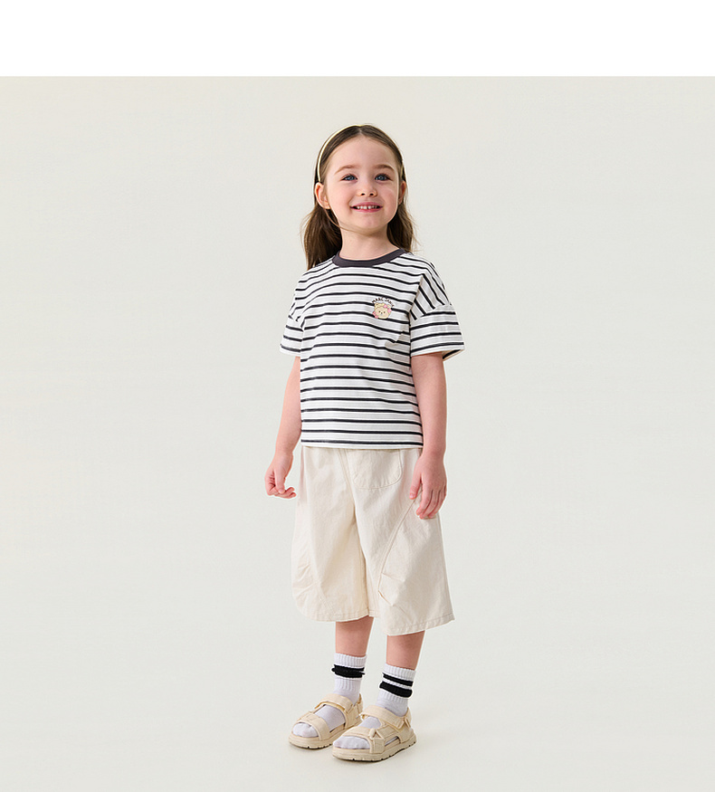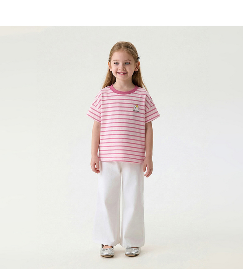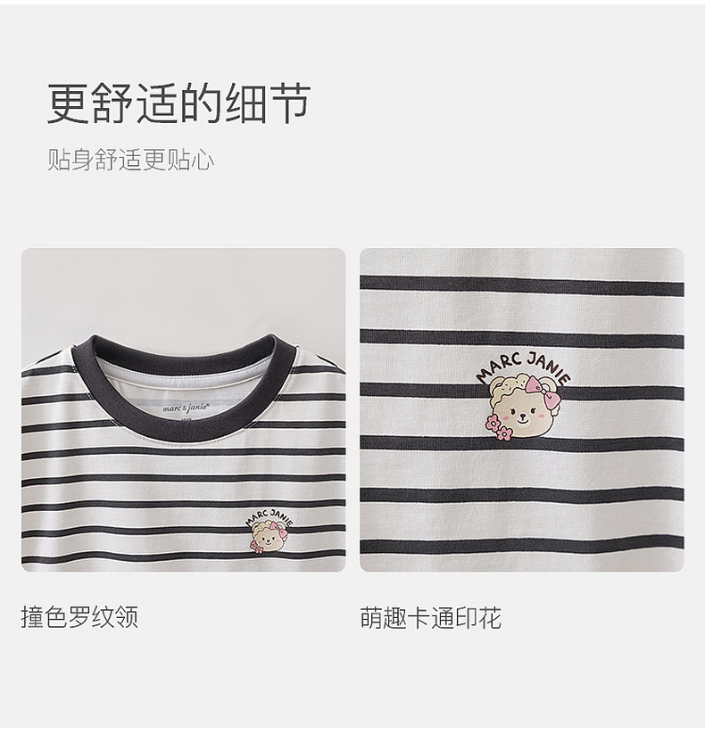 马克珍妮软萌猫咪女童凉感条纹T 2026年夏装新款560836
