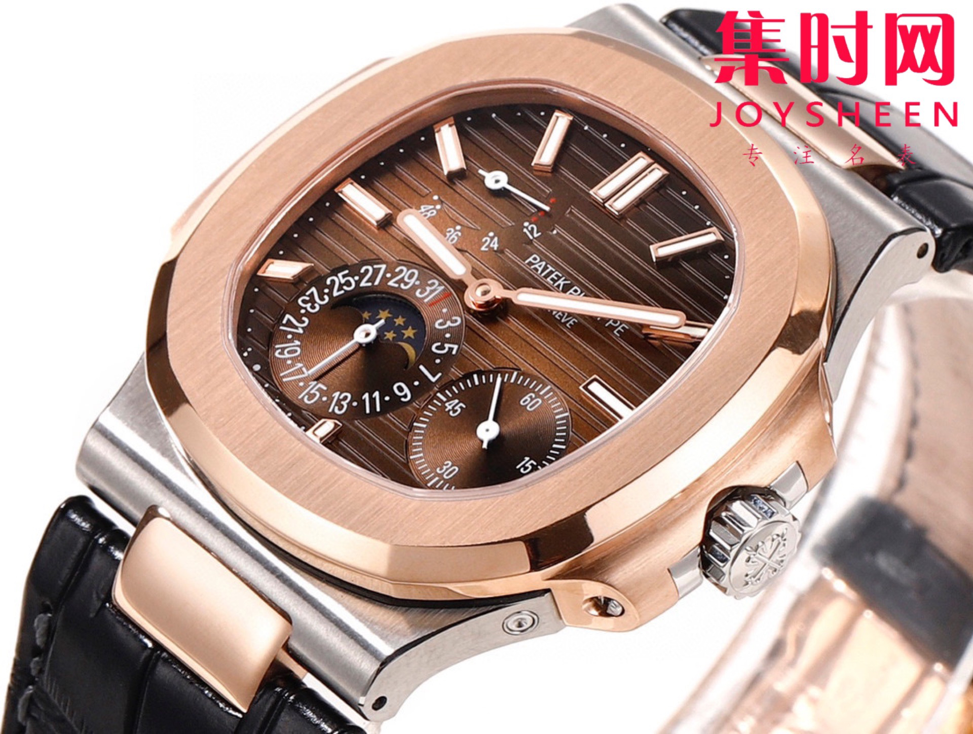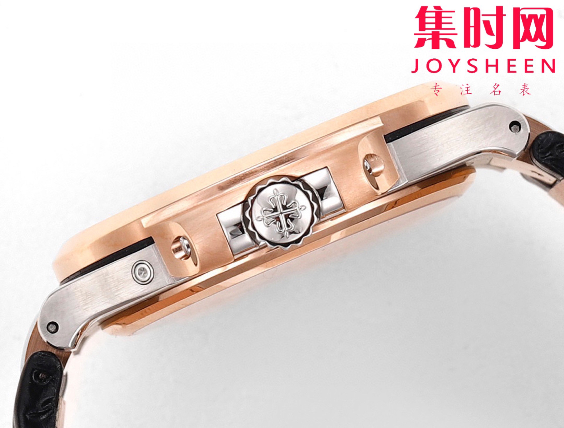 意大利小牛皮表带或316L精钢表带可选,铰链部分根据真正的百达翡丽鹦鹉螺拆解开发,和正品一致的贴合效果,铰链开合角度和正品一致,锁毕声音和正品相同。
