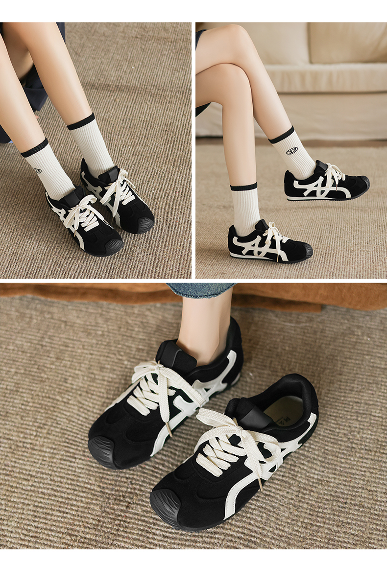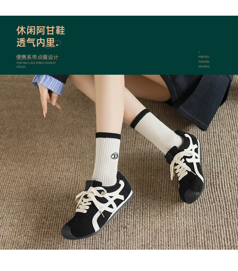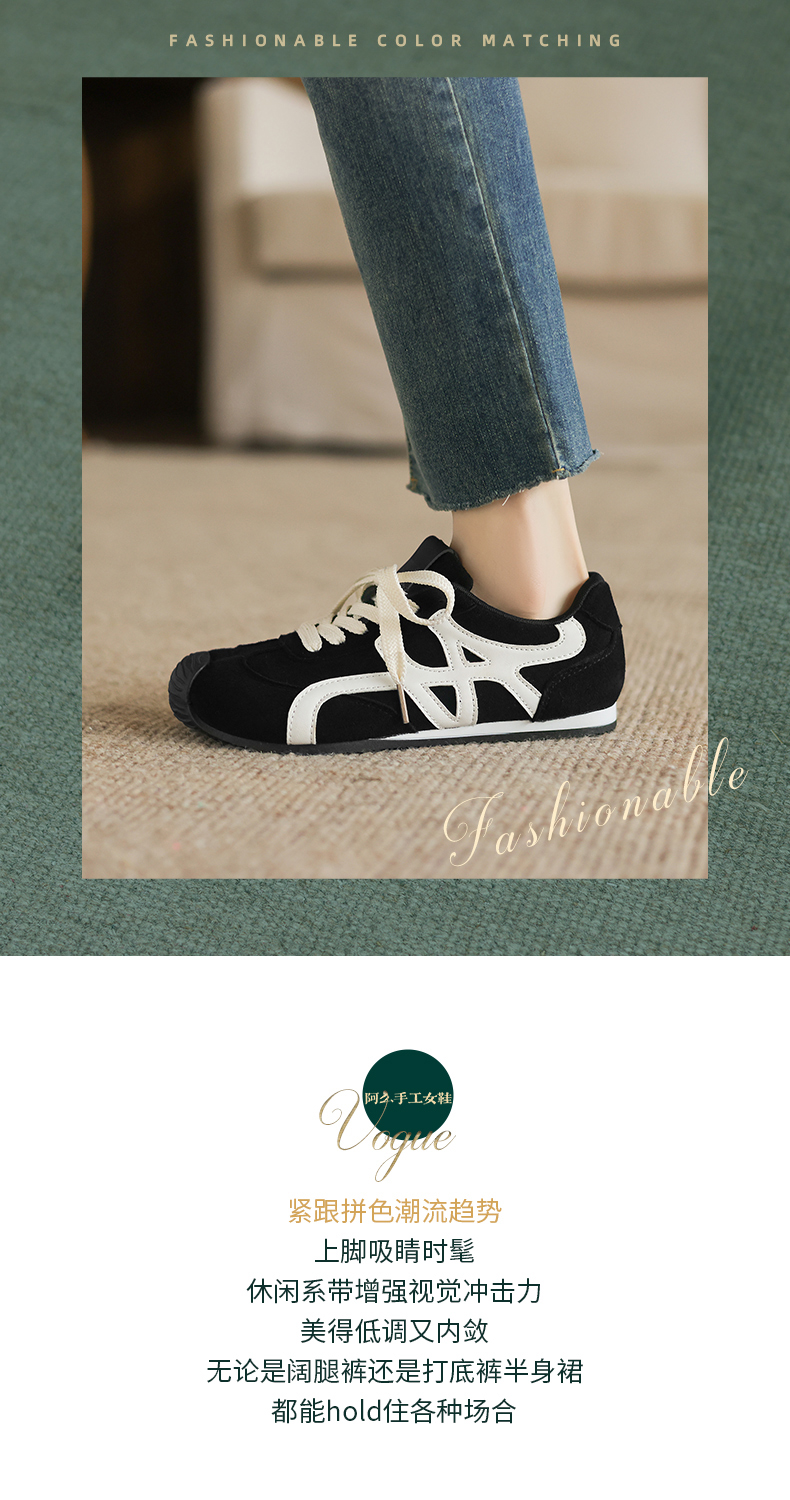阿么手工女鞋厚底德训鞋女2026冬季撞色百搭超火休闲阿甘鞋1.5CM