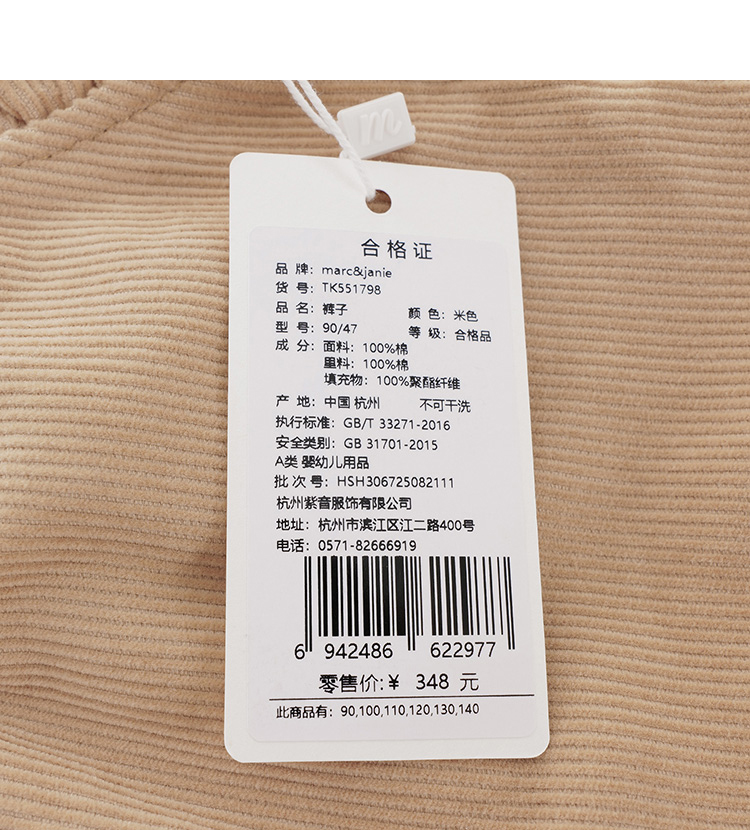 【夹棉】马克珍妮冬装 女童灯芯绒保暖棉裤束脚裤 儿童裤子551798