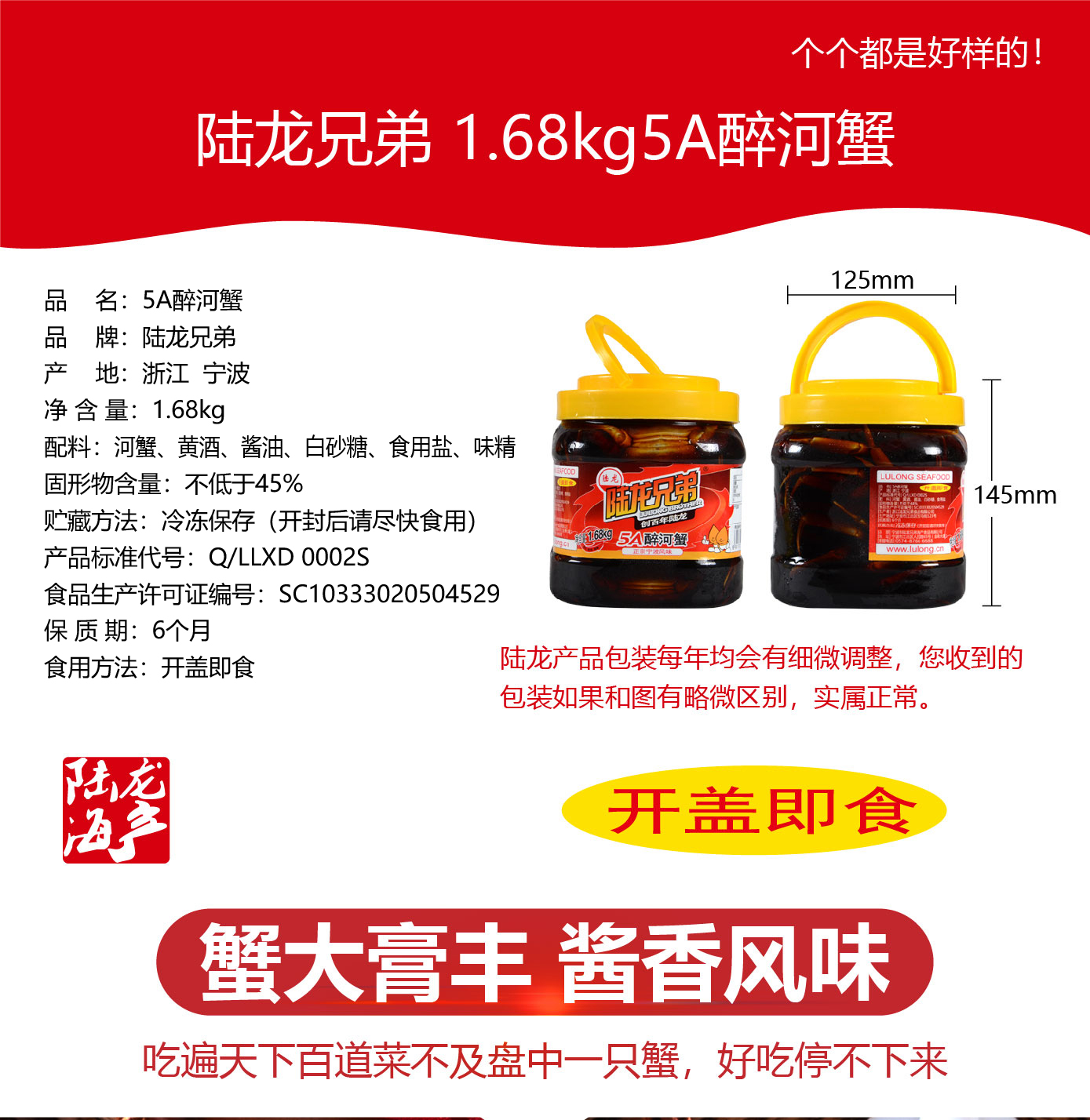 8018陆龙兄弟1.68kg 5A醉河蟹