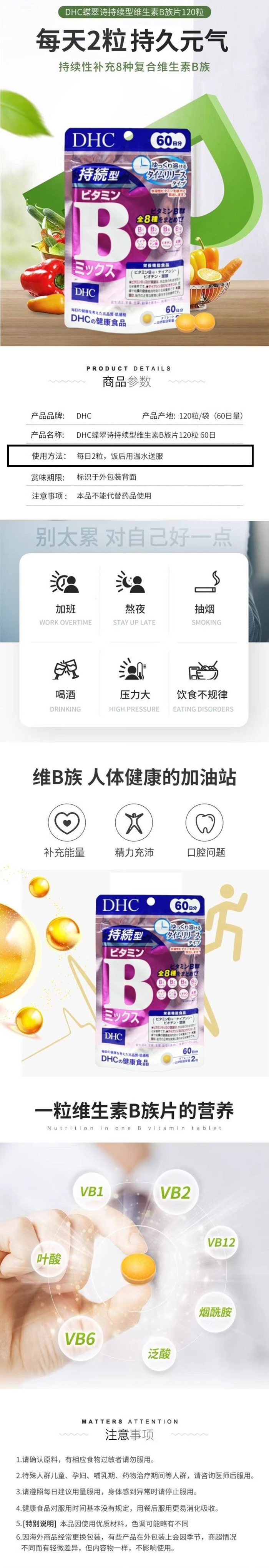【跨境】DHC/蝶翠诗持续型维生素B族片60日量120粒/包*3包装优惠组合装(片装)
