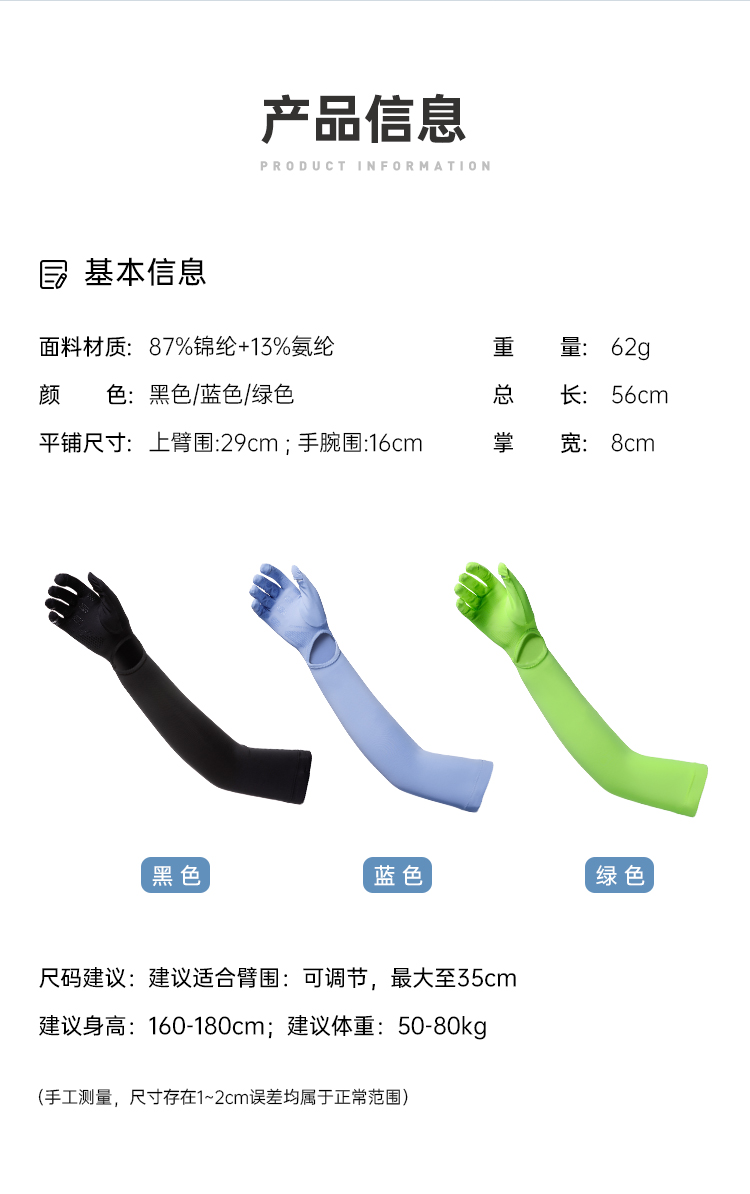 【冰丝防晒袖套】凉感透气防晒袖套 夏季防紫外线手臂冰袖