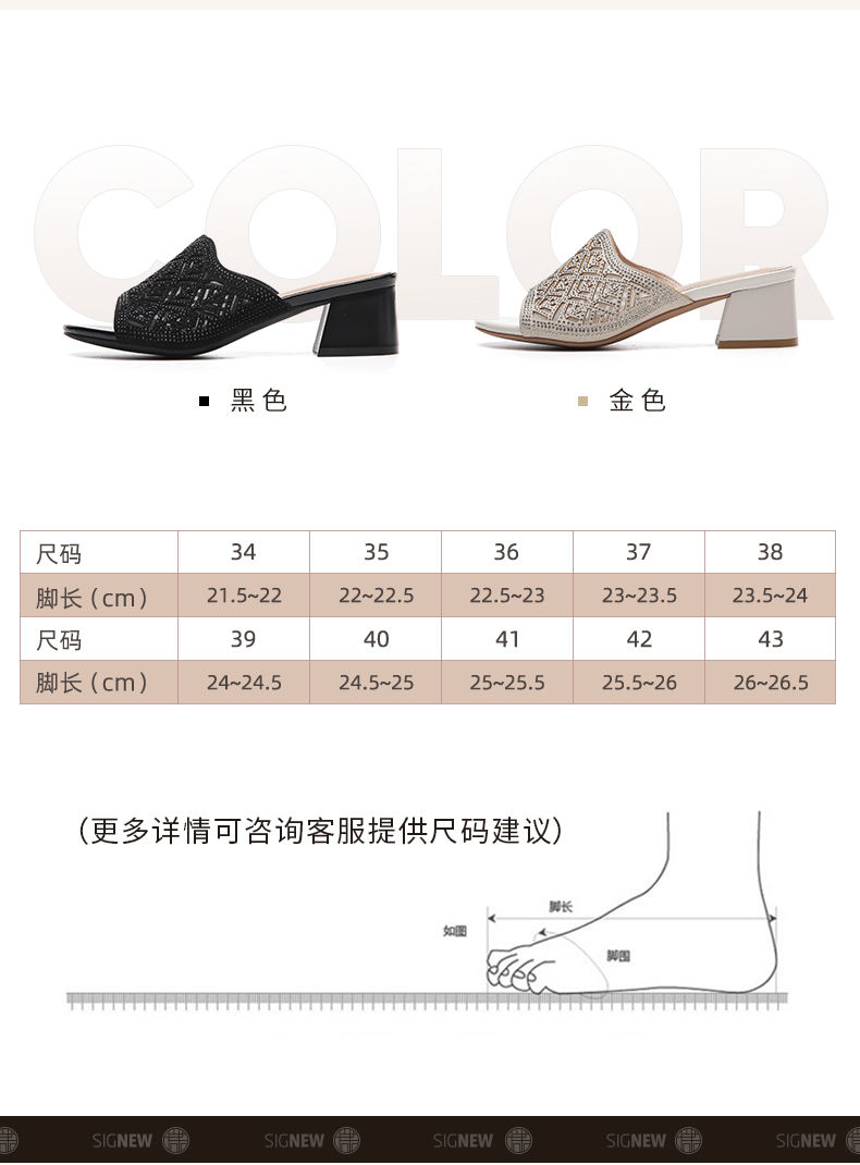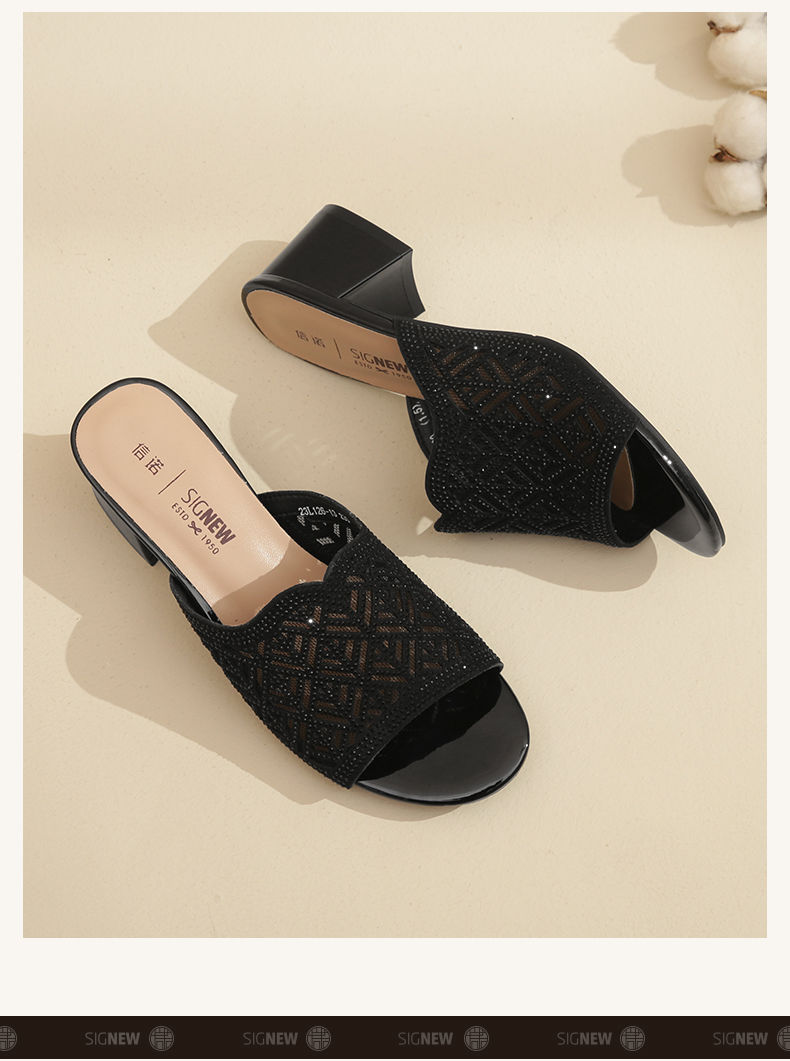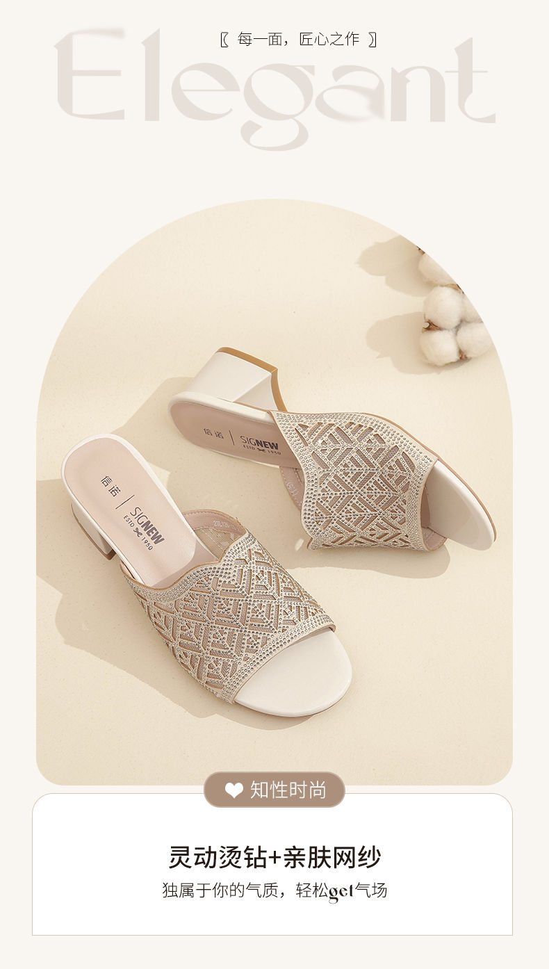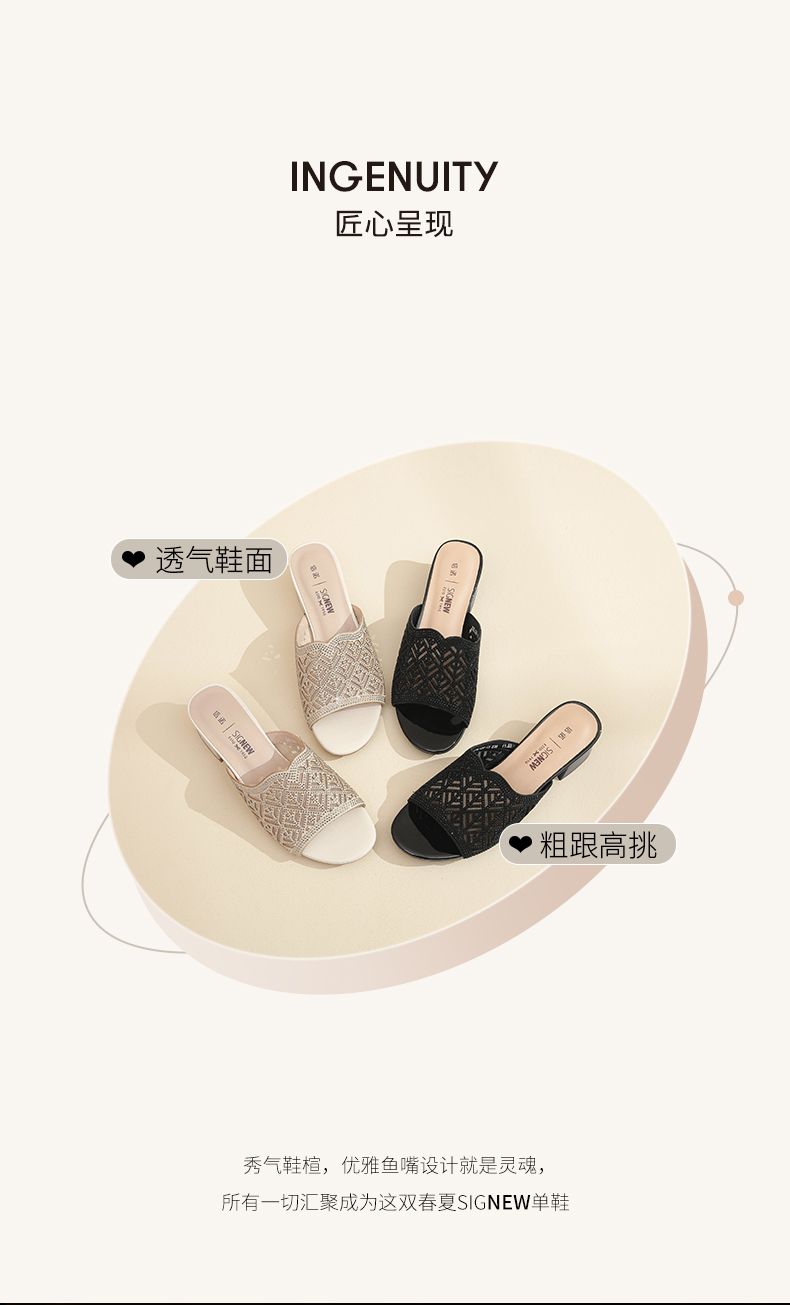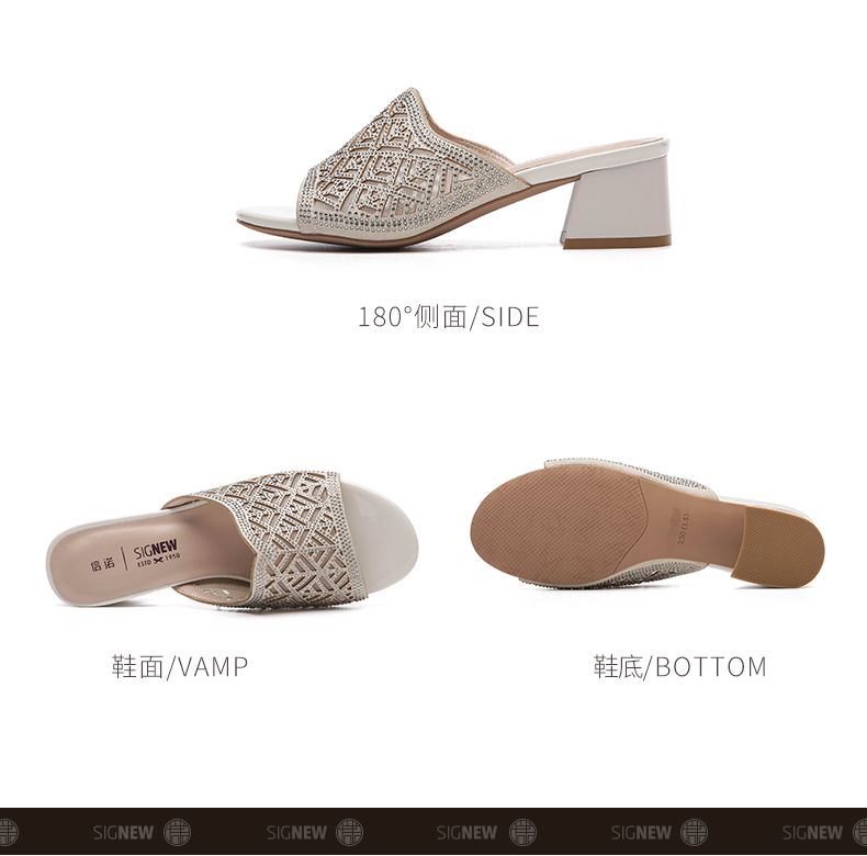 信诺凉拖女外穿夏季网纱夏新款时尚气质百搭粗跟中年一字拖凉拖鞋23L126-13