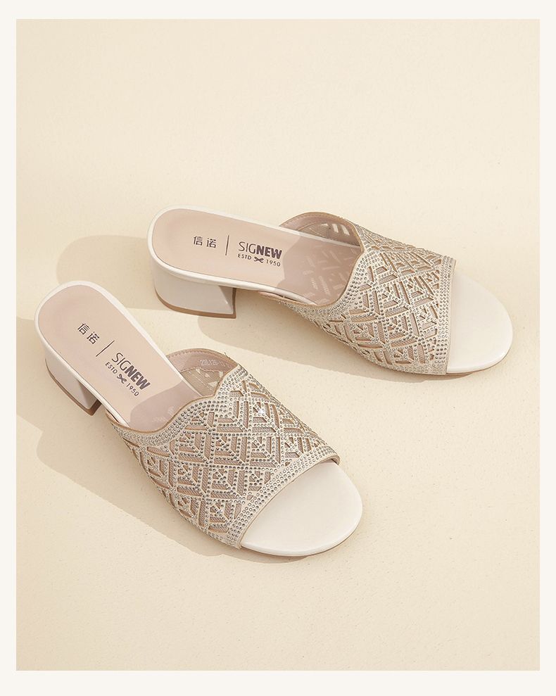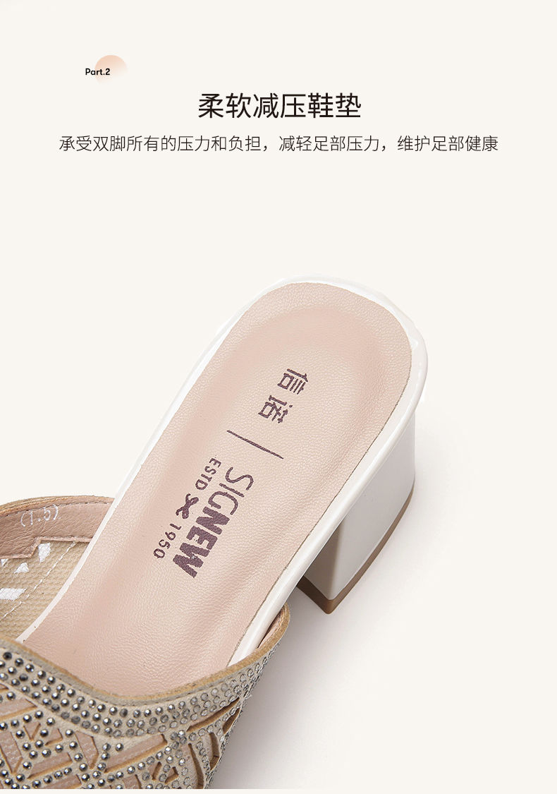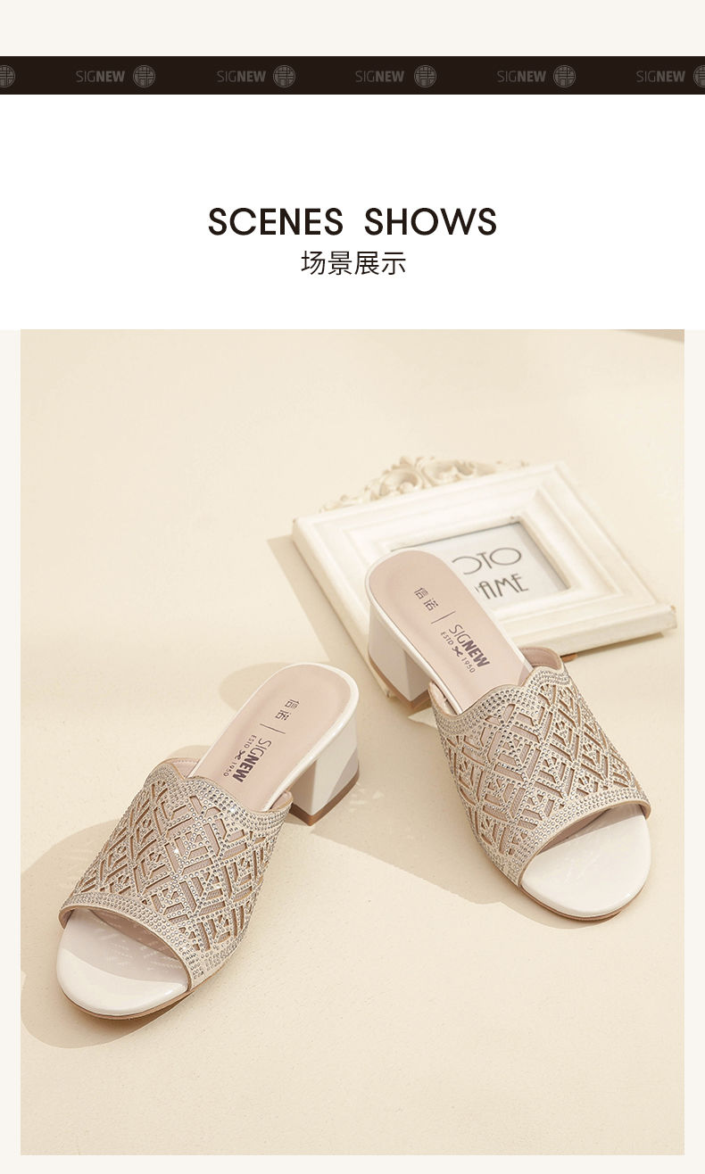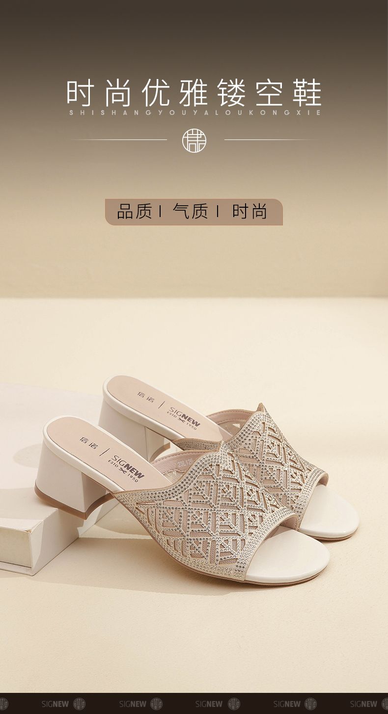 信诺凉拖女外穿夏季网纱夏新款时尚气质百搭粗跟中年一字拖凉拖鞋23L126-13