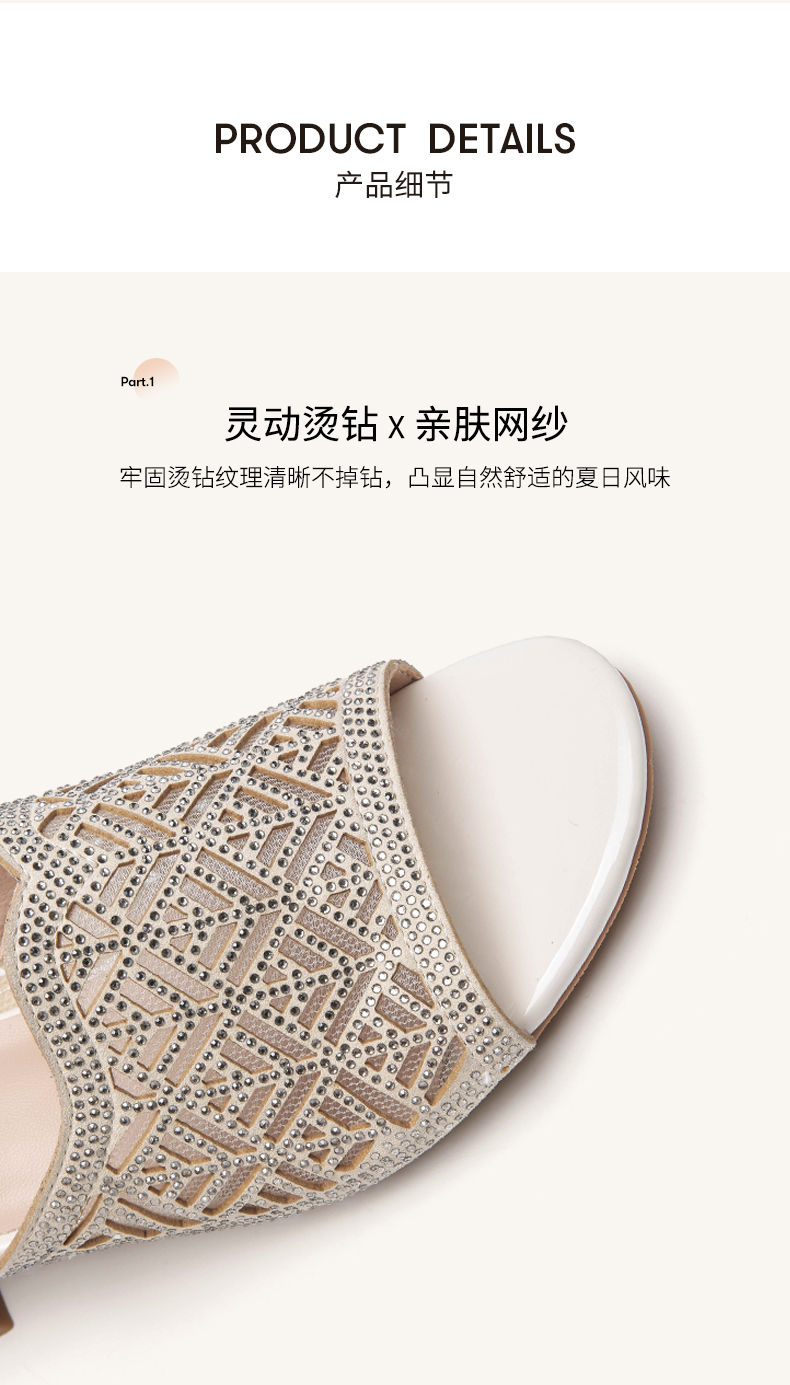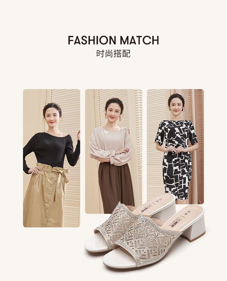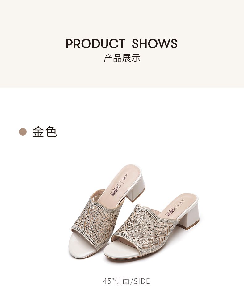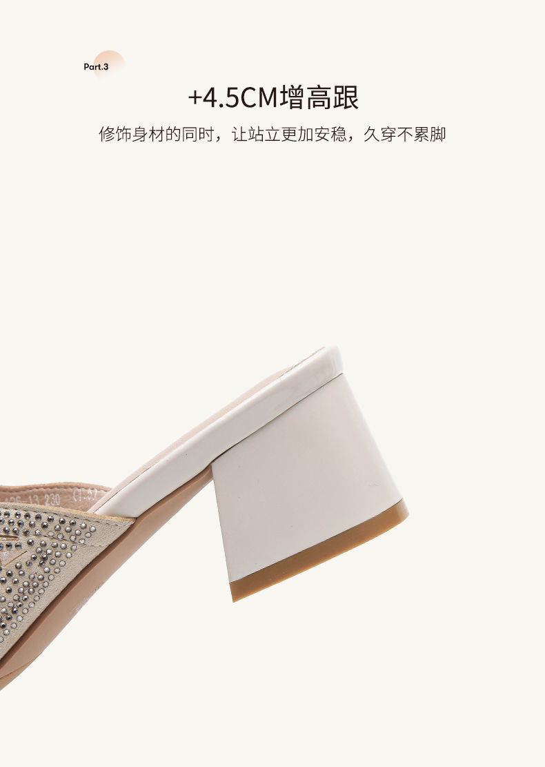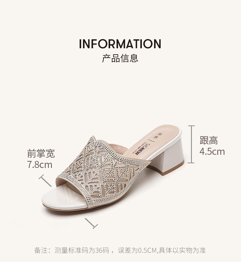 信诺凉拖女外穿夏季网纱夏新款时尚气质百搭粗跟中年一字拖凉拖鞋23L126-13