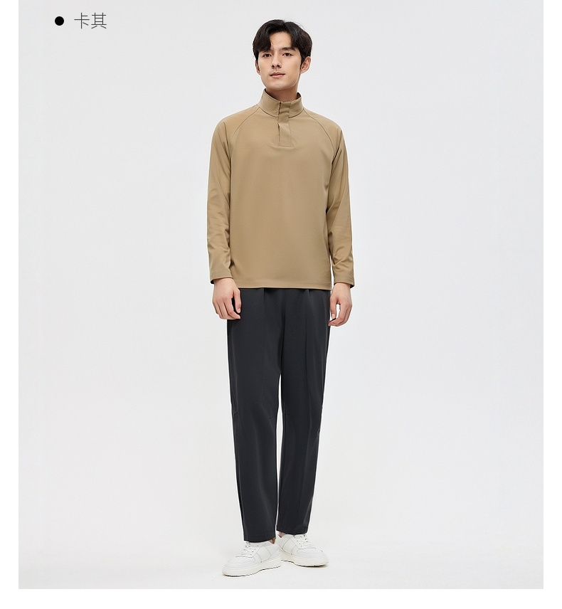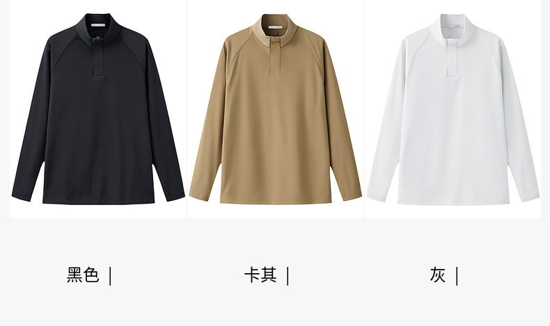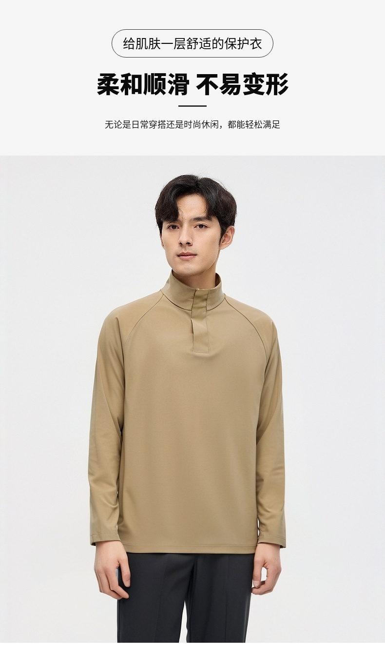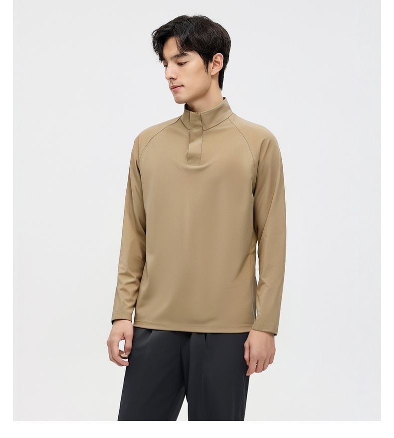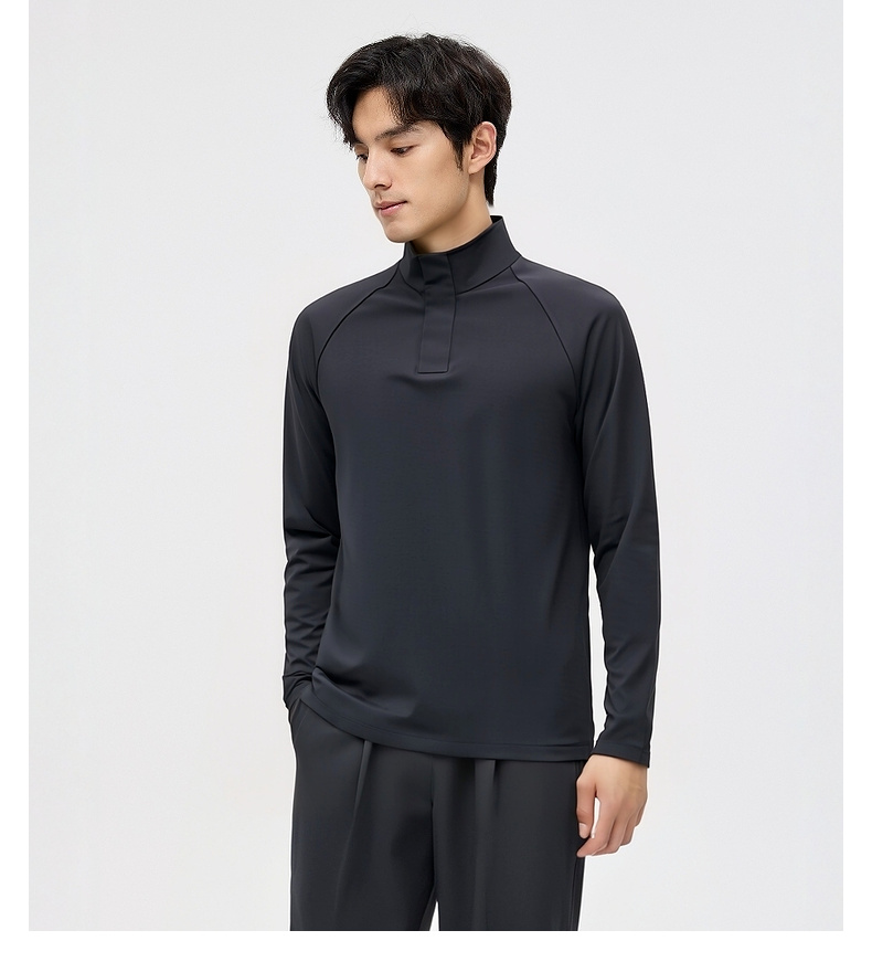 圣得西长袖T恤男2025秋季新款立领半开休闲通勤潮流运动男士上衣
