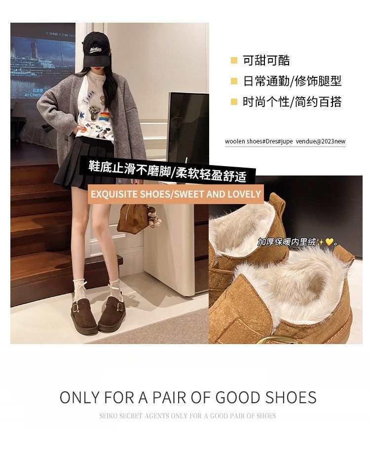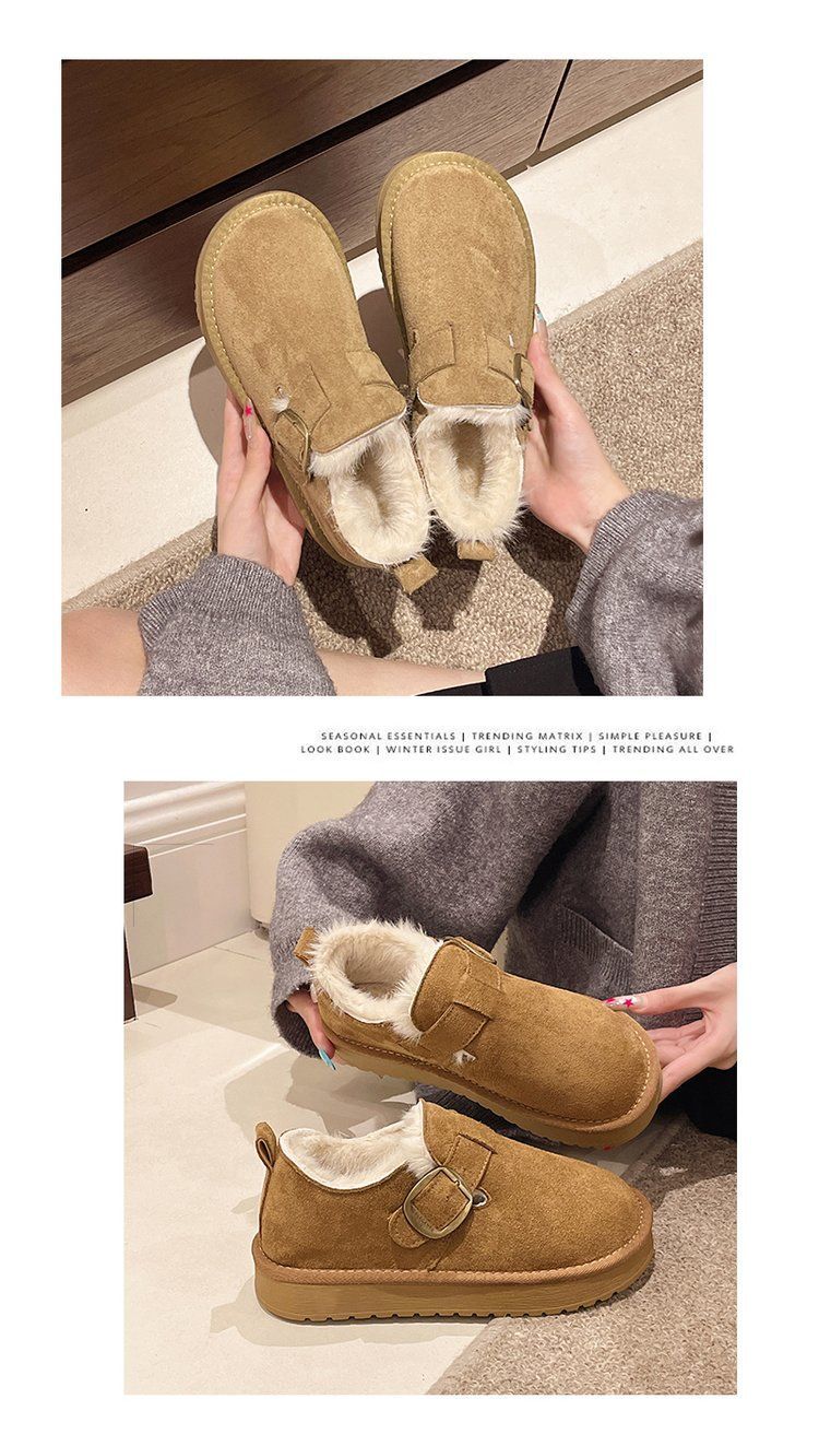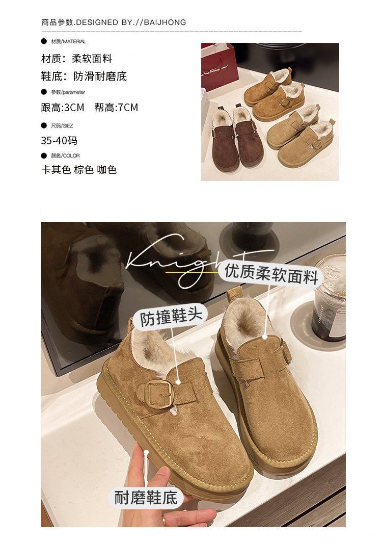 【YW】无忧购厚底加绒勃肯鞋新款复古保暖休闲一脚蹬时尚棉鞋雪地靴A-3(截单后3-5天发货)