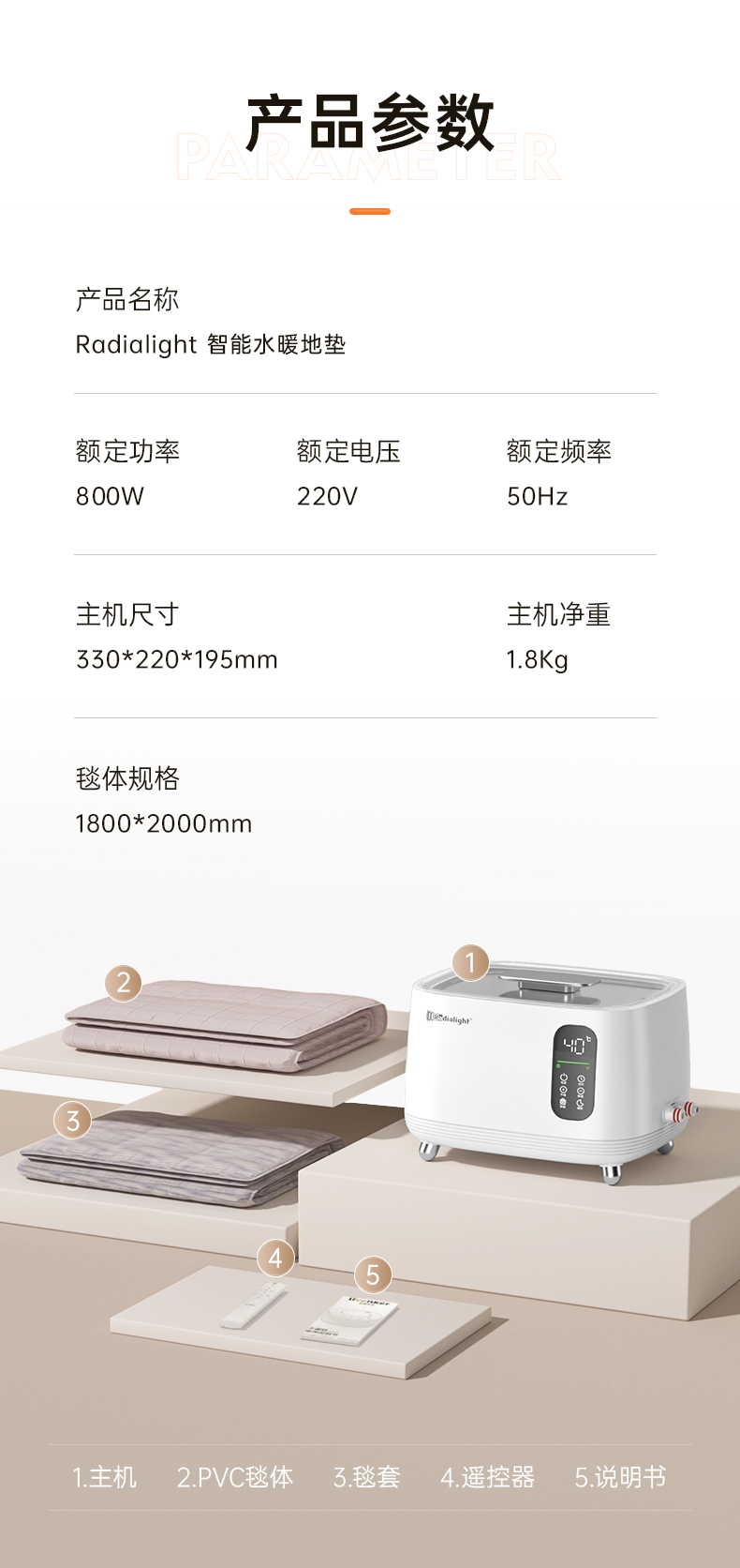 Radialight家用水暖地毯静音母婴级水暖地垫除螨智能恒温水暖电热毯水循环