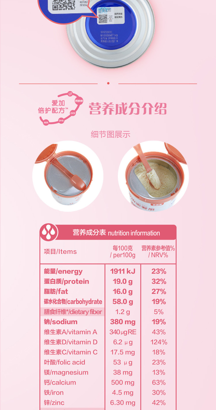 贝因美爱加4段奶粉800g一箱6桶