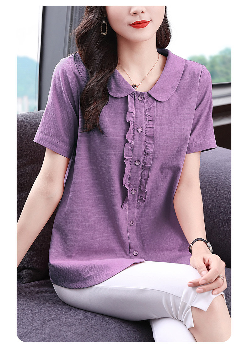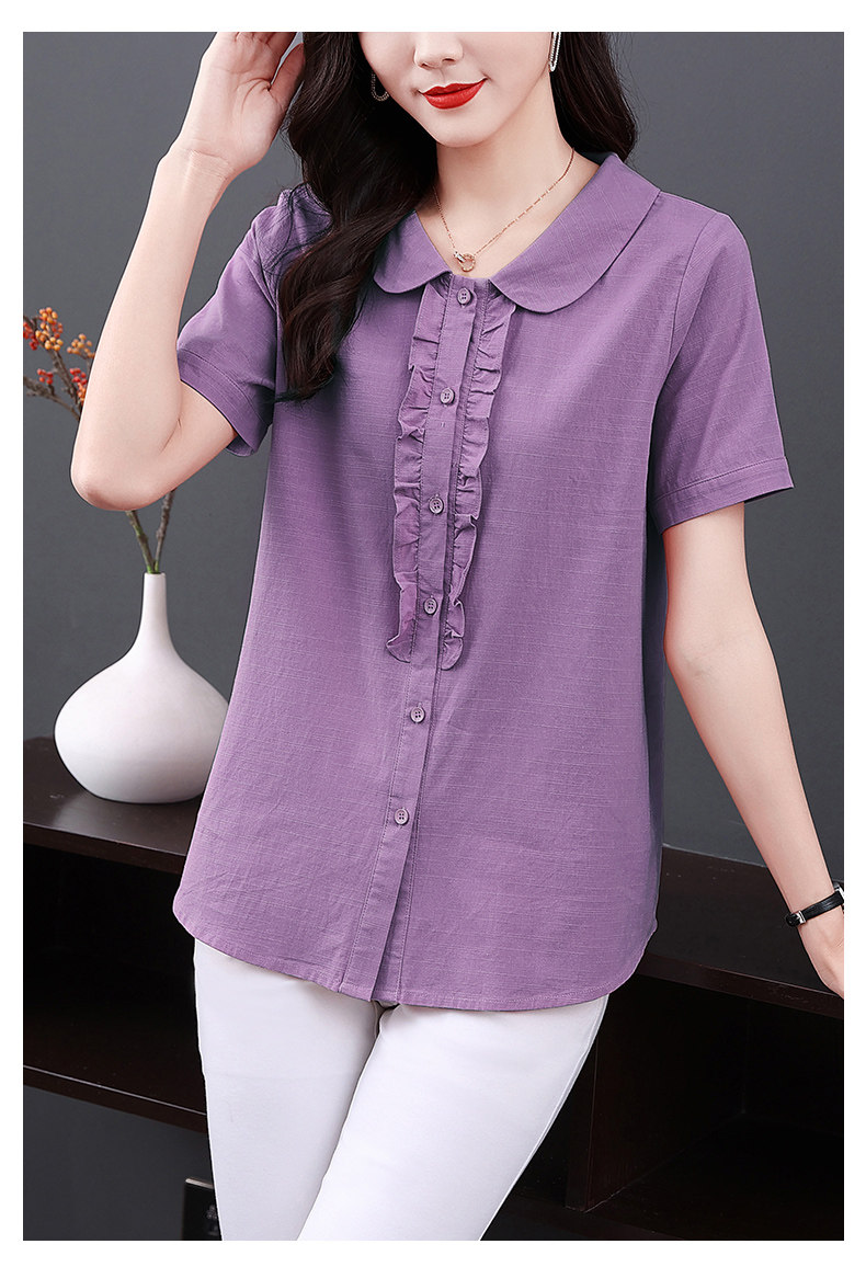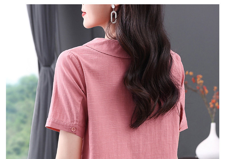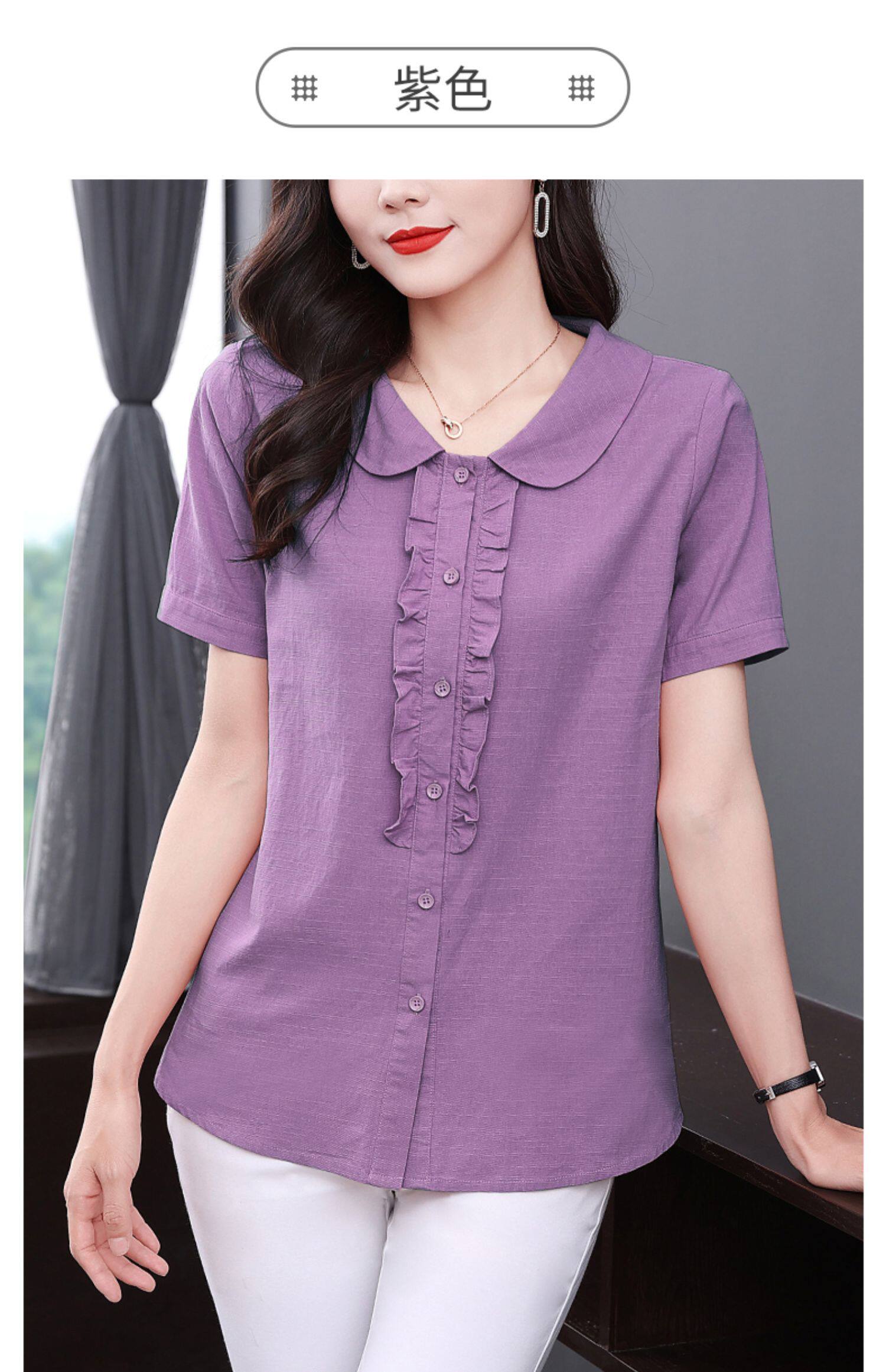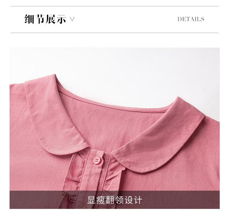 女士短袖衬衫棉麻大码遮肚子2026新款休闲衬衣夏季宽松娃娃领上衣