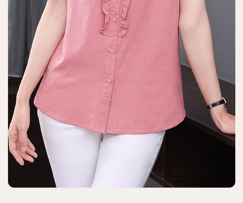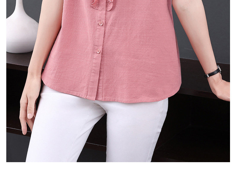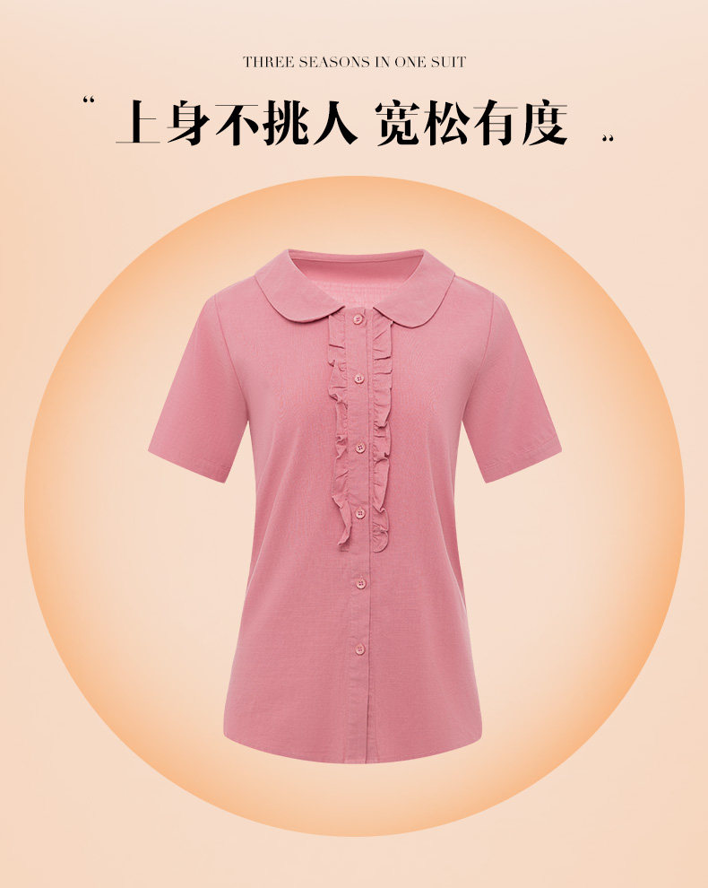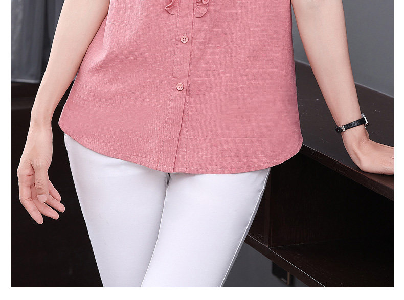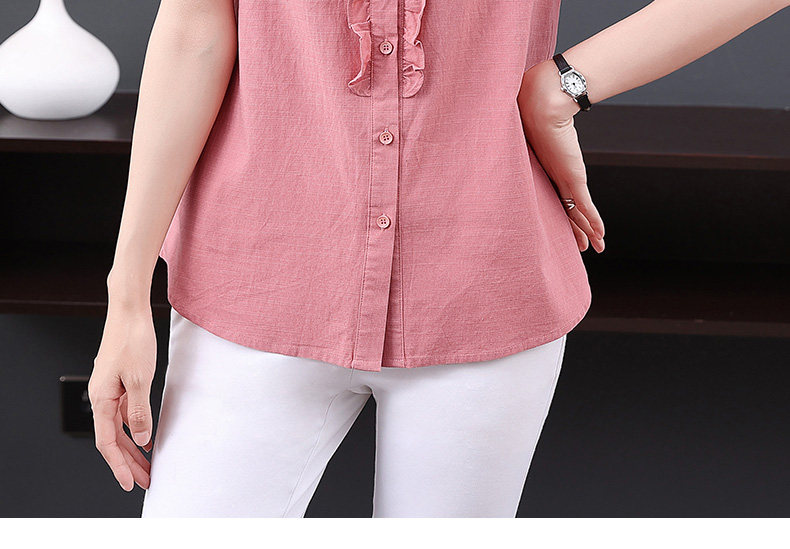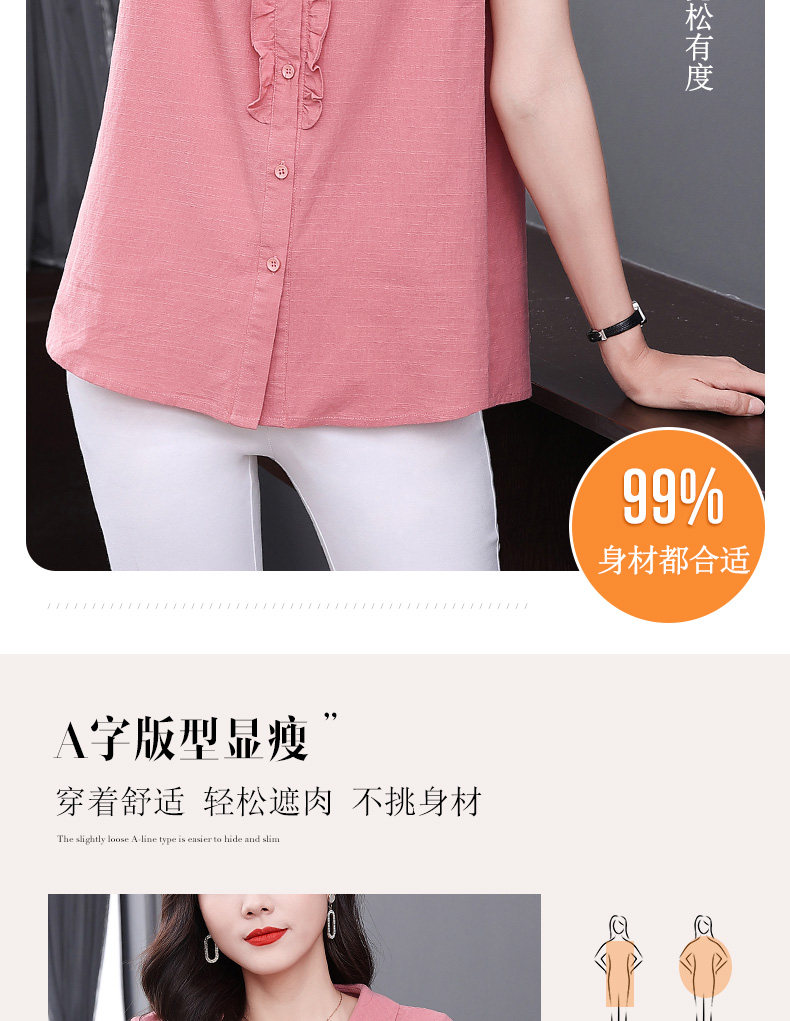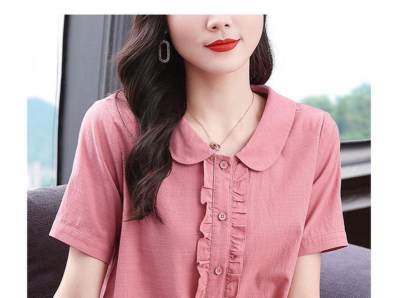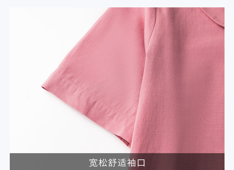女士短袖衬衫棉麻大码遮肚子2026新款休闲衬衣夏季宽松娃娃领上衣