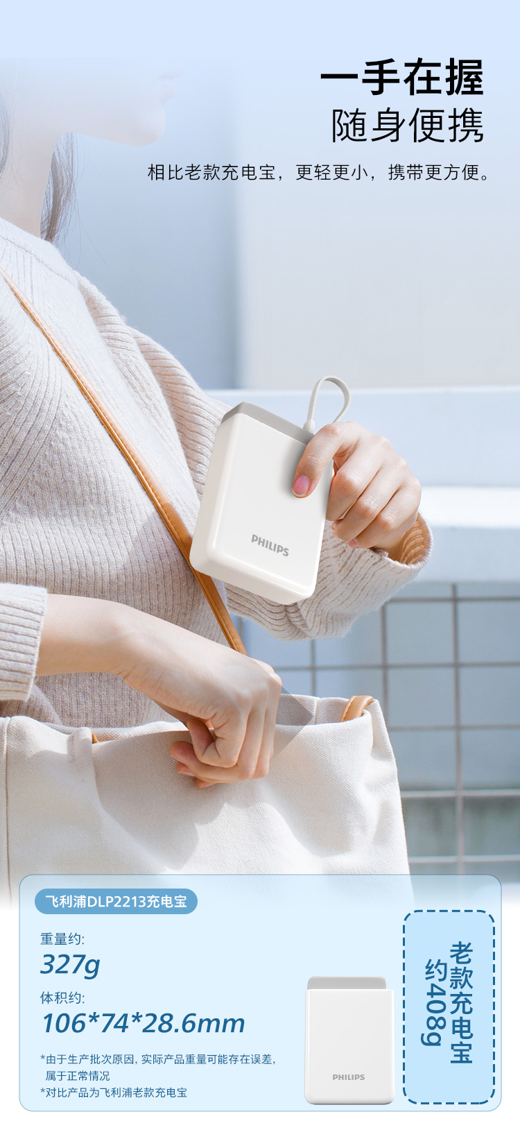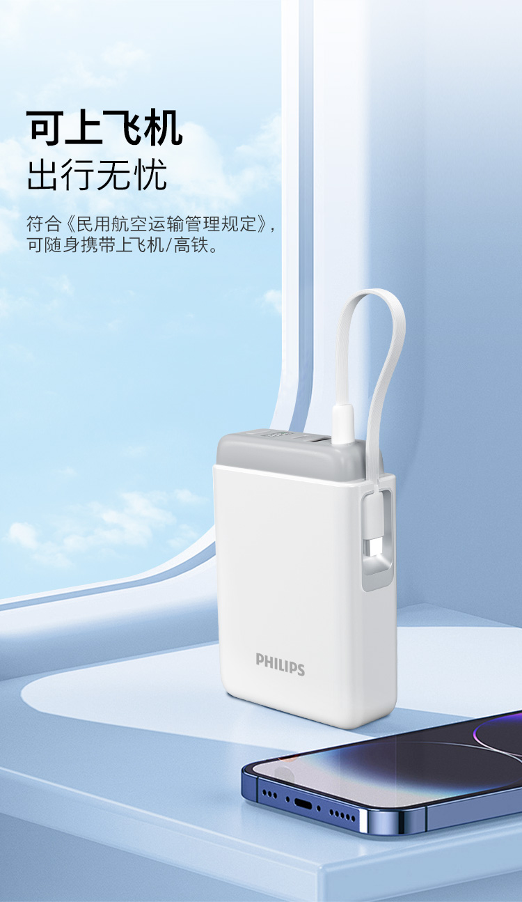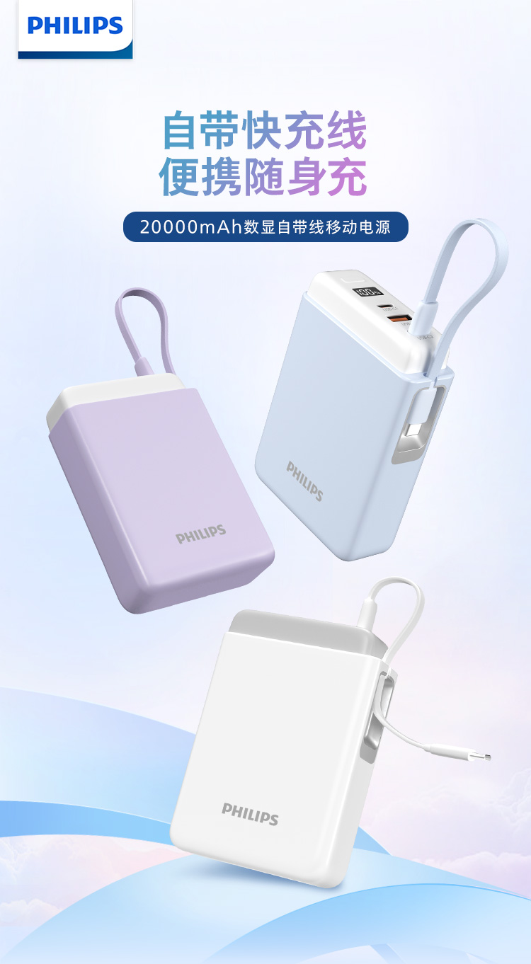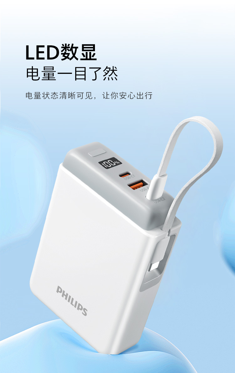 飞利浦PHILIPS 移动电源数显屏2万毫安Type-C快充线