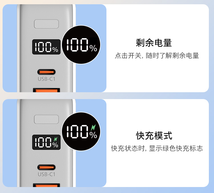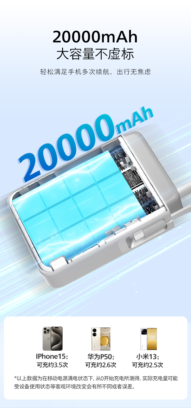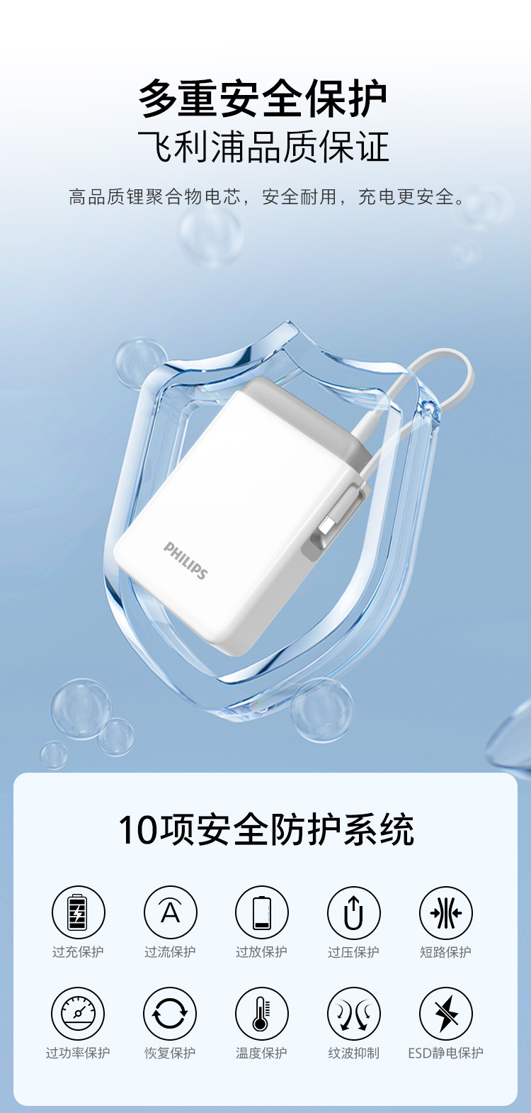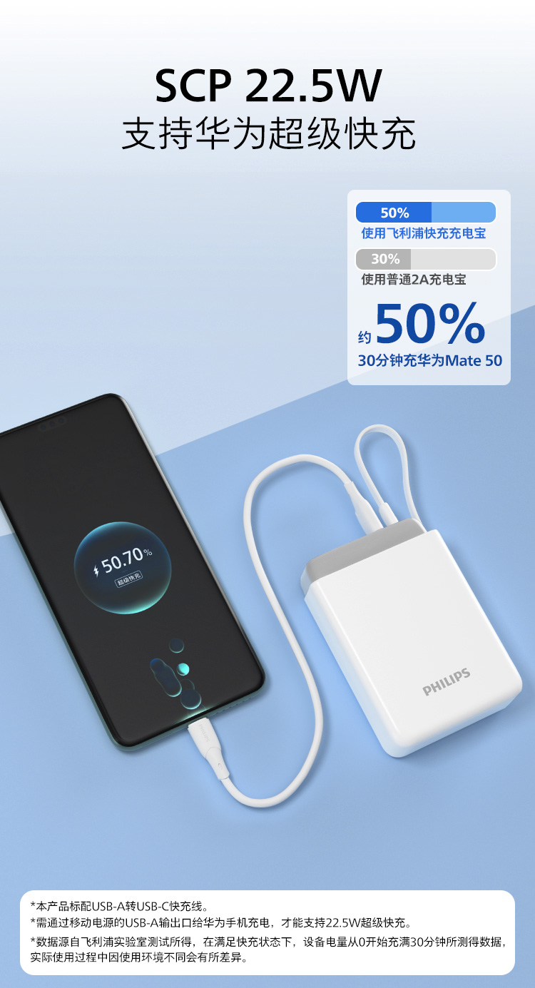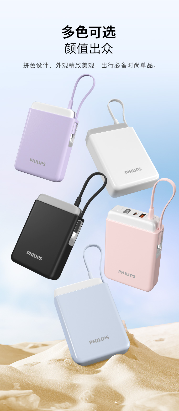 飞利浦PHILIPS 移动电源数显屏2万毫安Type-C快充线