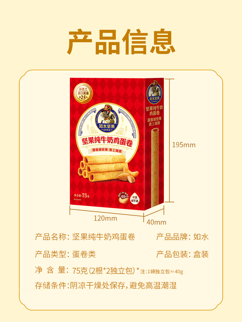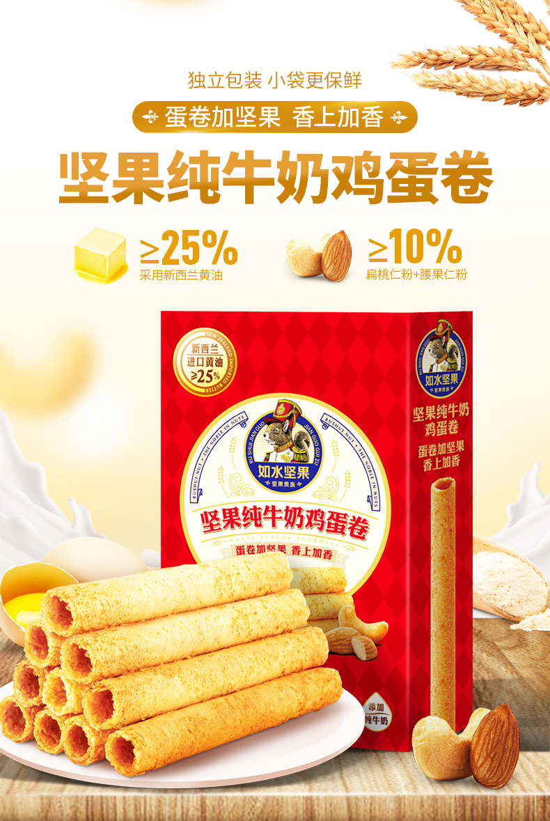 【秒杀25.9.3到期介意慎拍】如水坚果牛奶鸡蛋卷75g/袋*2