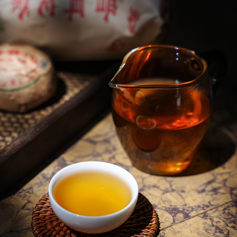 撬饼开汤品鉴:茶友先醒茶再喝,入口非常滑,柔滑的茶汤层层递进,蜜香陈香馥郁,整个茶给人的感觉非常甜润,但又暗劲十足,体感温热明显。性价比有多高大家喝完就明白!