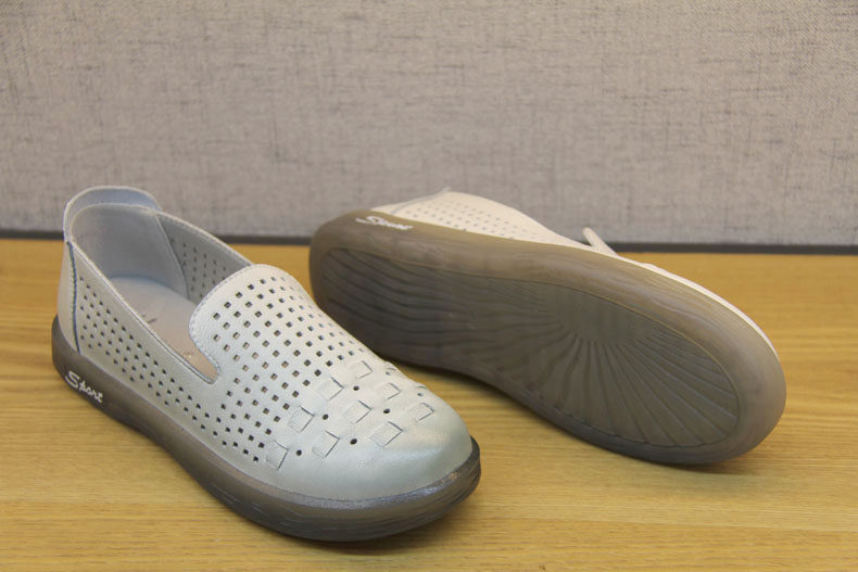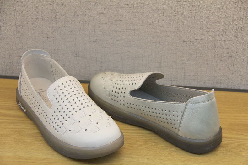 豪行夏款21230277休闲浅口真皮女鞋防滑软底软面宽松一脚蹬冲孔鞋
