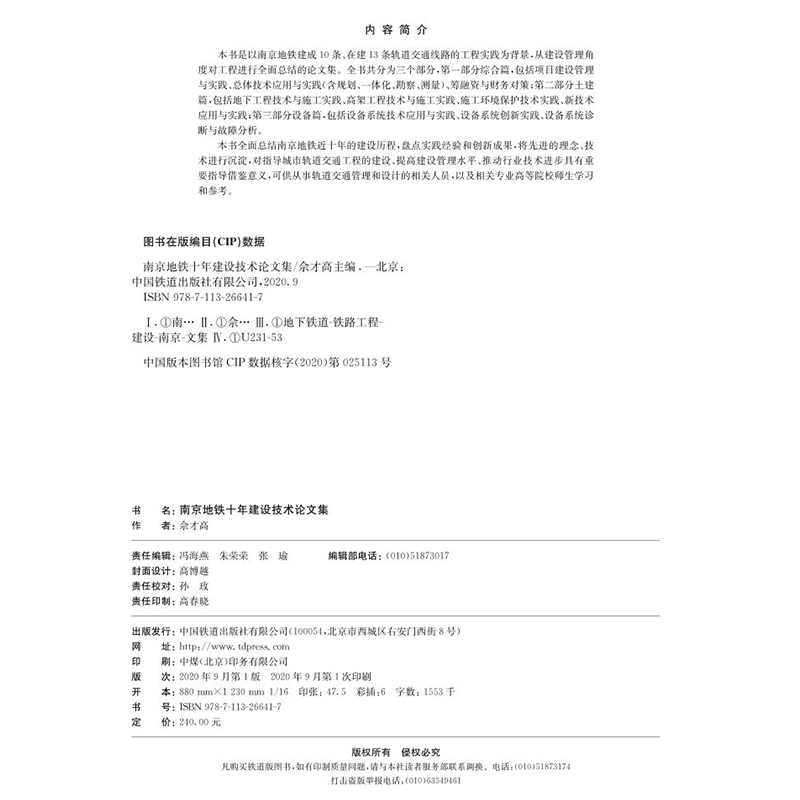 978-7-113-26641-7南京地铁十年建设技术论文集