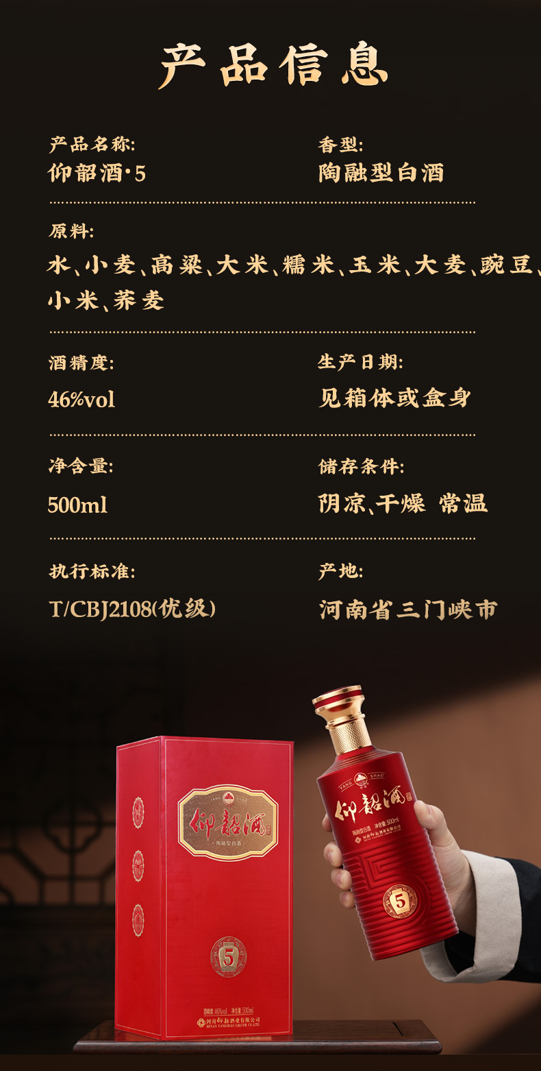 仰韶酒5 纯粮酿造 陶融型白酒 酒厂直营 46度5000ml 整箱6瓶