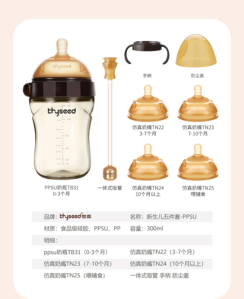 世喜 硅胶奶瓶五套装