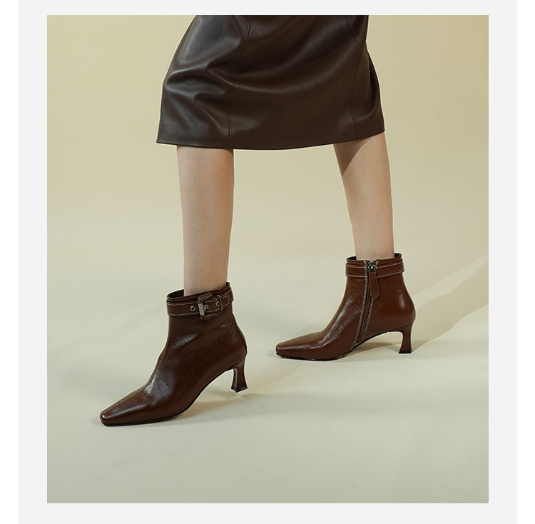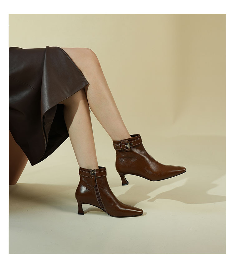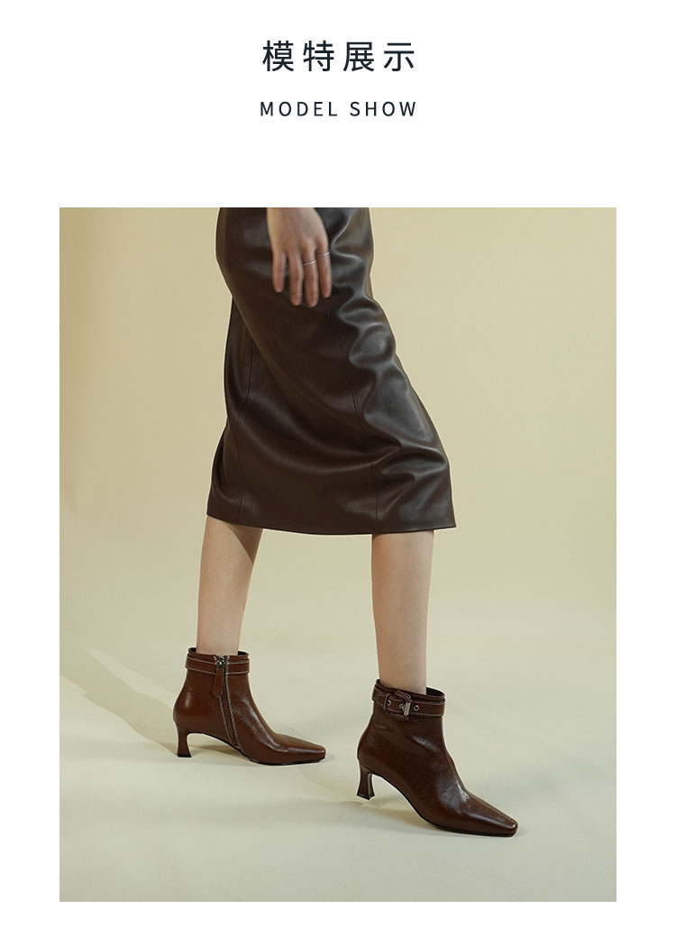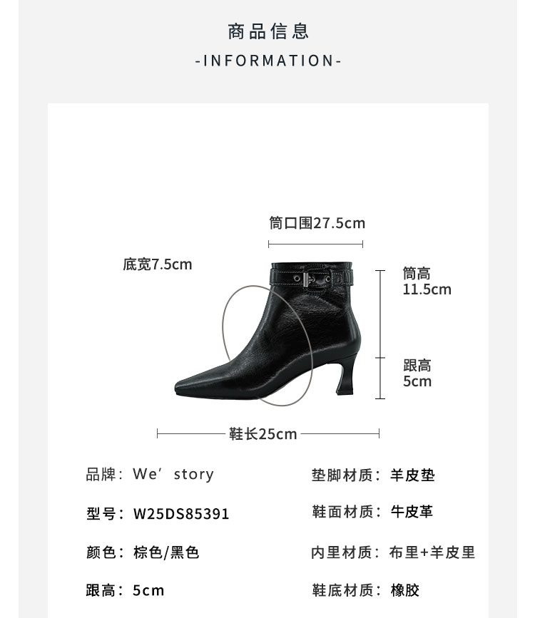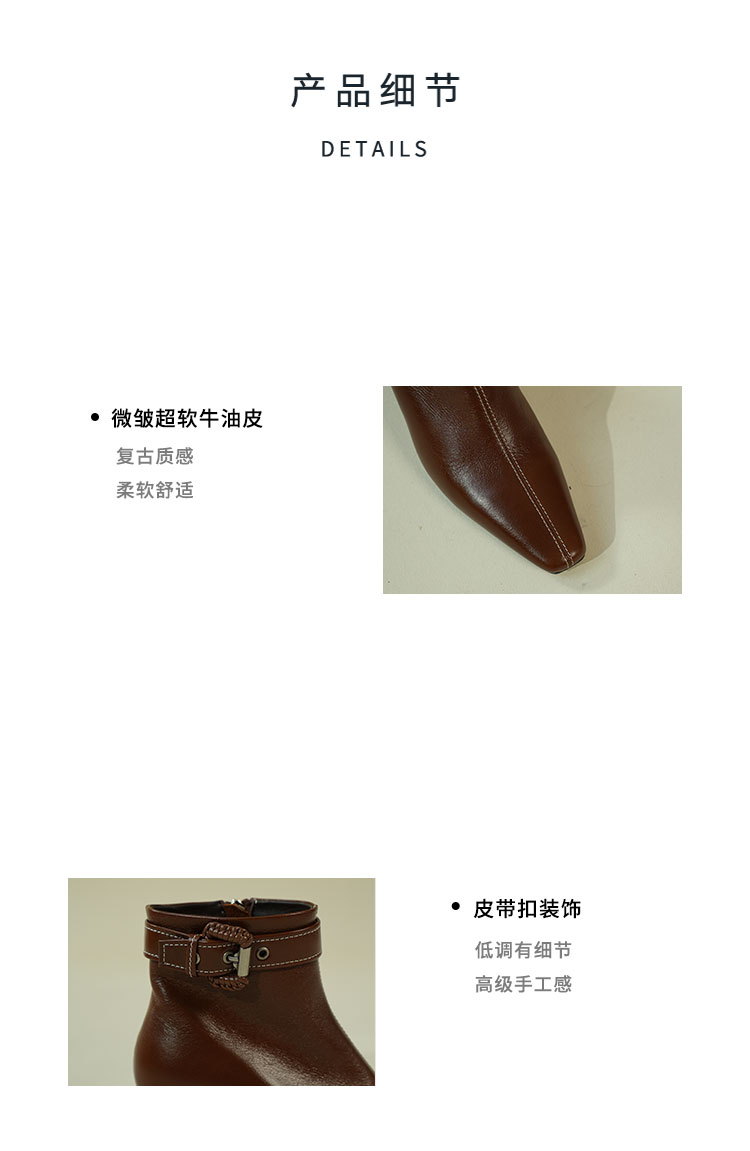 Westory2025年冬季小方头中跟微邹牛油皮复古老钱风短靴W25DS85391