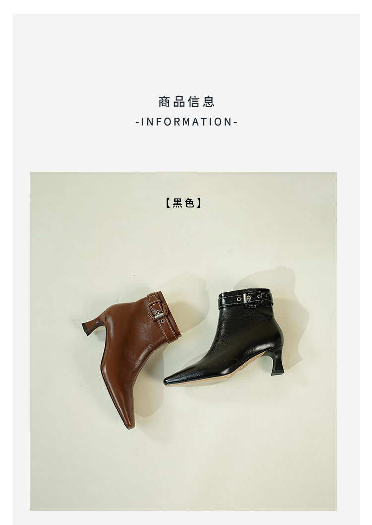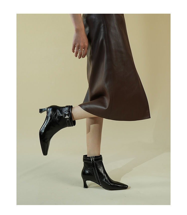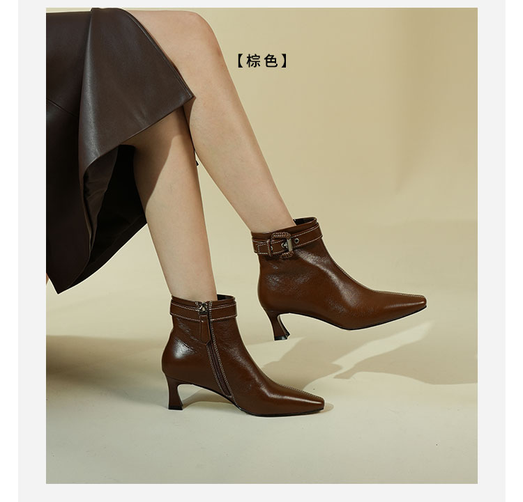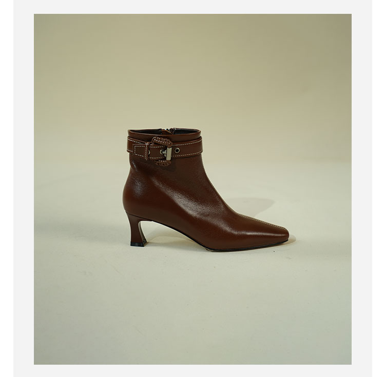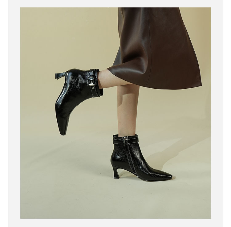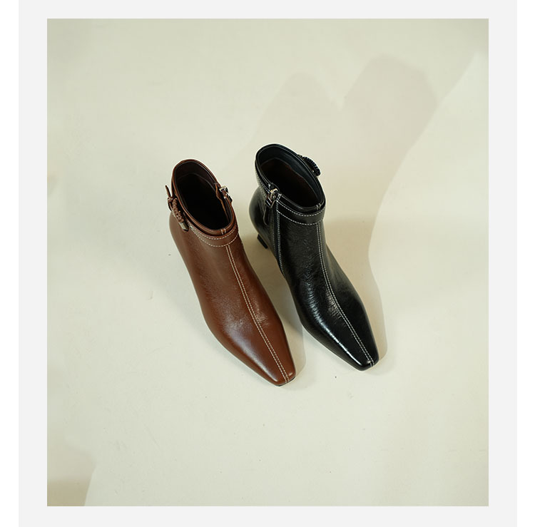 Westory2025年冬季小方头中跟微邹牛油皮复古老钱风短靴W25DS85391