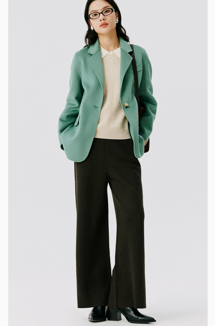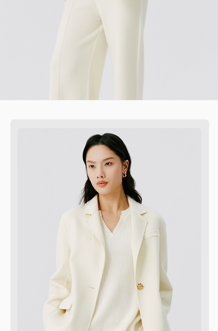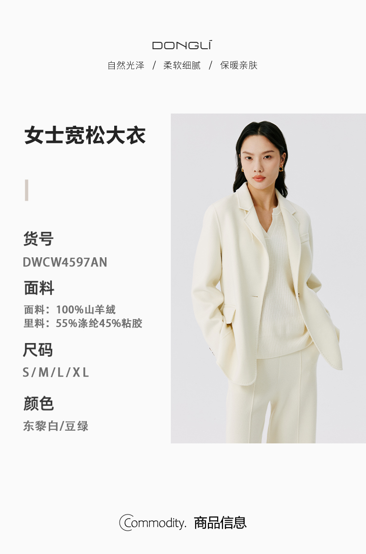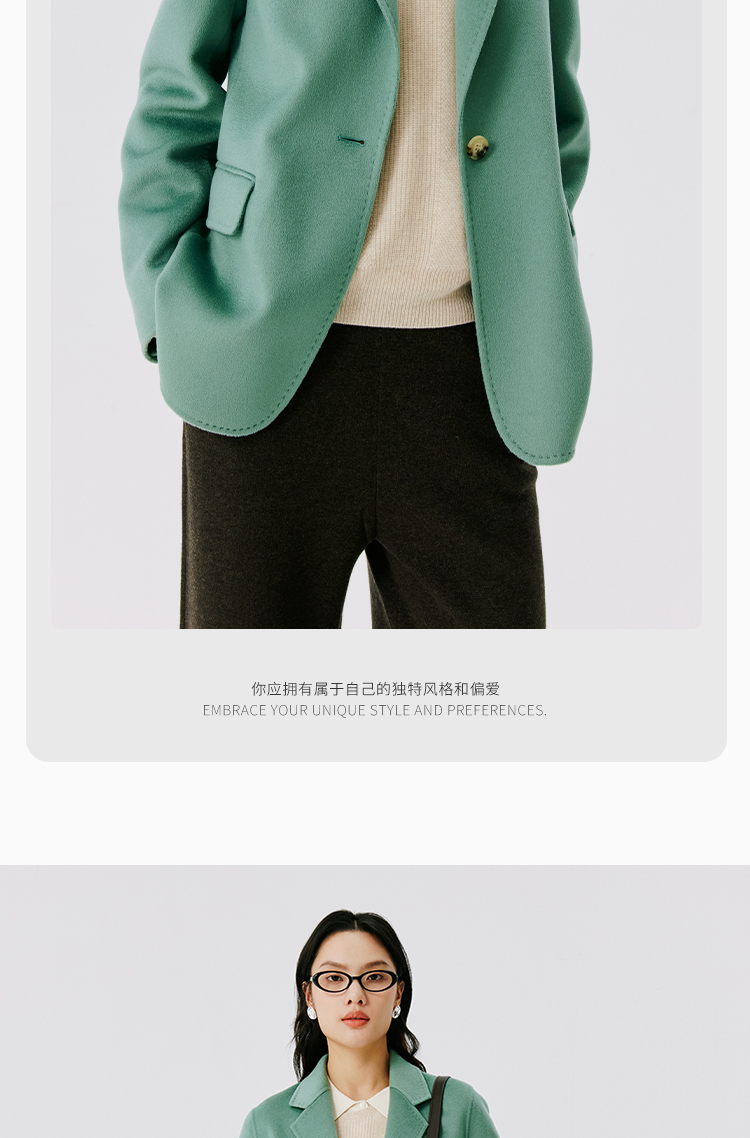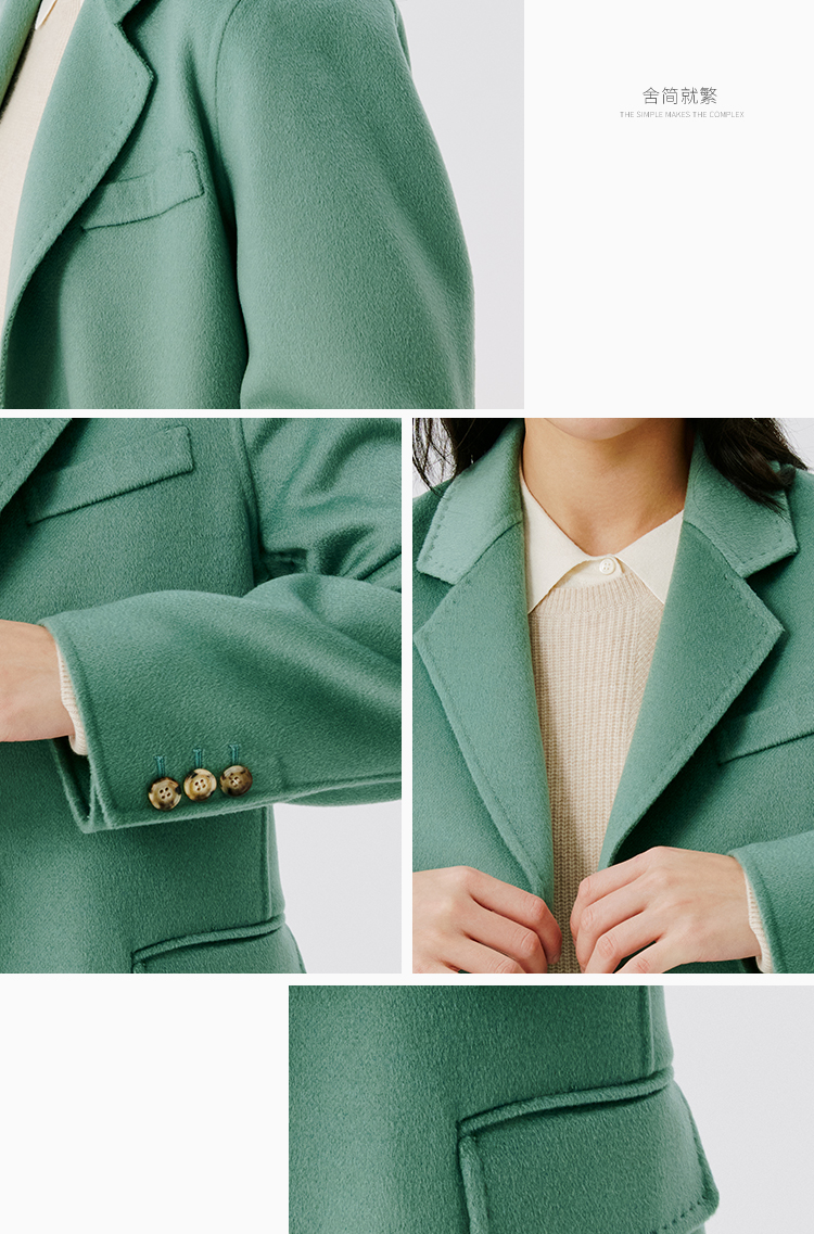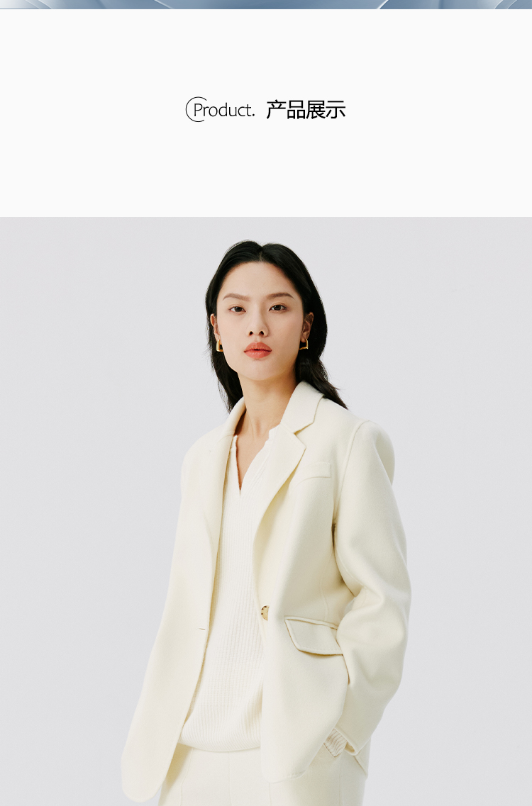 东黎 • 山羊绒女士秋冬西服领一粒扣双面羊绒呢大衣 4597