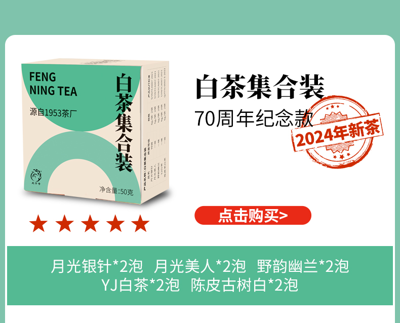 凤宁号 | 2024年 白茶集合装5g*10泡(50g)