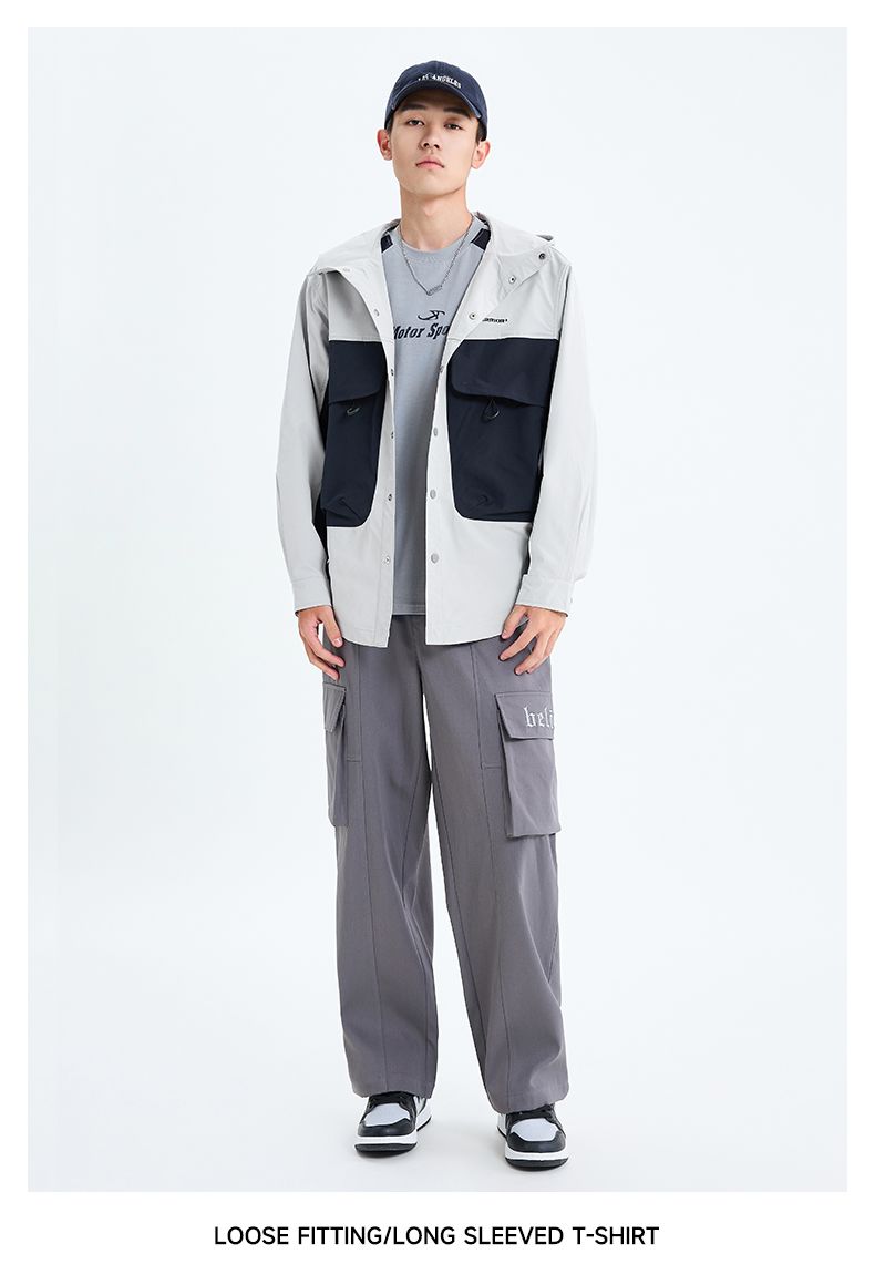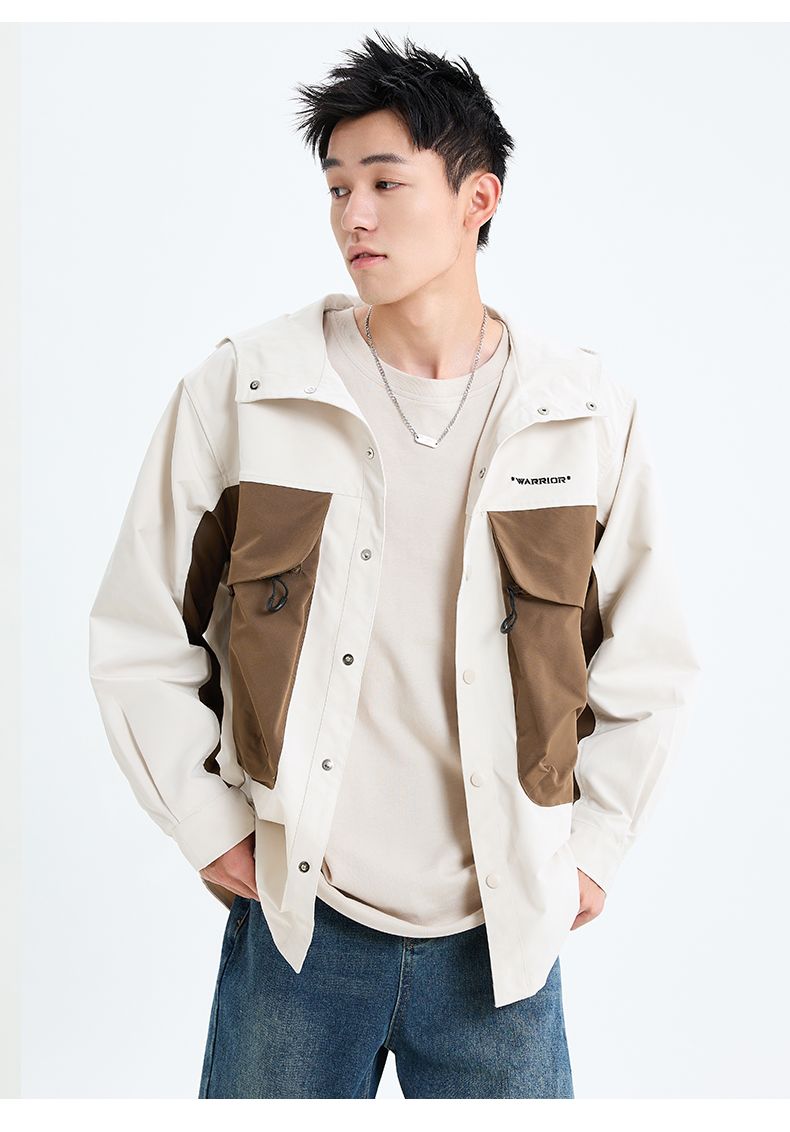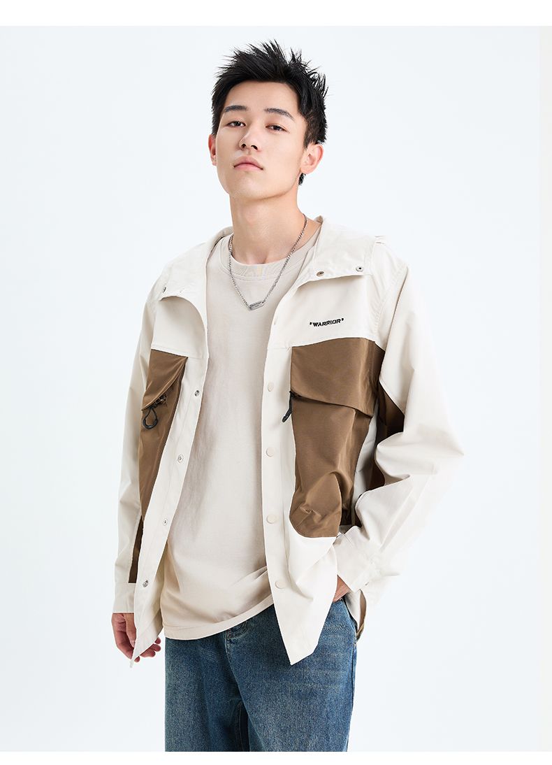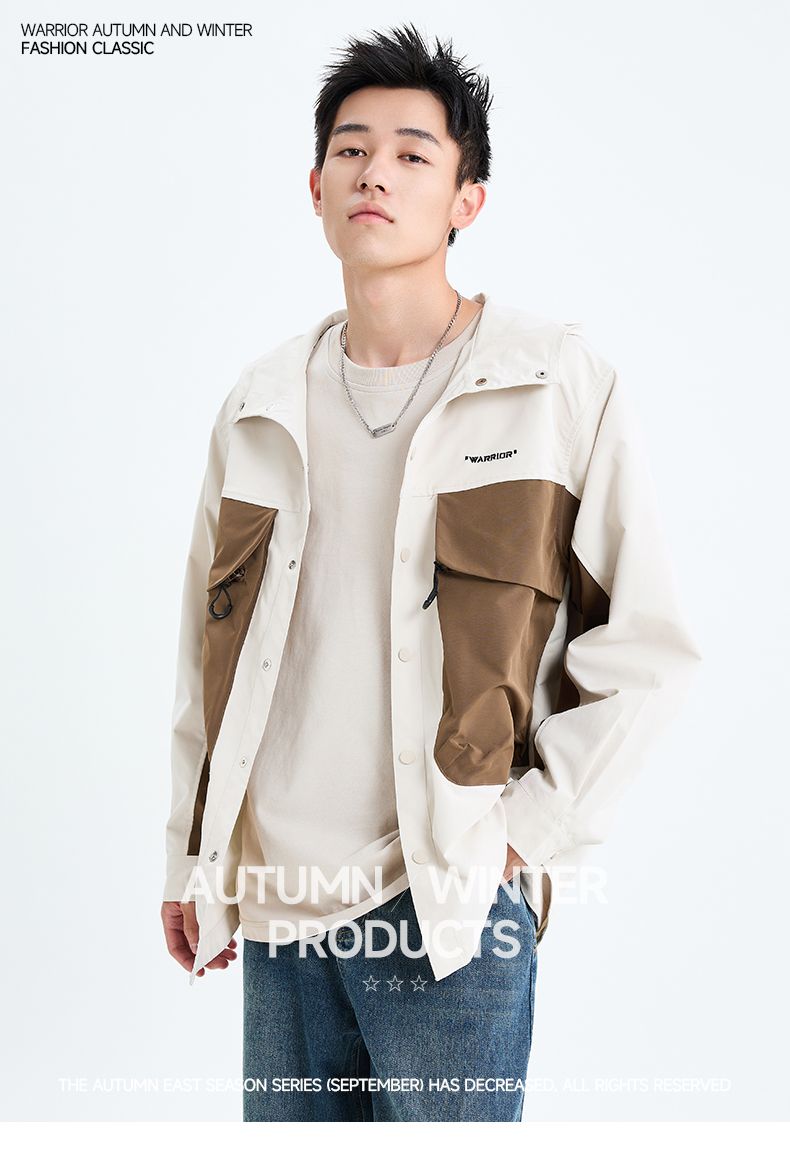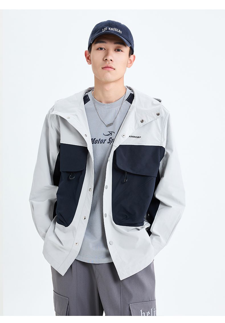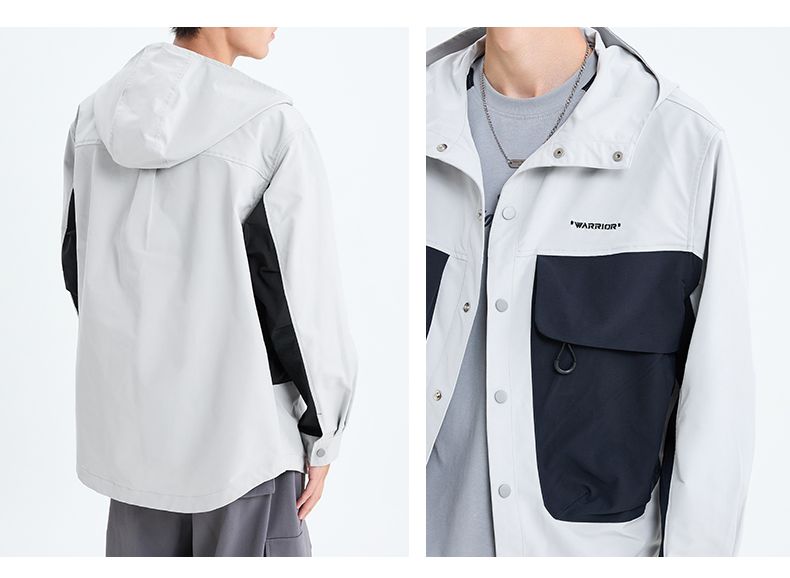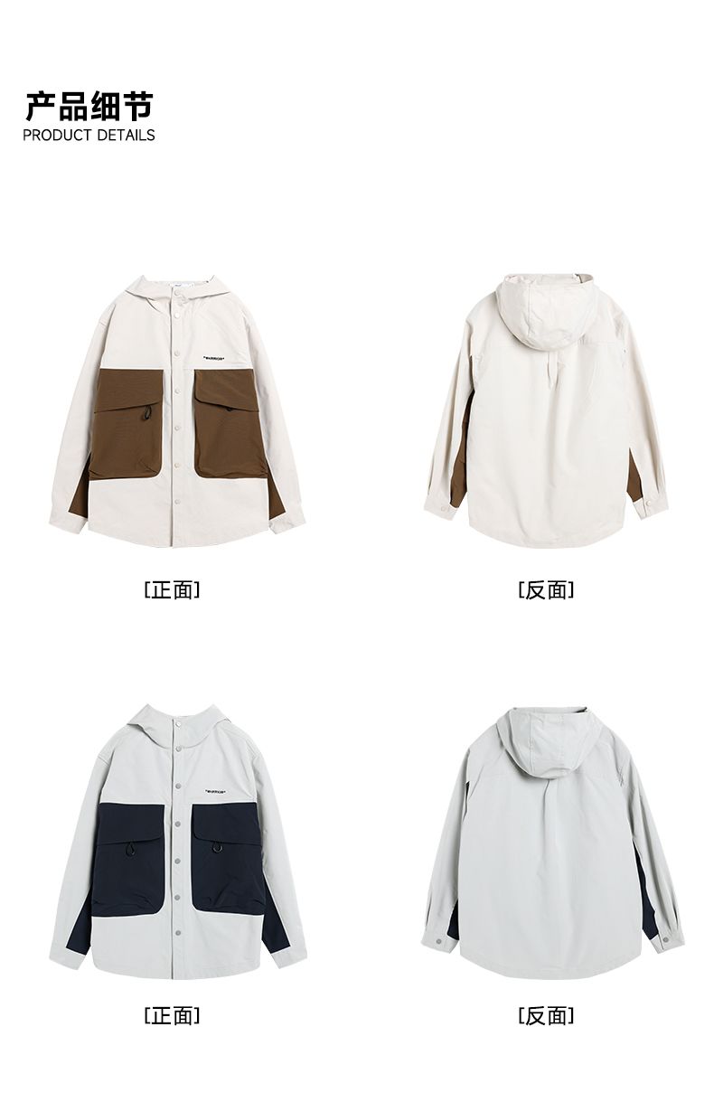 回力工装冲锋夹克男士2025春季新款连帽撞色宽松休闲运动潮牌外套