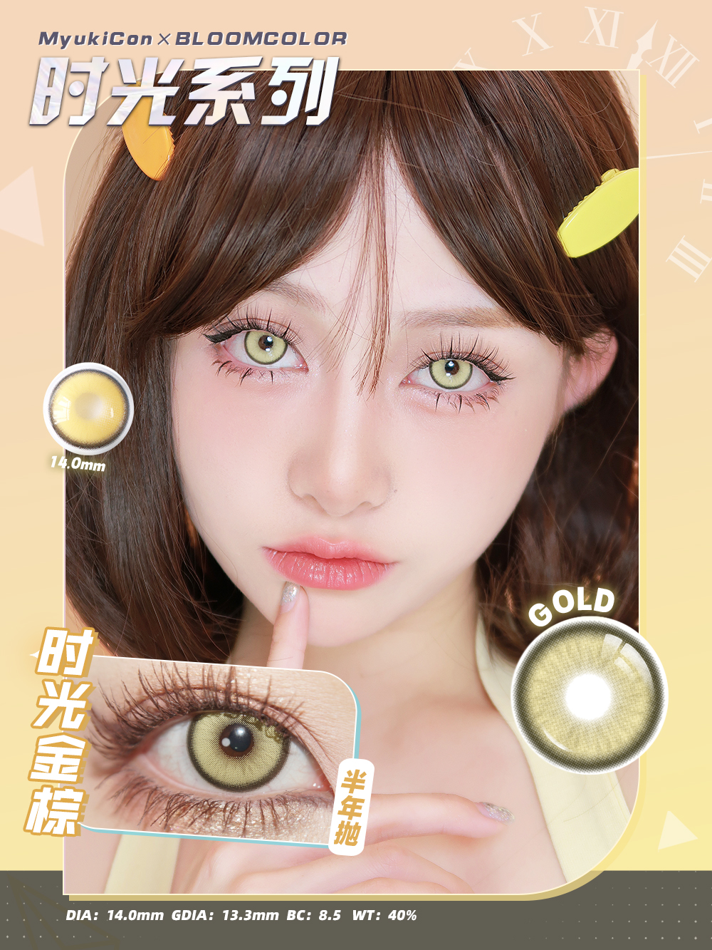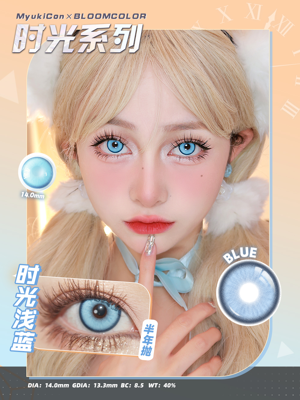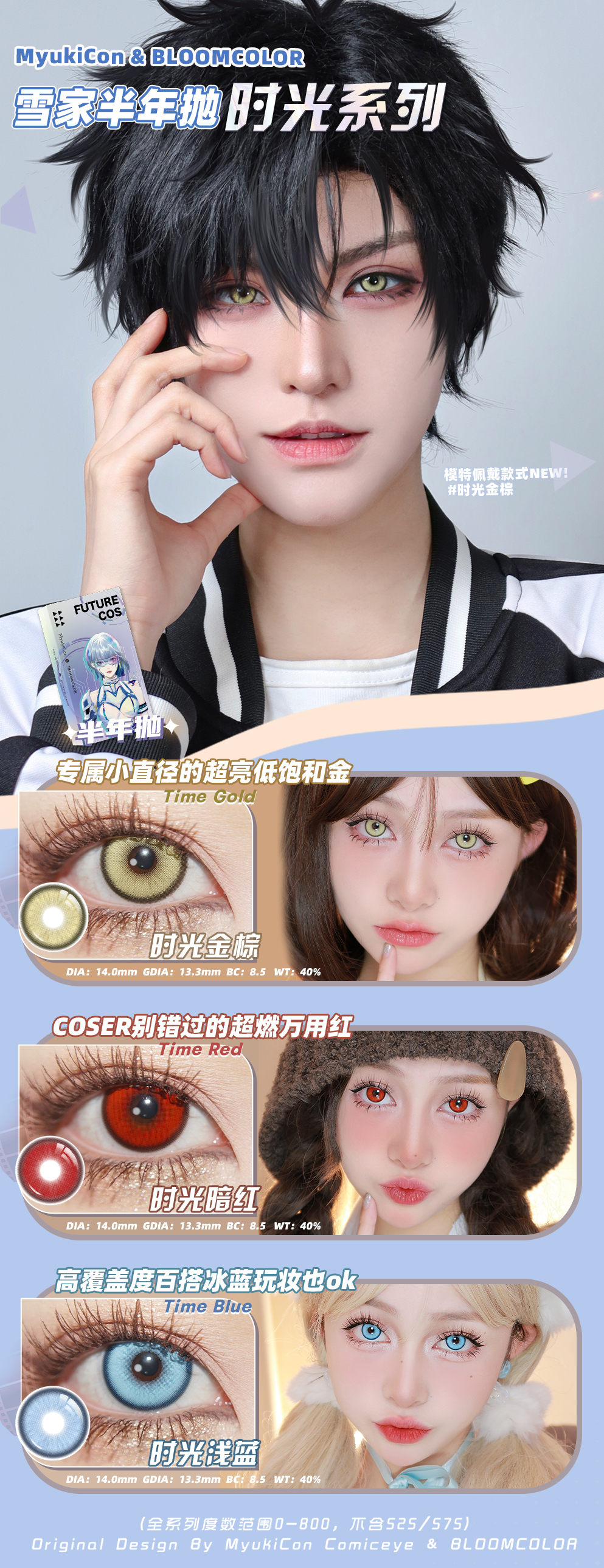 MyukiCon×BLOOMCOLOR 雪物语半年抛 时光系列 时光浅蓝/时光金棕/时光暗红 COS 排球少年/时光代理人 孤爪研磨/程小时/陆光 恋与深空秦彻/塞巴斯蒂安 显色小直径美瞳