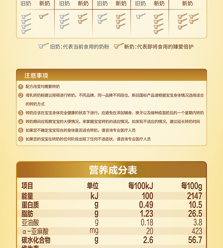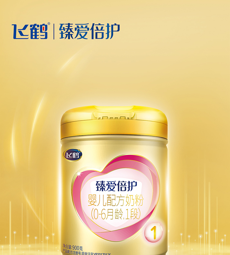飞鹤臻爱倍护1段婴儿配方牛奶粉0-6个月900g*6罐装