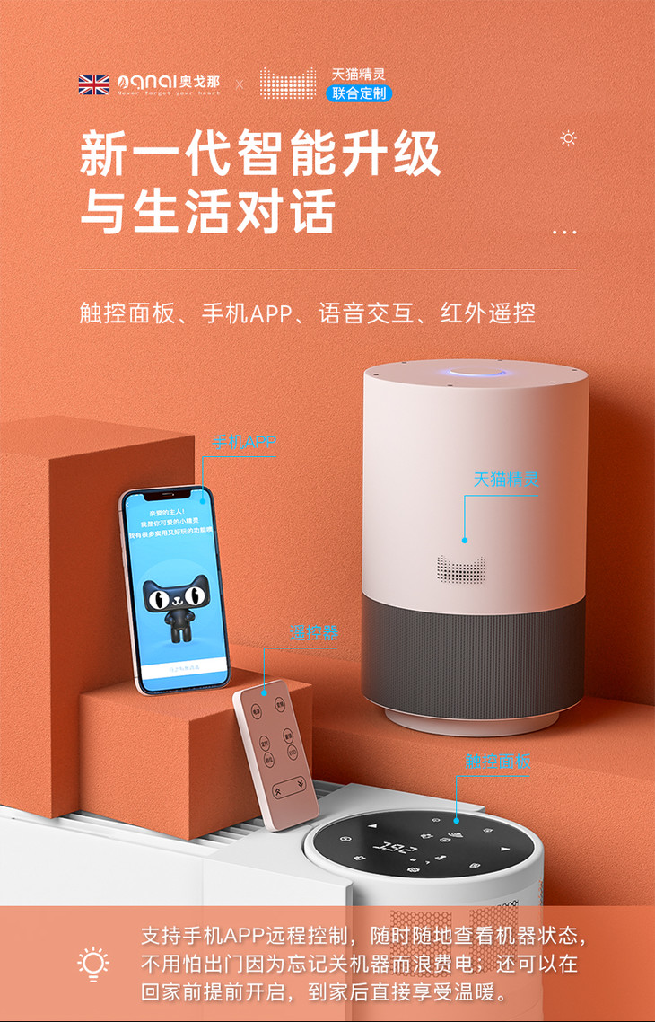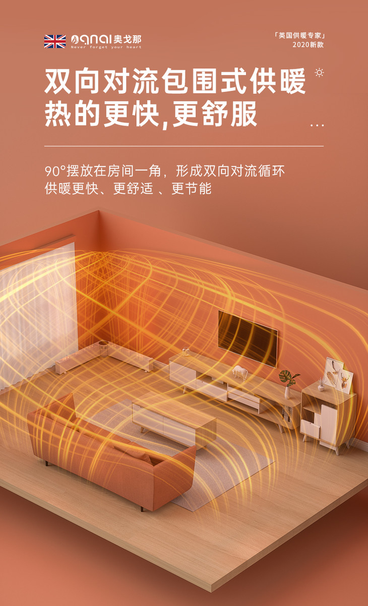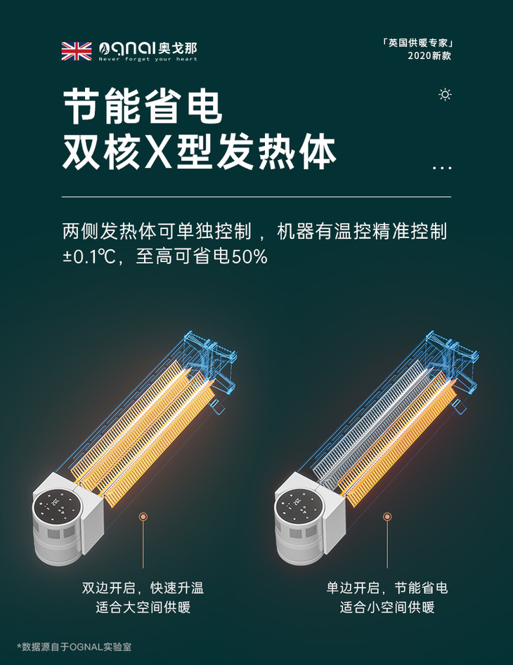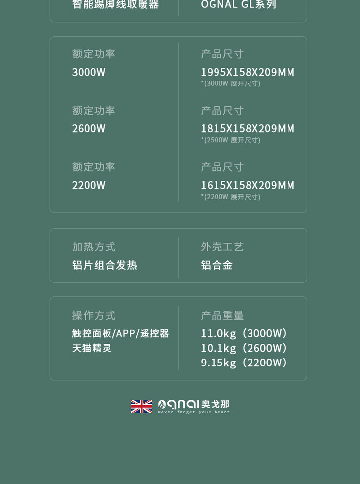 英国奥戈那OGNAL智能踢脚线取暖器OGNALGL系列,家用电暖器速热暖风机热风机加热器烤火炉智能遥控客厅卧室静音办公室