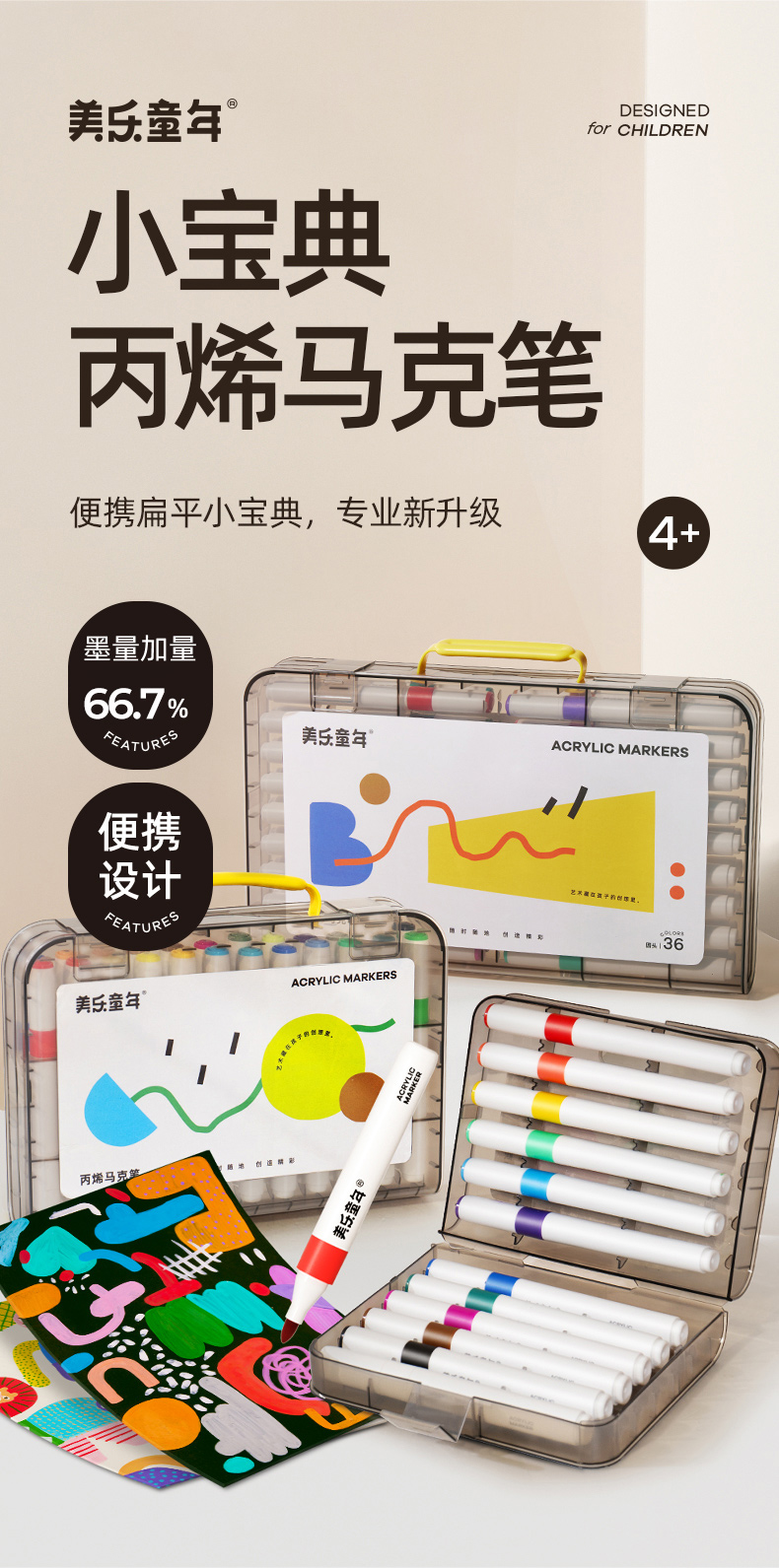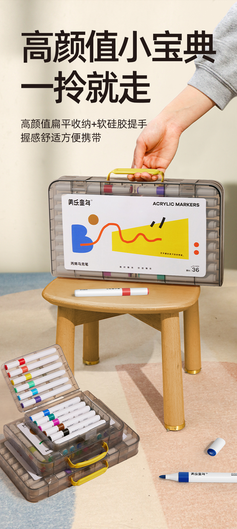 美乐童年小宝典丙烯马克笔小学生美术专用一年级幼儿园不透色可叠色儿童无毒可洗24色36色