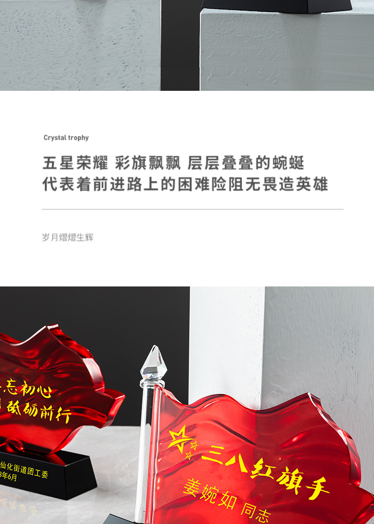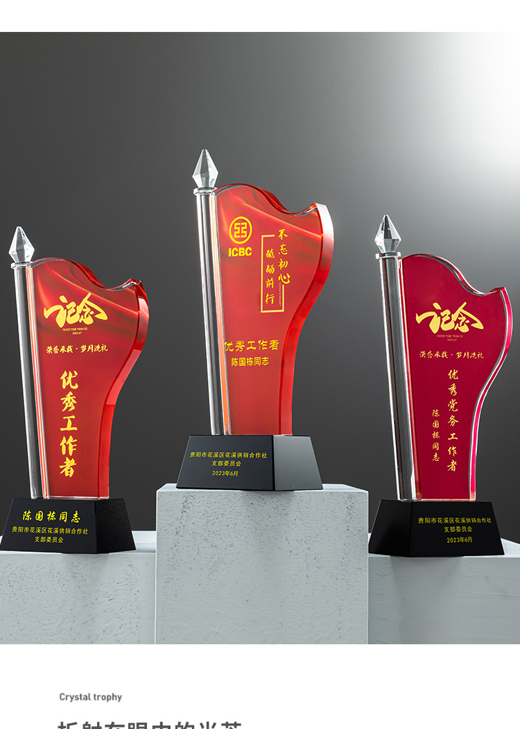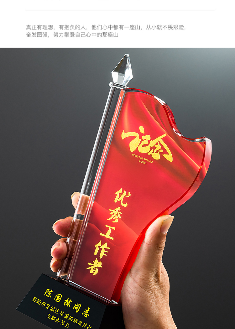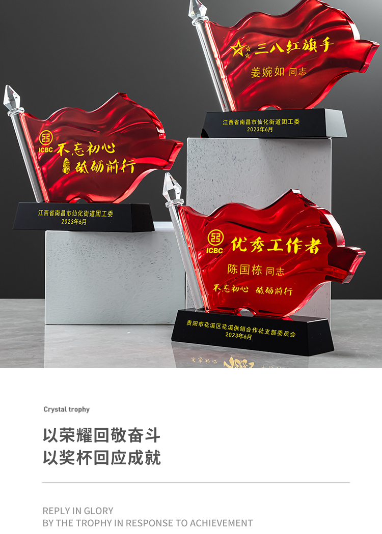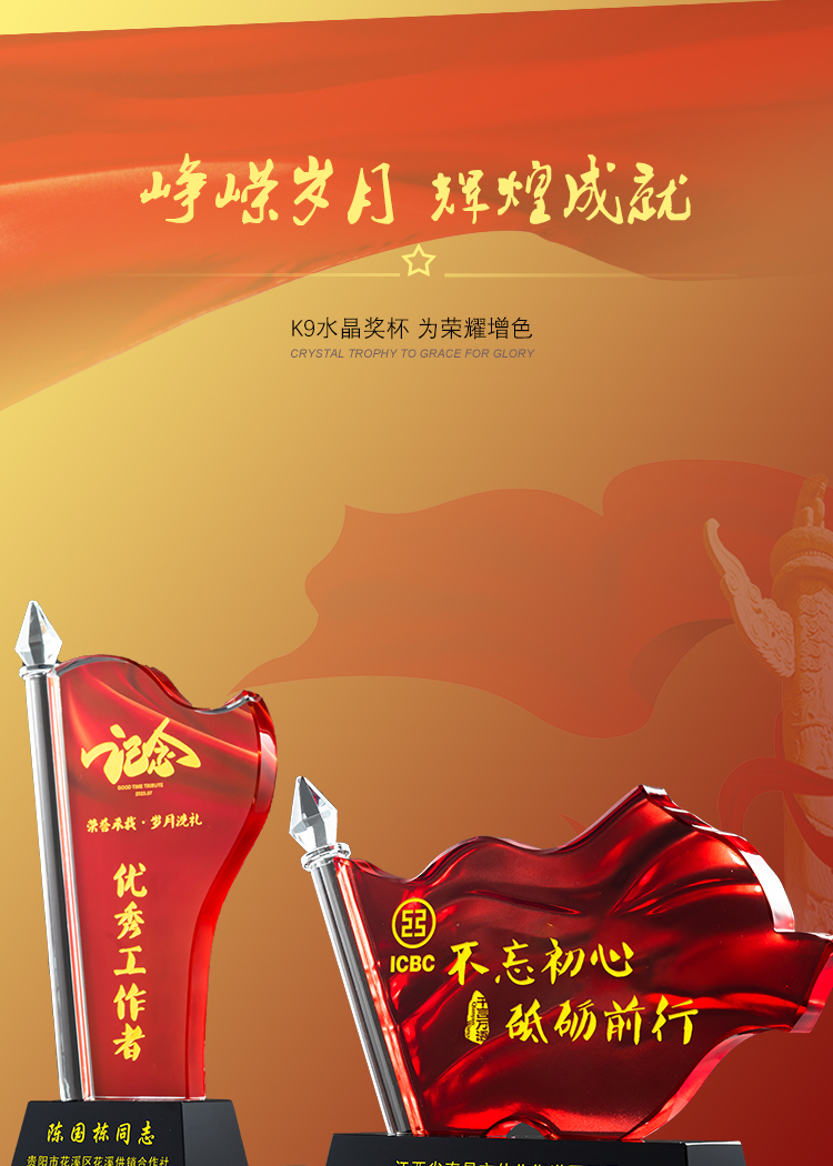 红旗水晶奖杯定制定做八一党建退伍表彰七一奖杯党员军人退休纪念