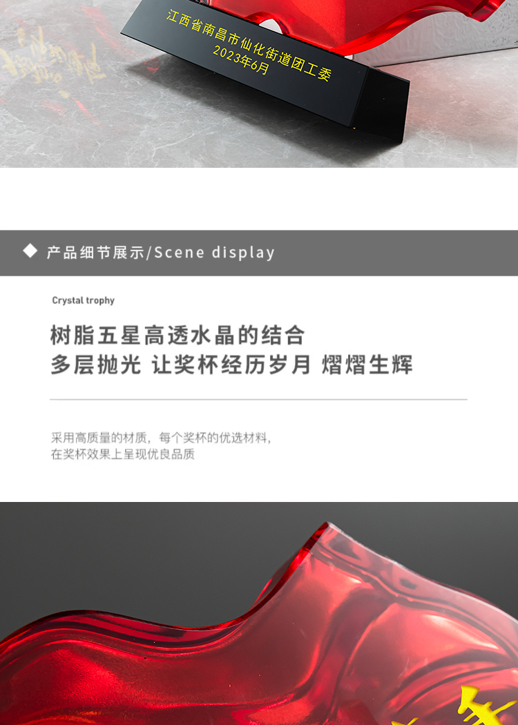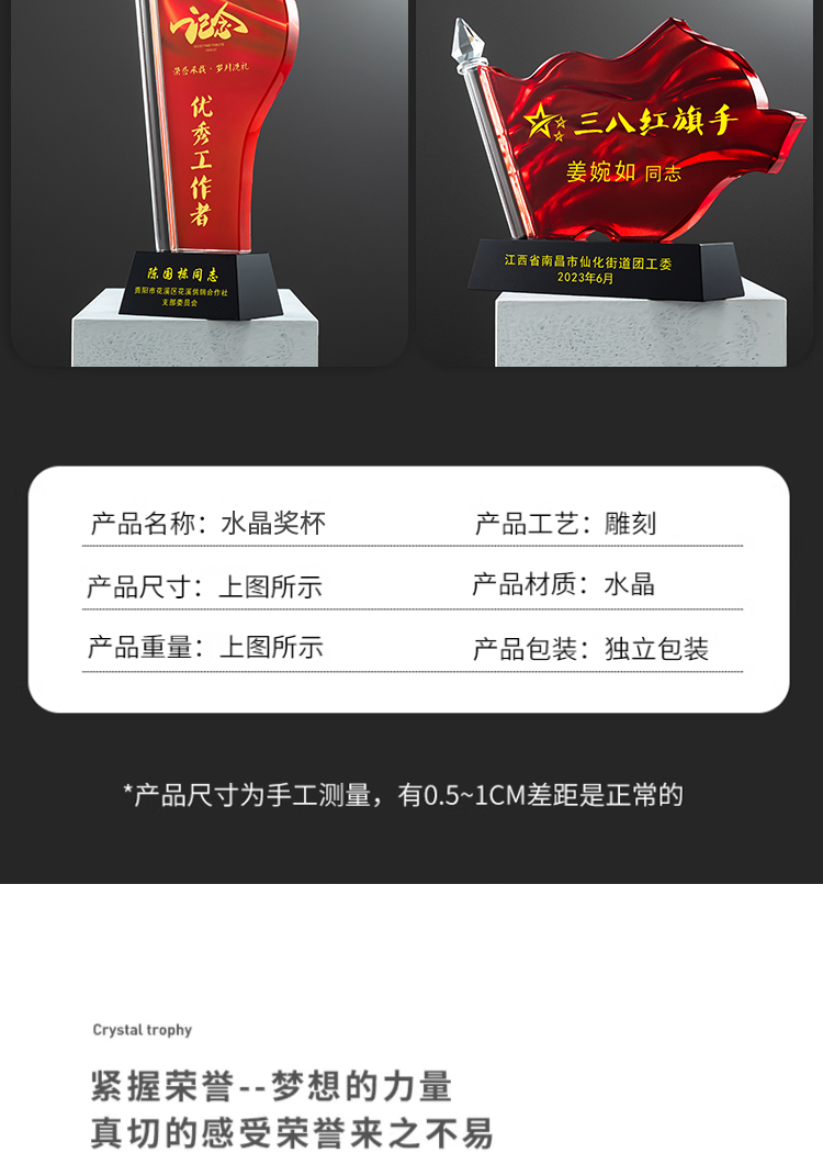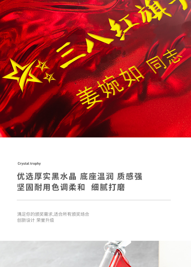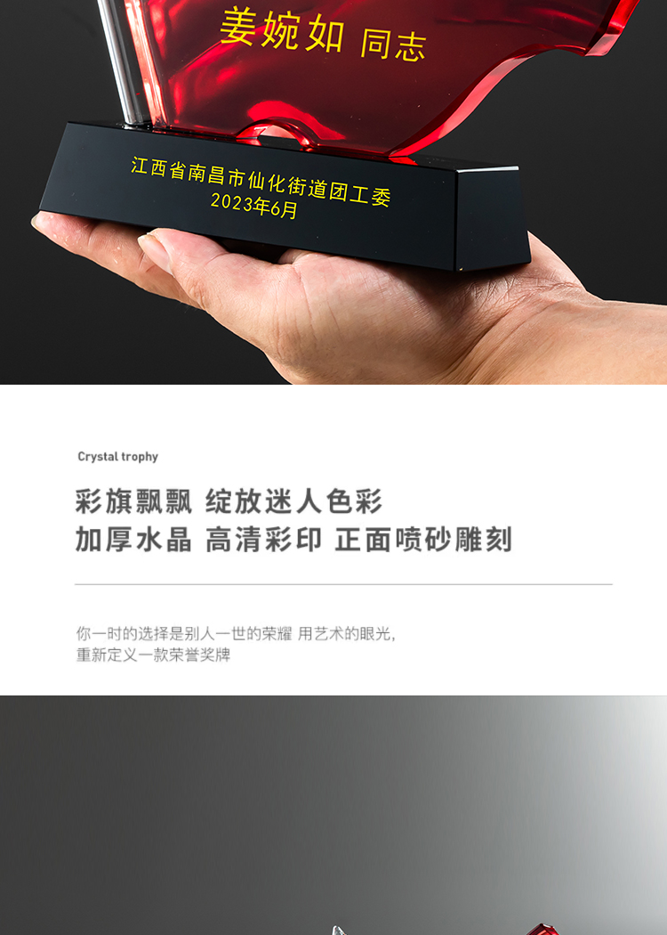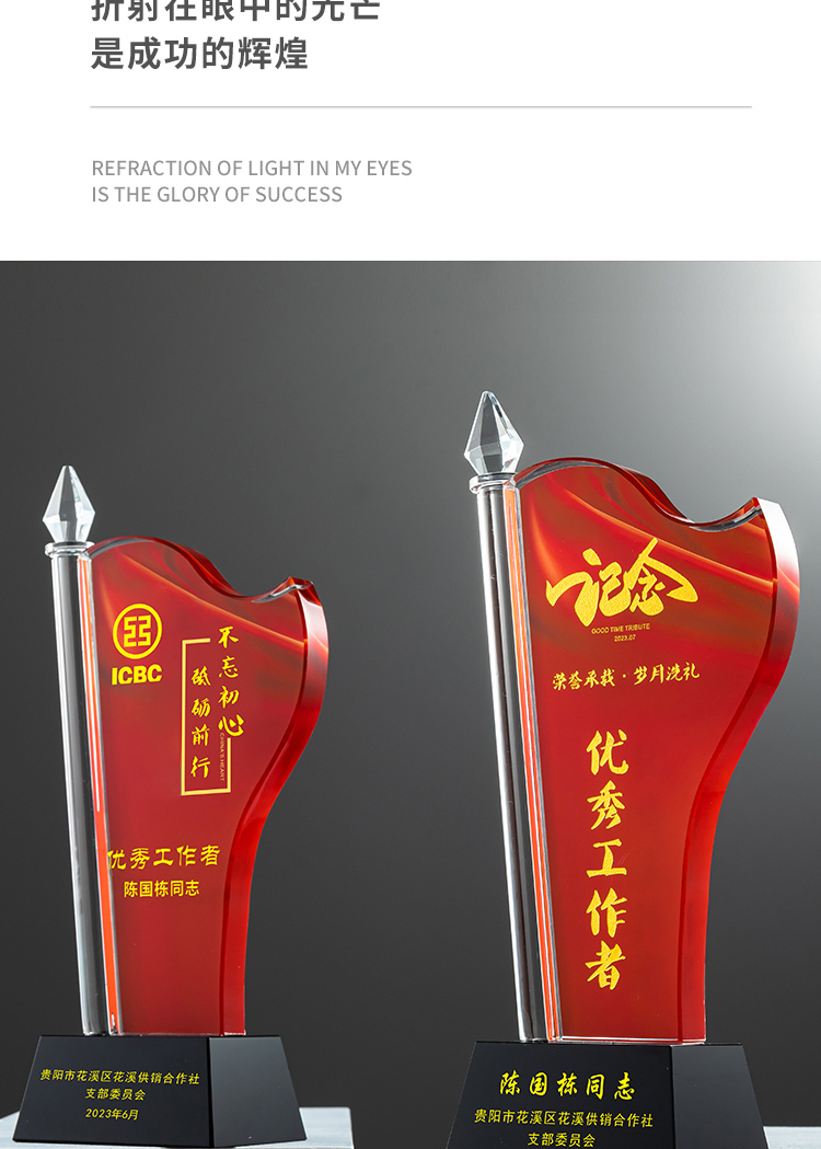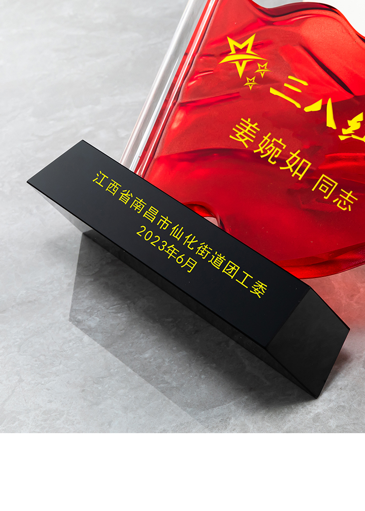红旗水晶奖杯定制定做八一党建退伍表彰七一奖杯党员军人退休纪念