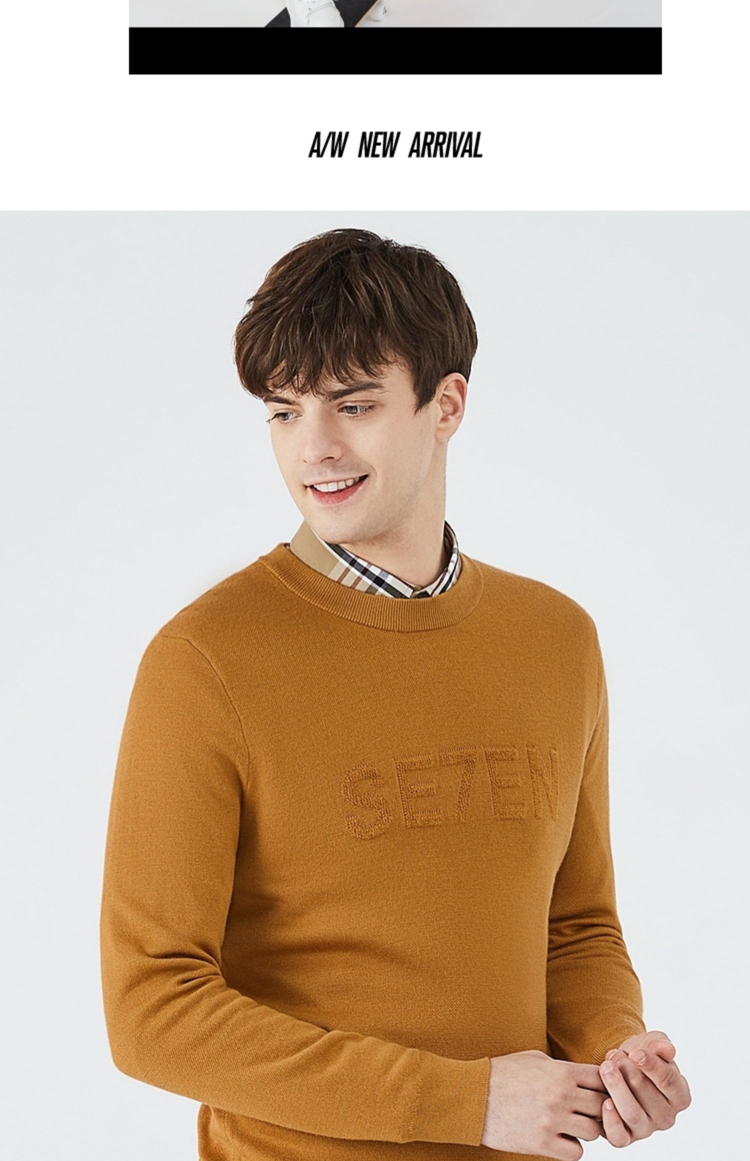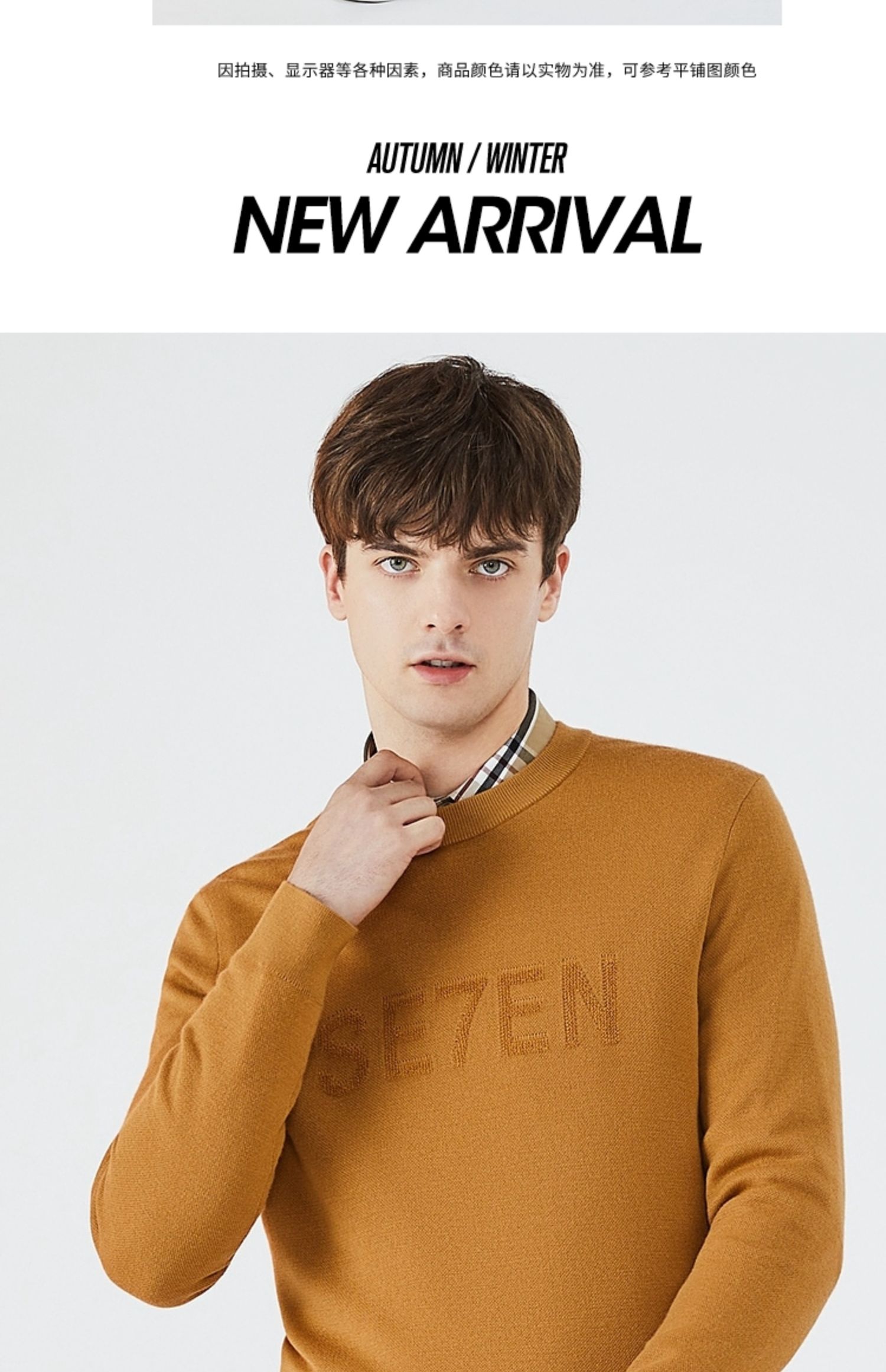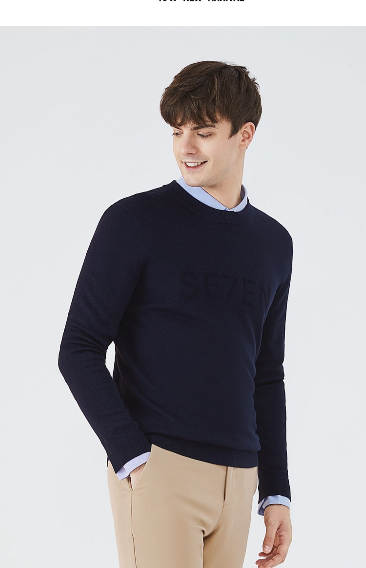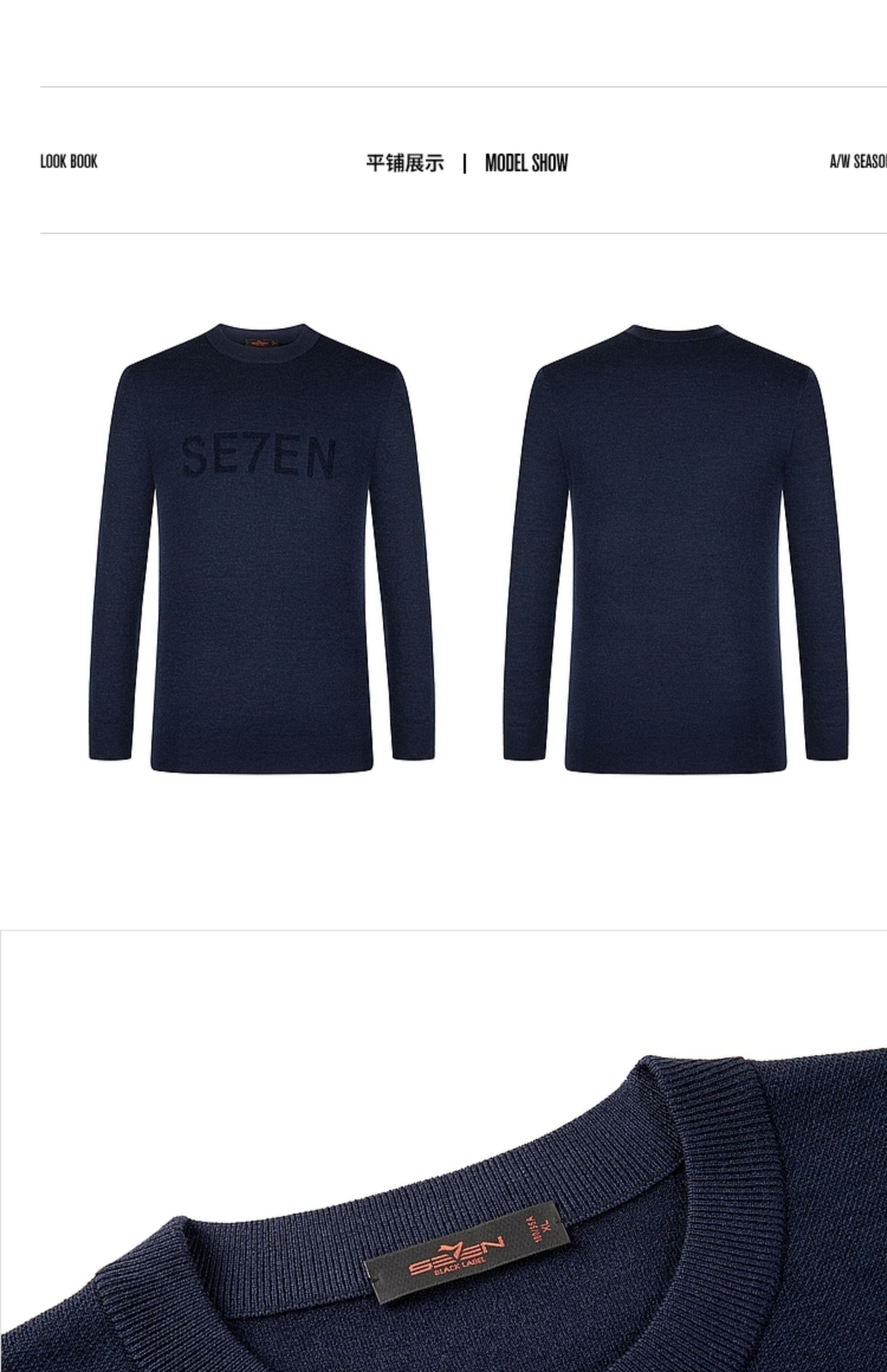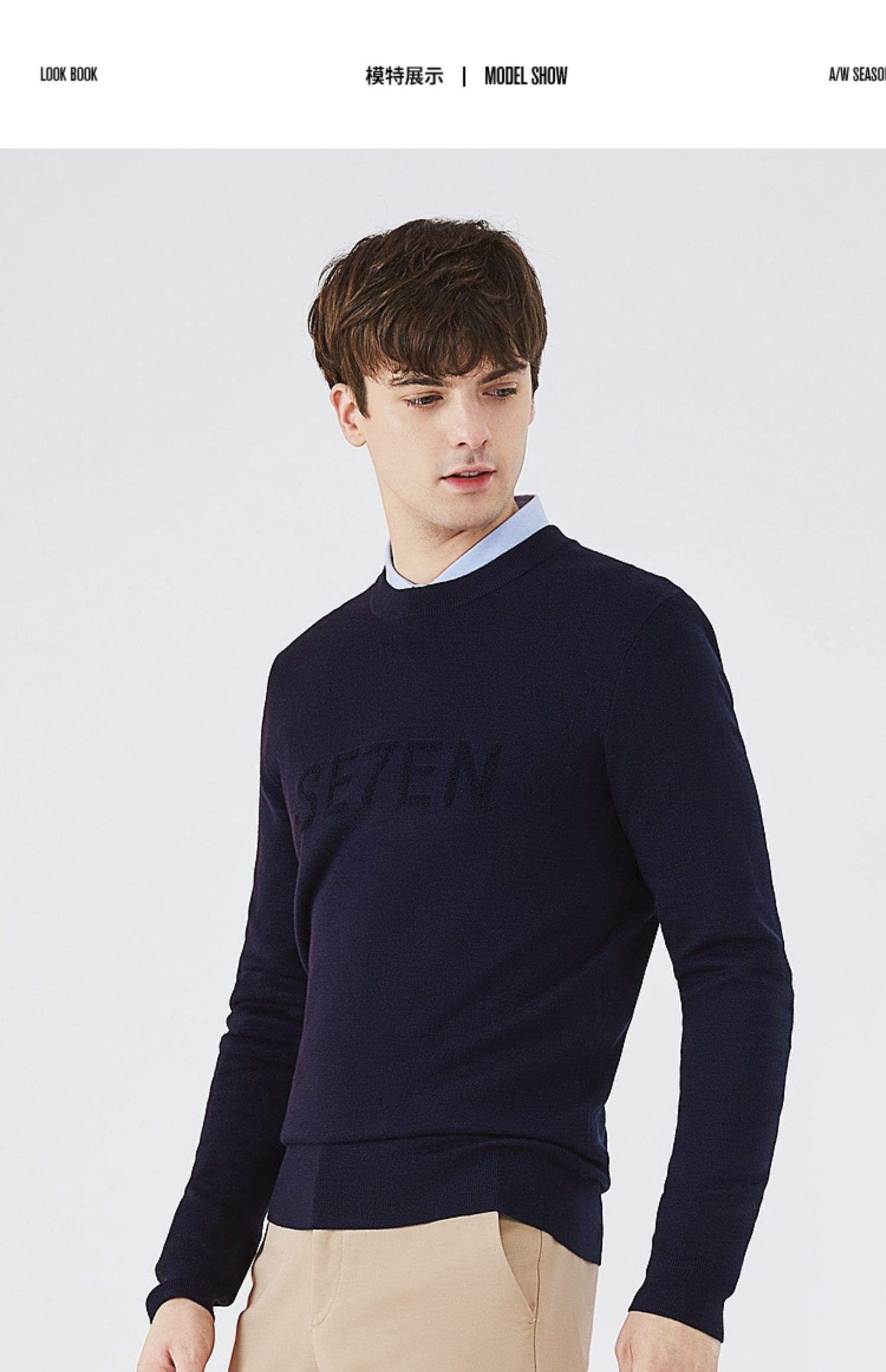 【可机洗毛衫】柒牌男士圆领毛衣秋冬新款时尚字母休闲弹力套头衫 123Y70290