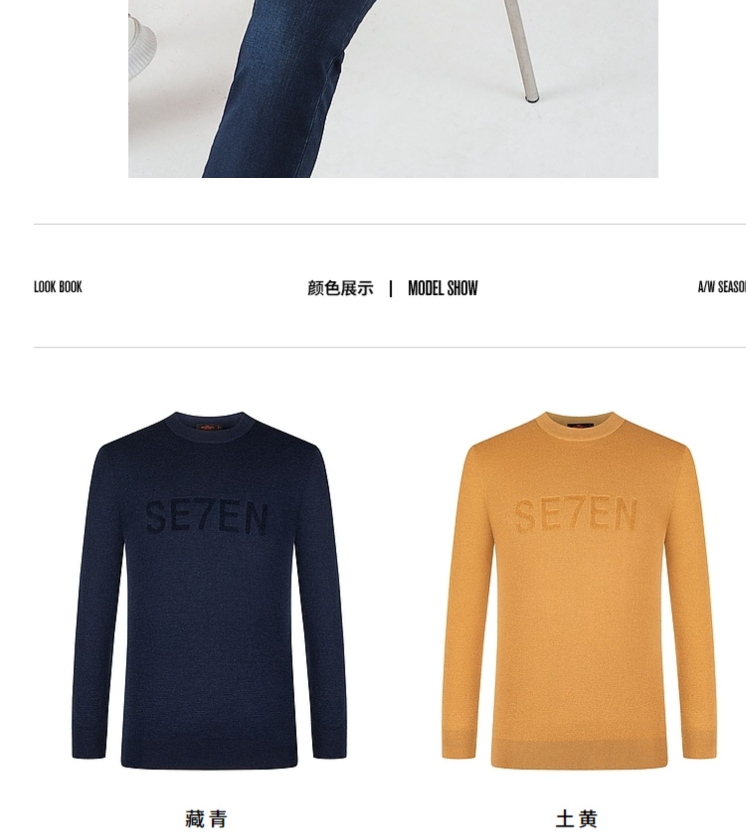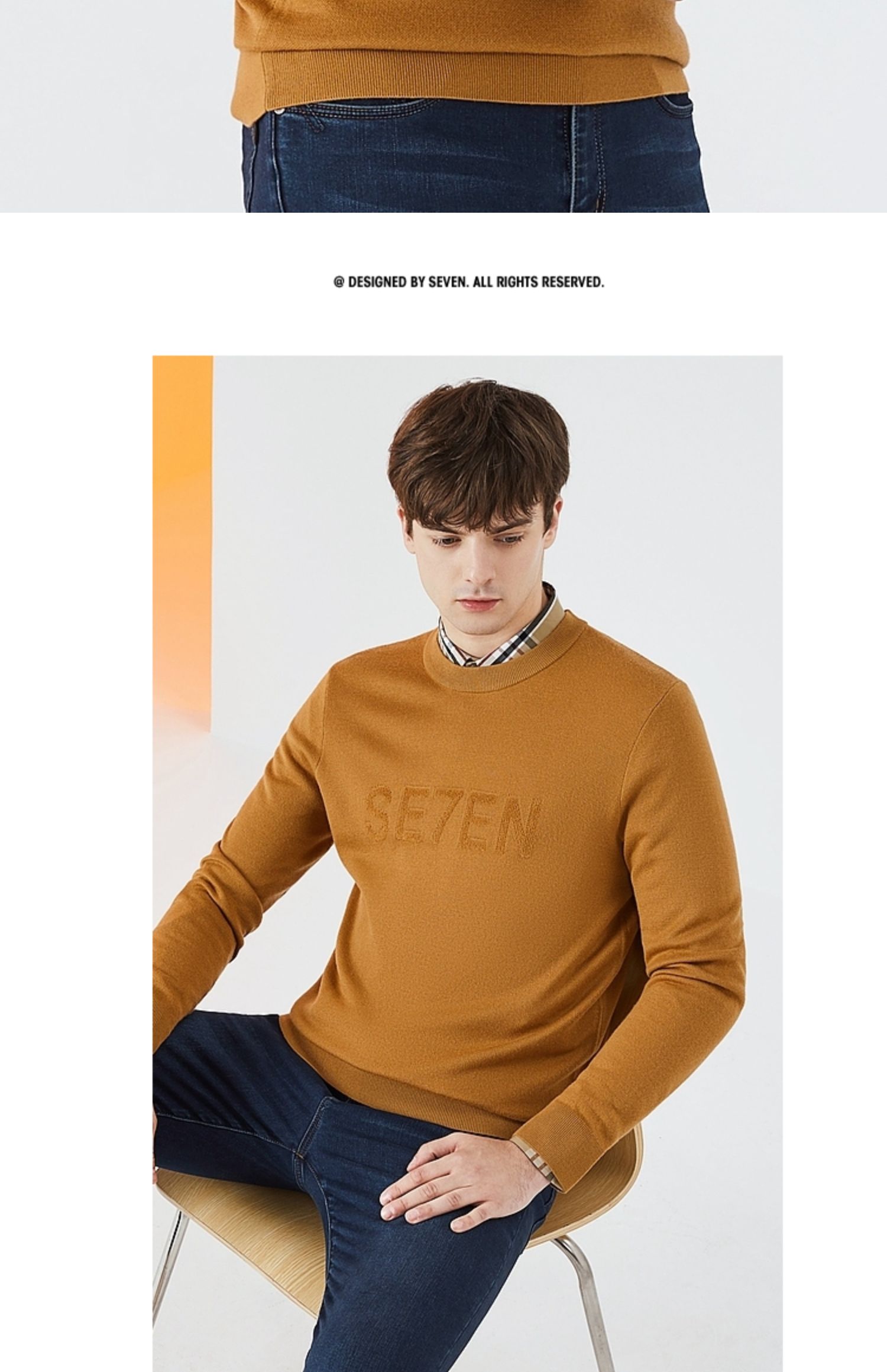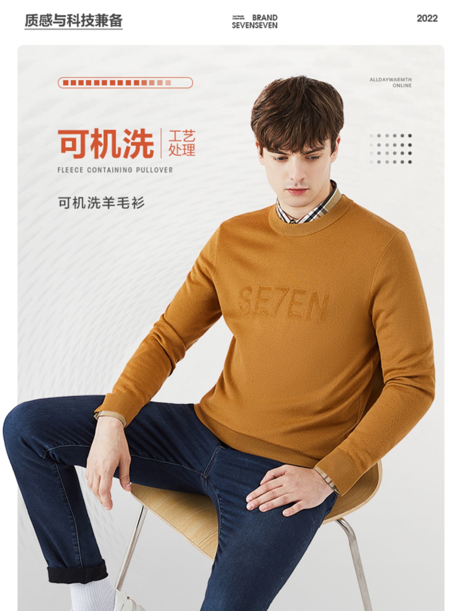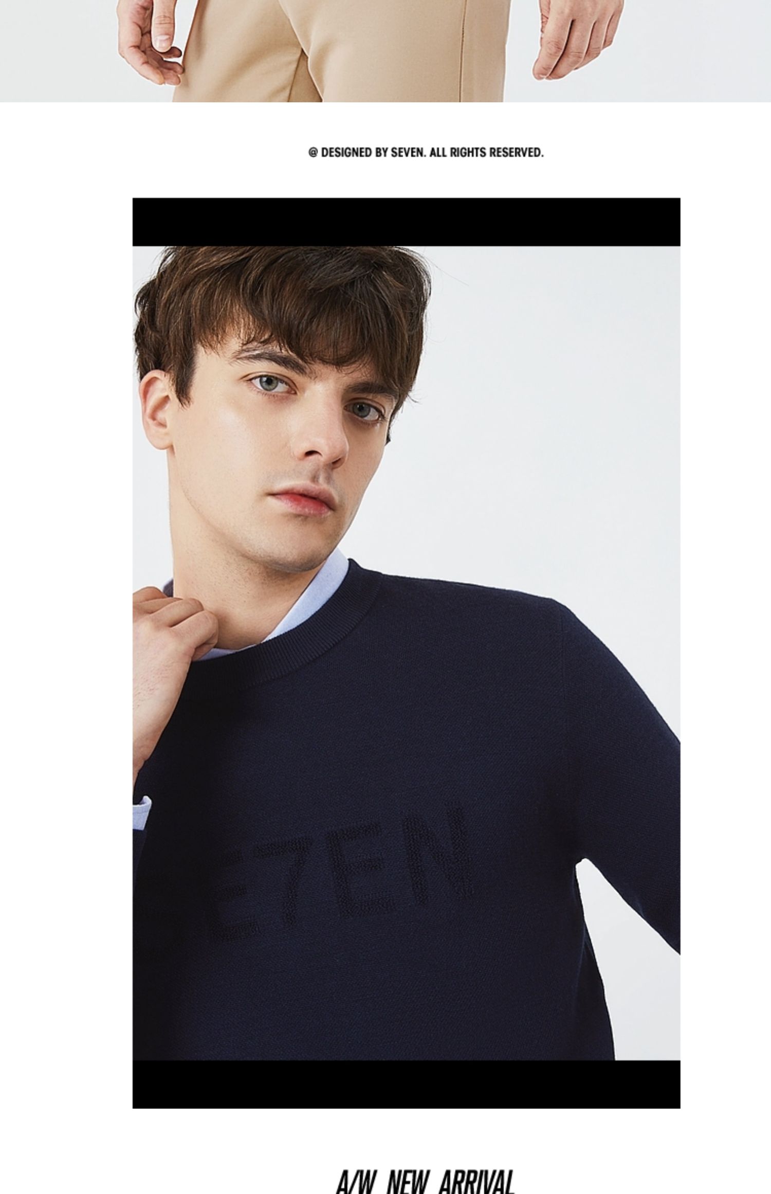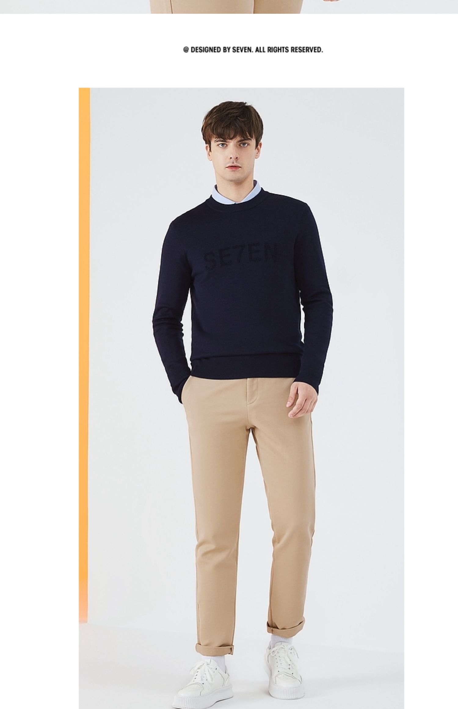 【可机洗毛衫】柒牌男士圆领毛衣秋冬新款时尚字母休闲弹力套头衫 123Y70290