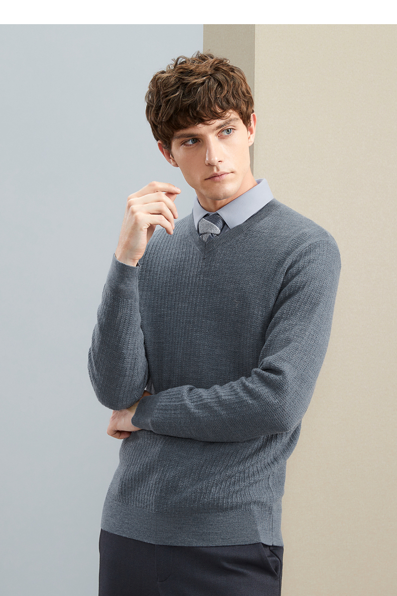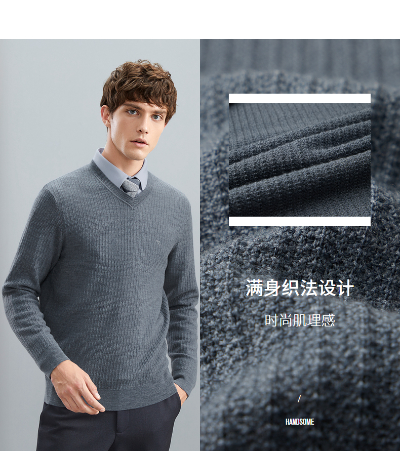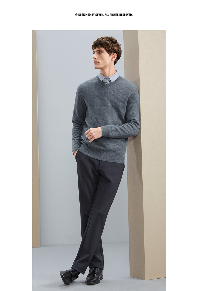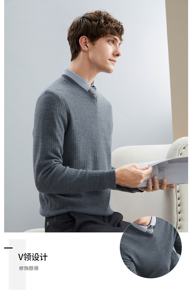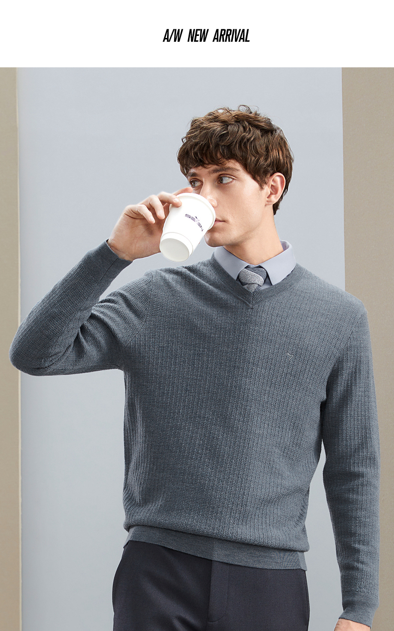 【纯羊毛】柒牌毛衣男秋冬新款商务休闲中青年长袖V领羊毛衫 125Y70210