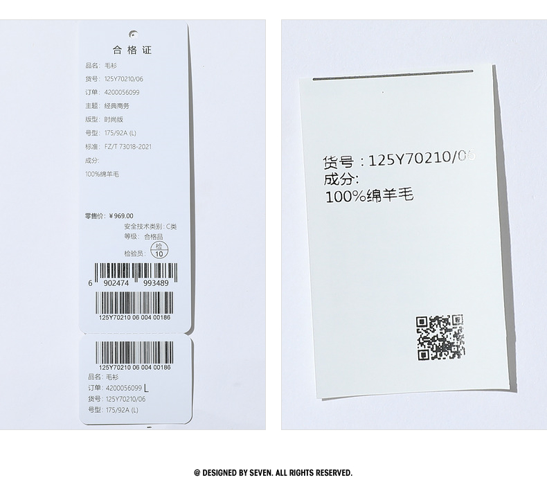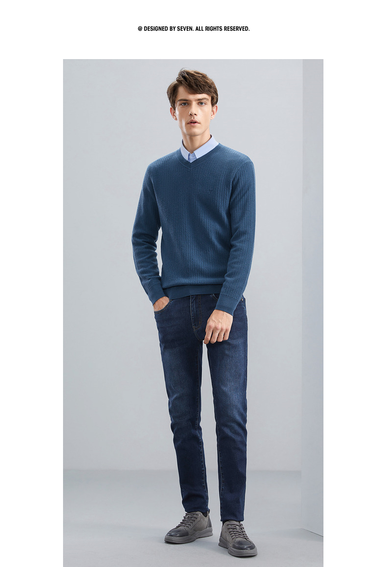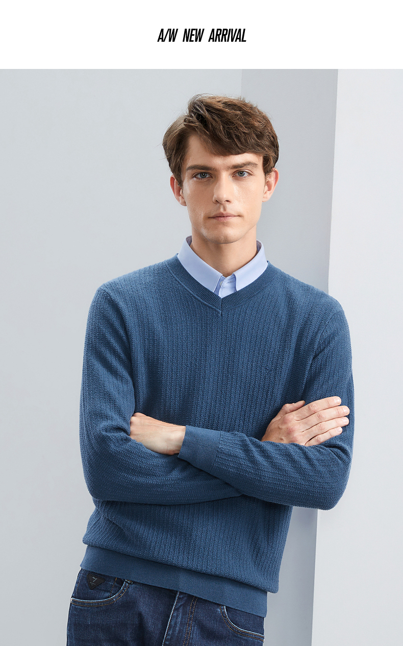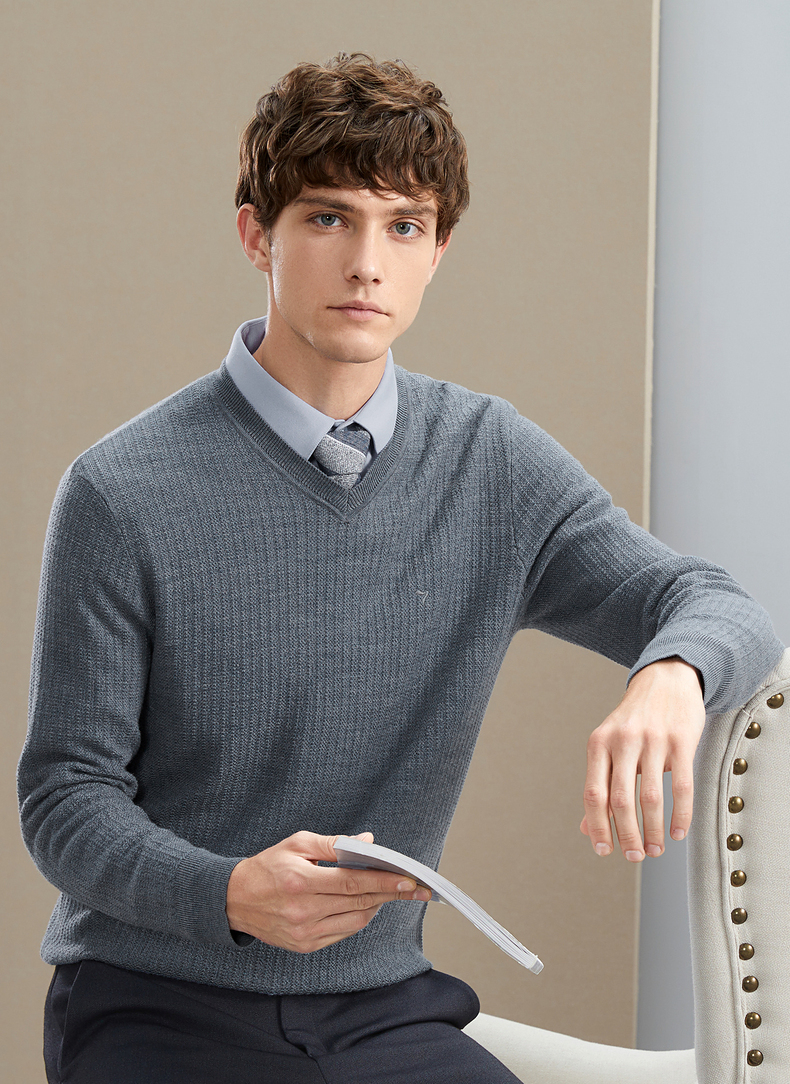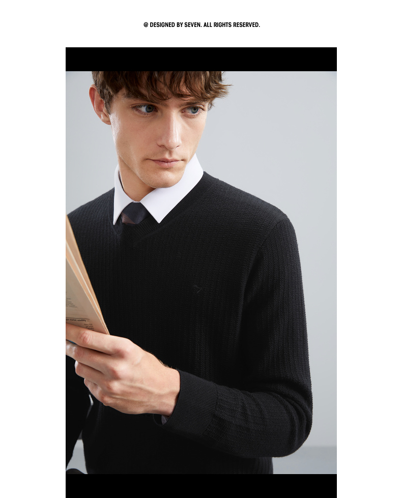 【纯羊毛】柒牌毛衣男秋冬新款商务休闲中青年长袖V领羊毛衫 125Y70210
