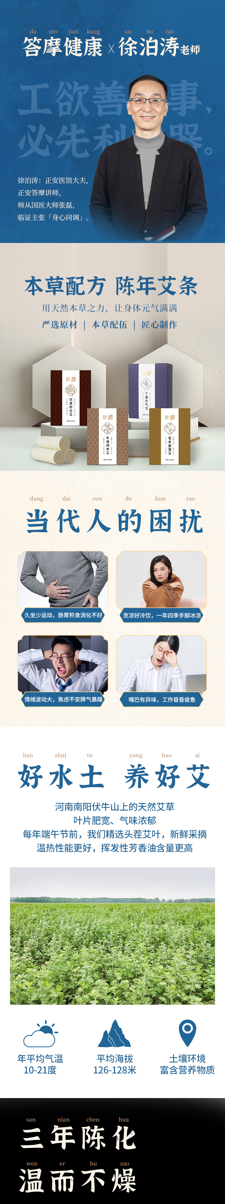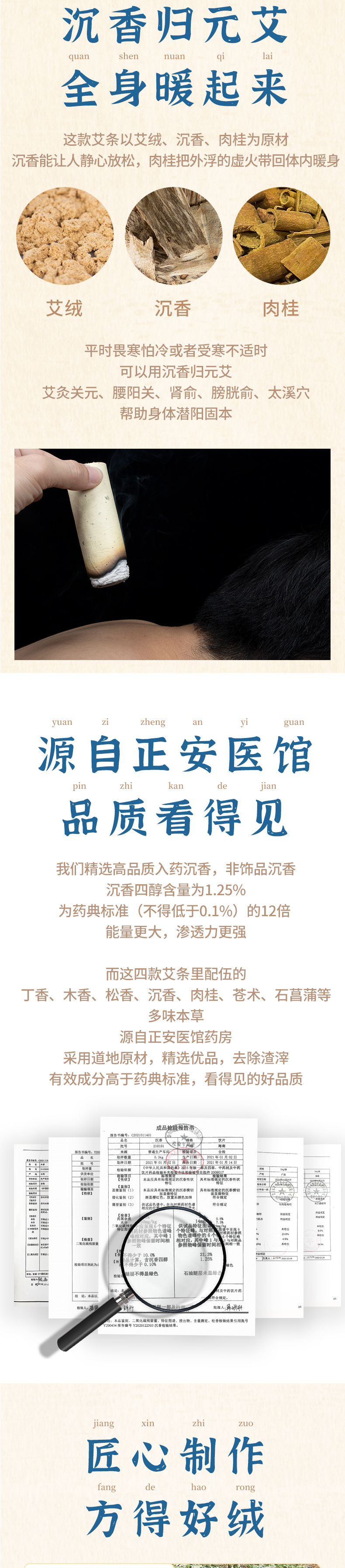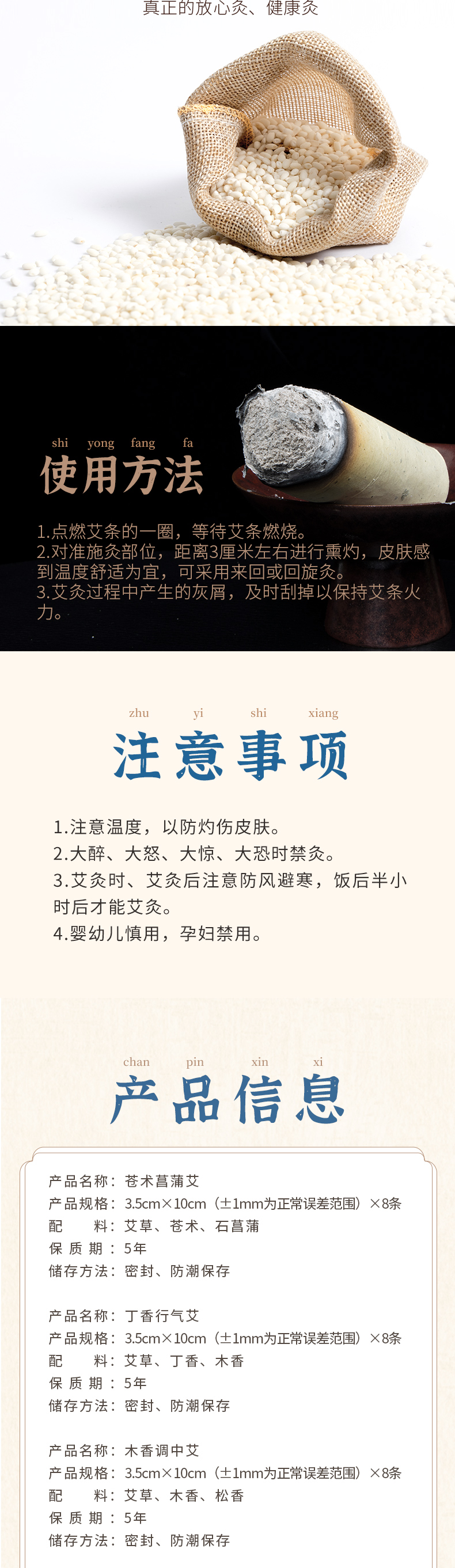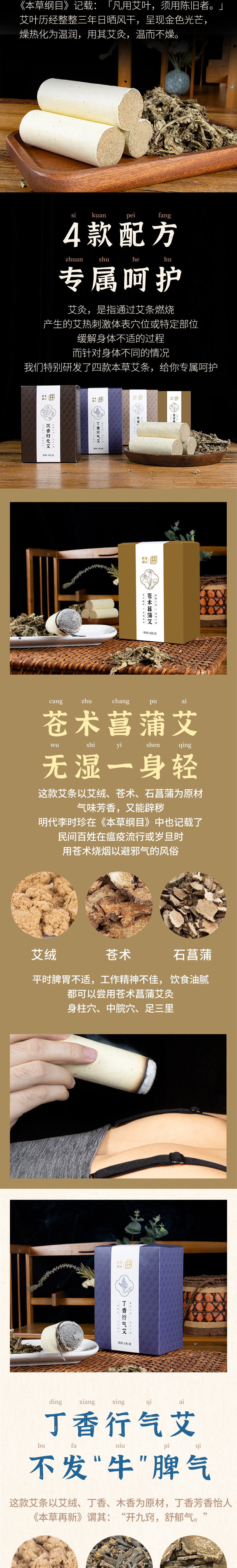 正安 苍术菖蒲艾/木香/丁香药艾徐泊涛老师监制的身心同调艾灸系列 10cm*3.5cm*8条
