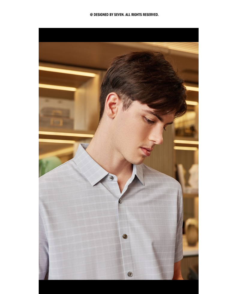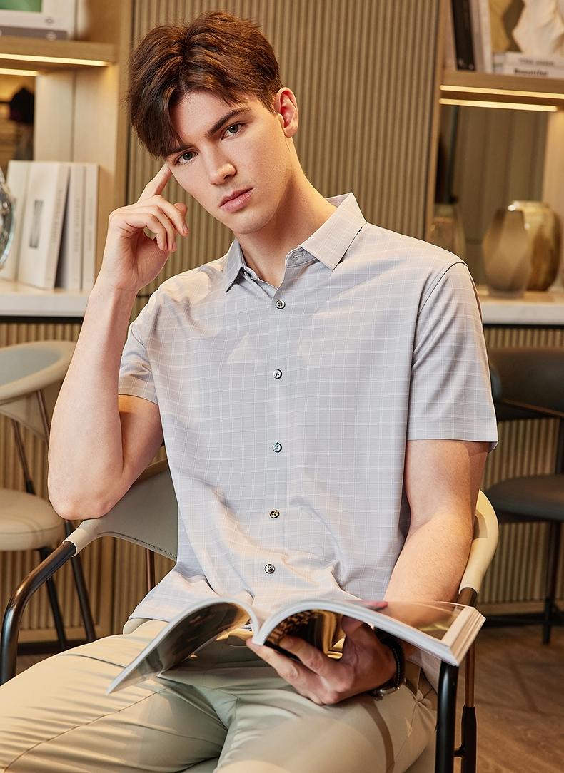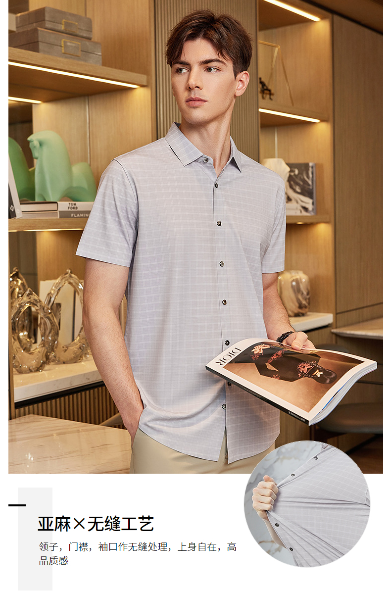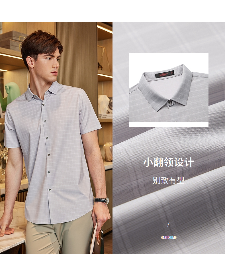 【高端系列】柒牌格纹短袖衬衫男2024夏季新款印花休闲中青年衬衣 126A70640
