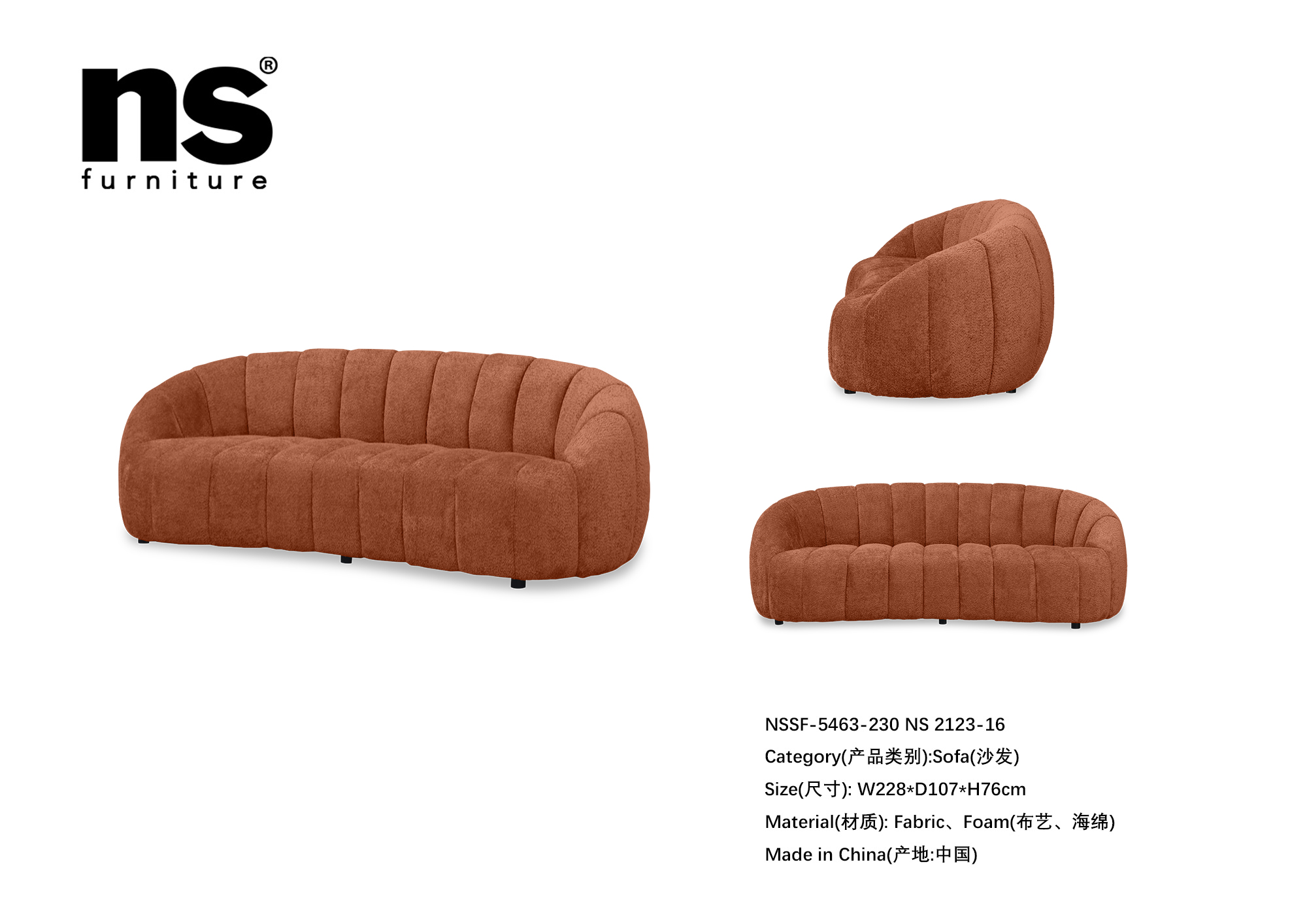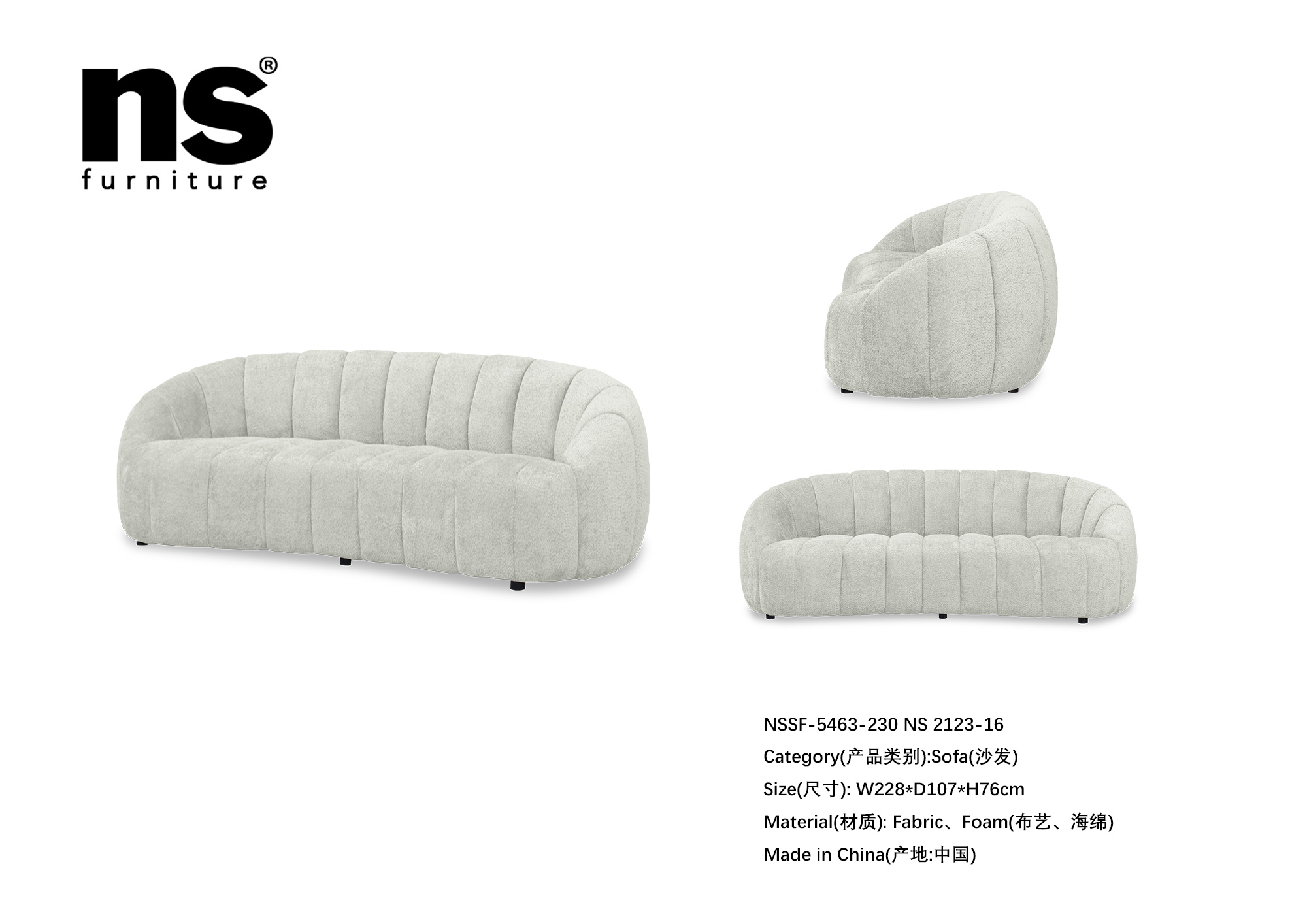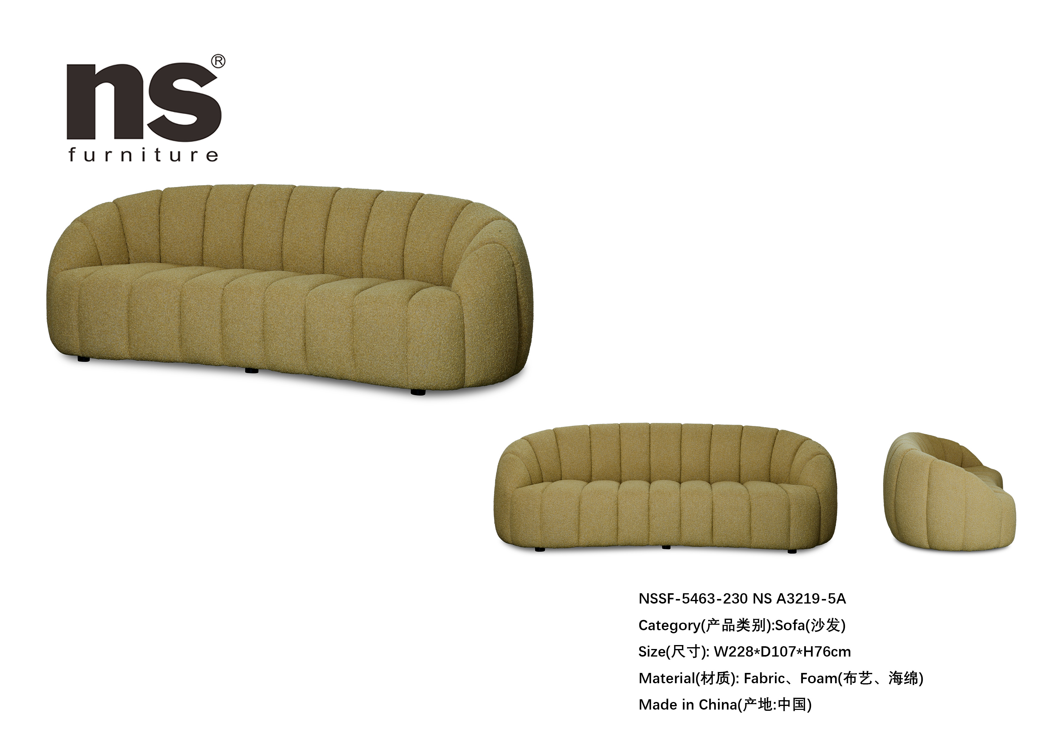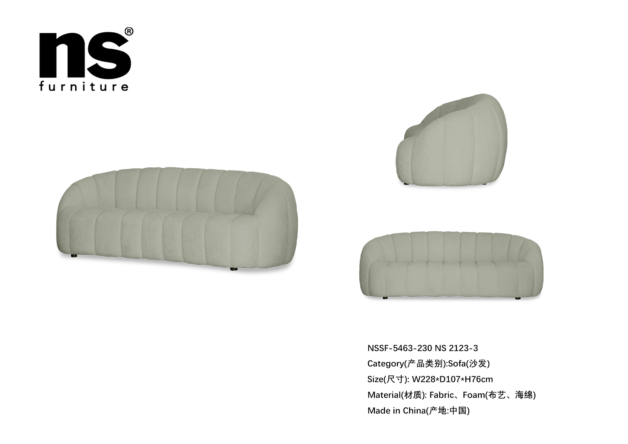 NS家居nsfurniture布艺三人位沙发NSSF-5463-230