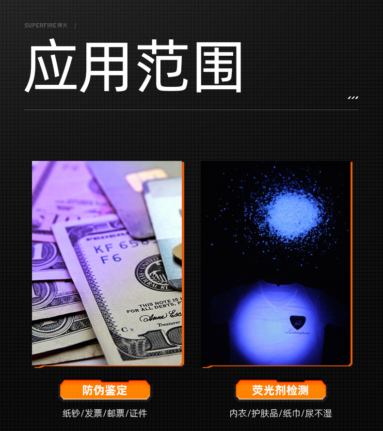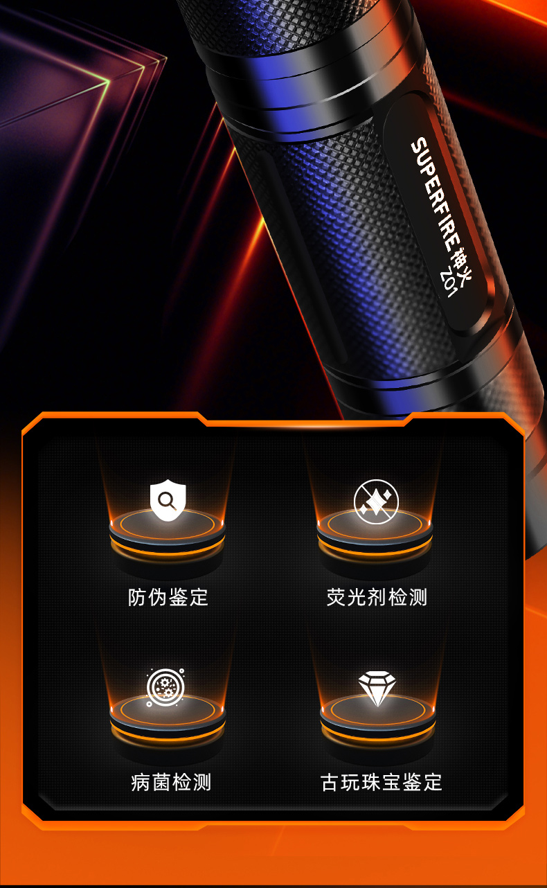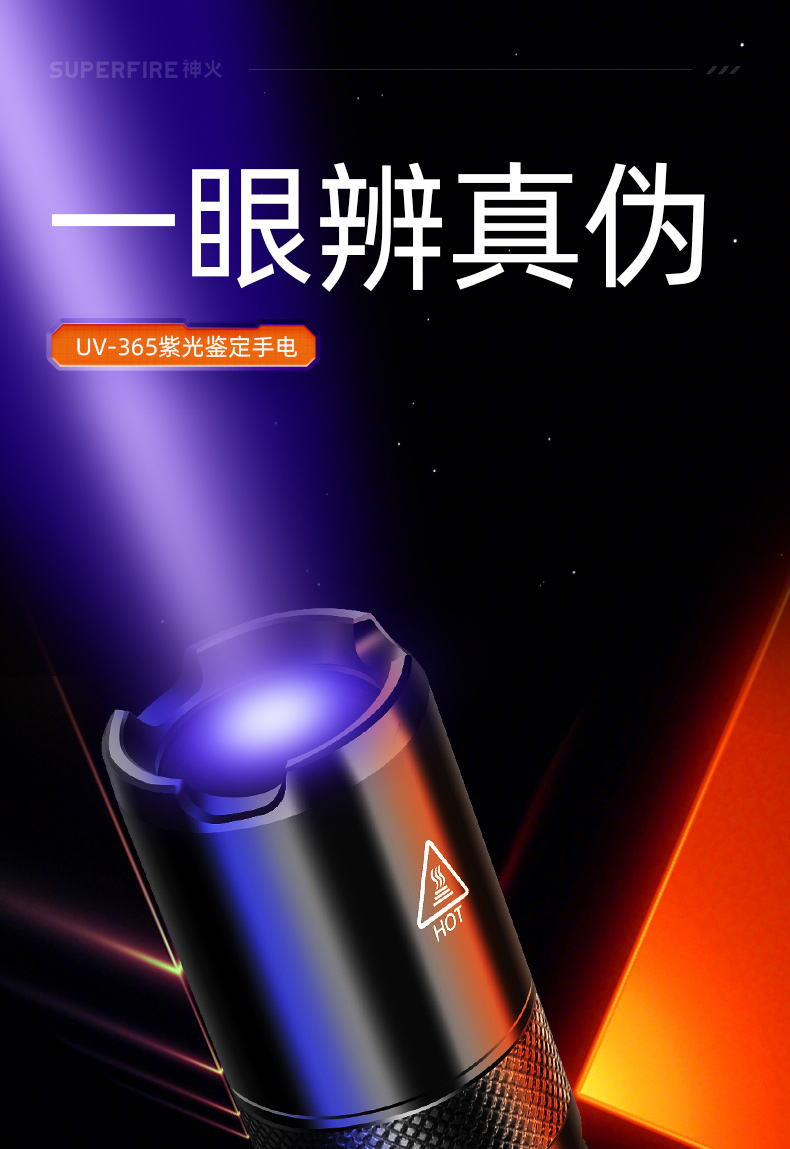 SUPERFIRE神火Z01紫光手电筒你便携小型紫外线鉴定防伪验钞灯照玉手电