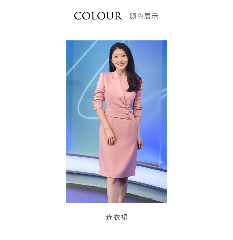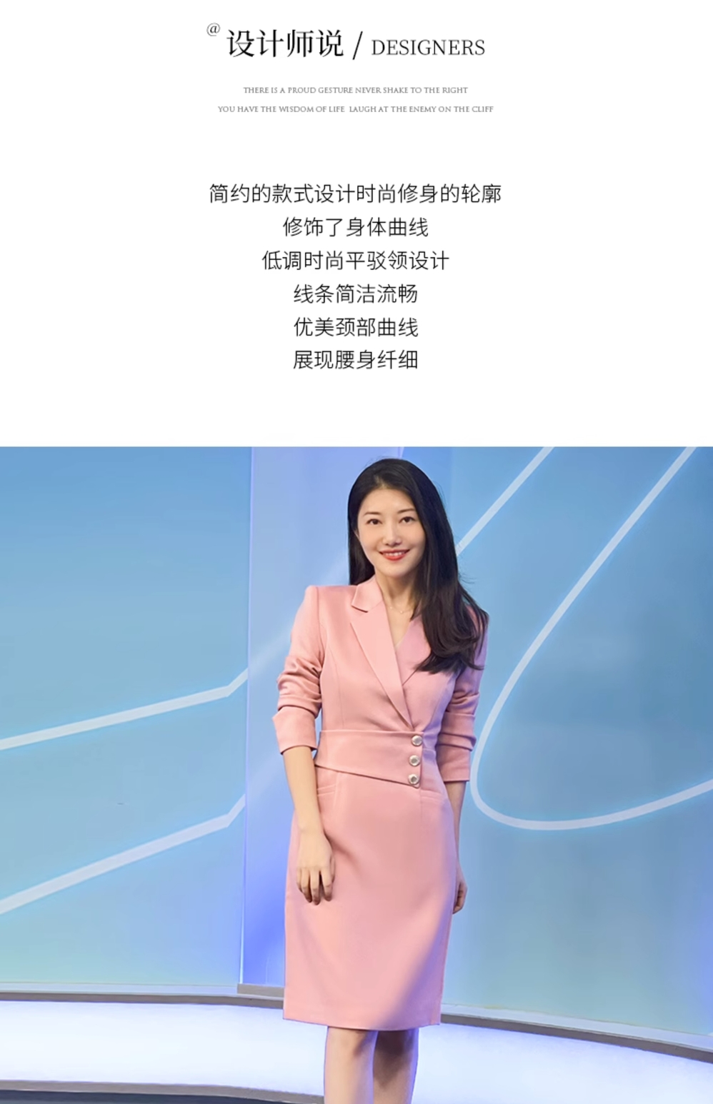 IWY/珊瑚粉时尚主持人正装女气质通勤职业套裙假两件西装22Q232