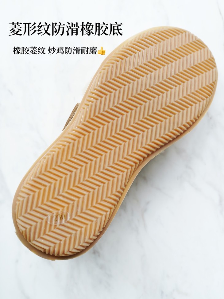 这个鞋底做的真的很不错,有很多这种菱形的小格子,起到了很好的防滑效果,雨天穿也不打滑,鞋底的减震效果也不错哦!
