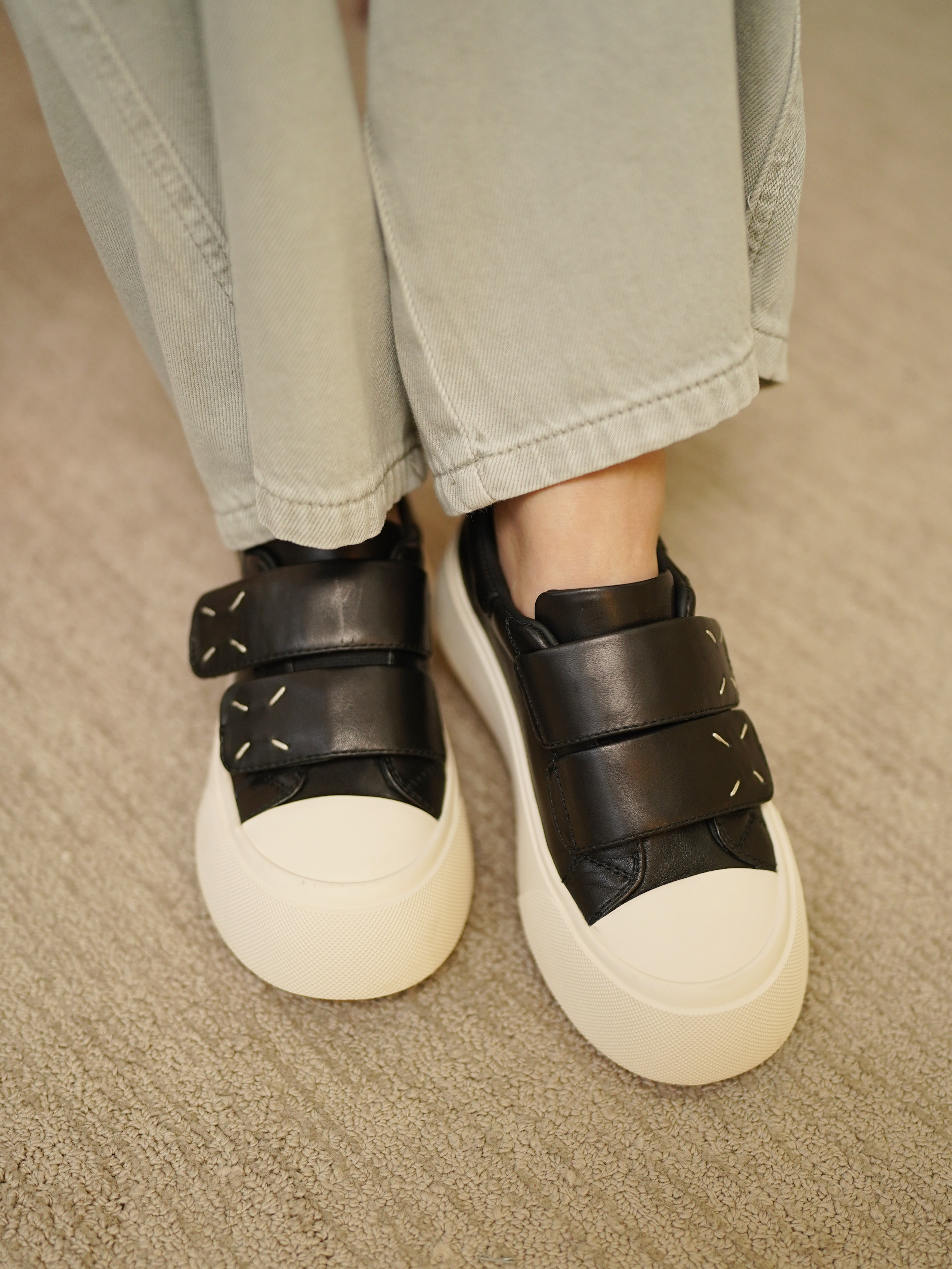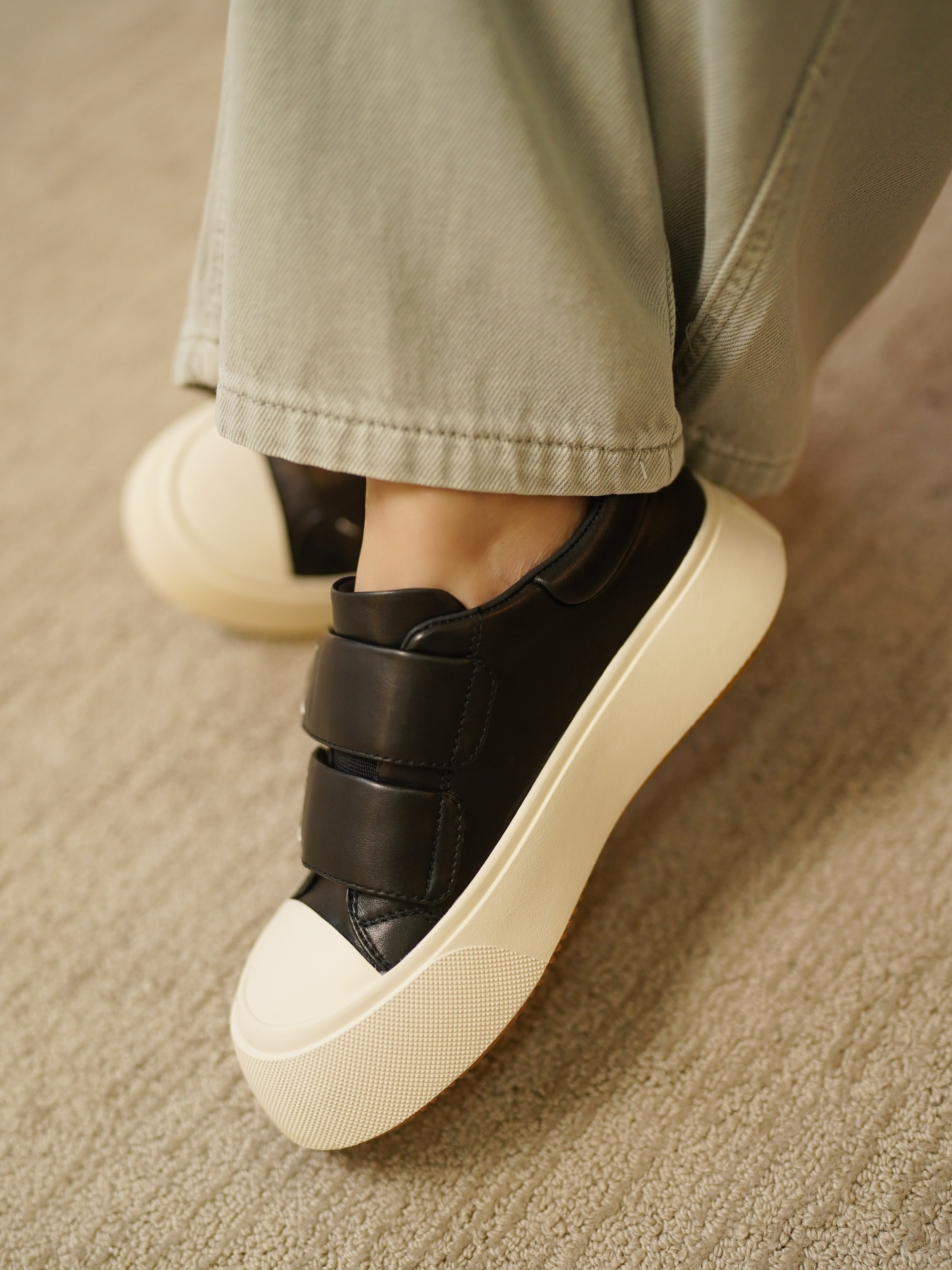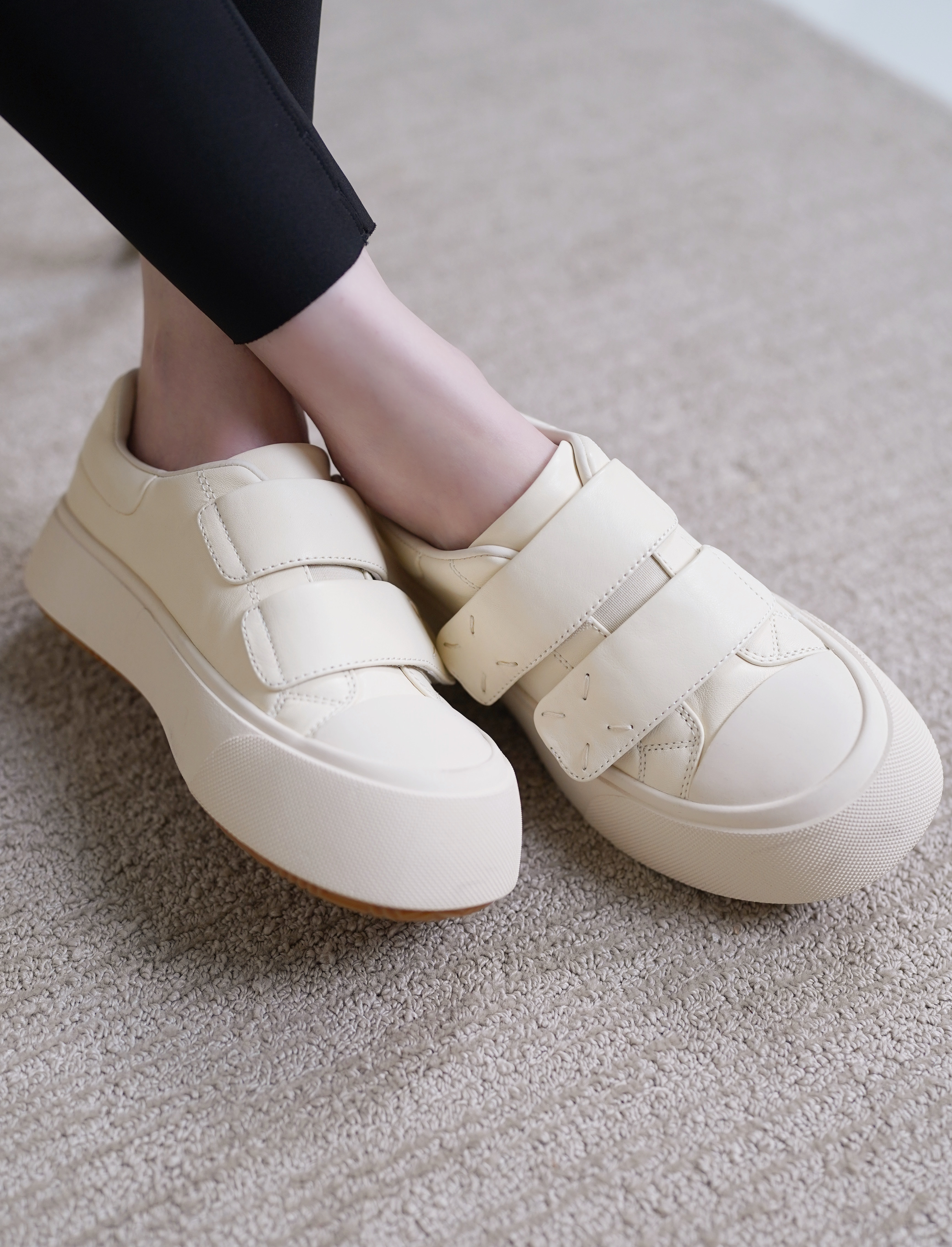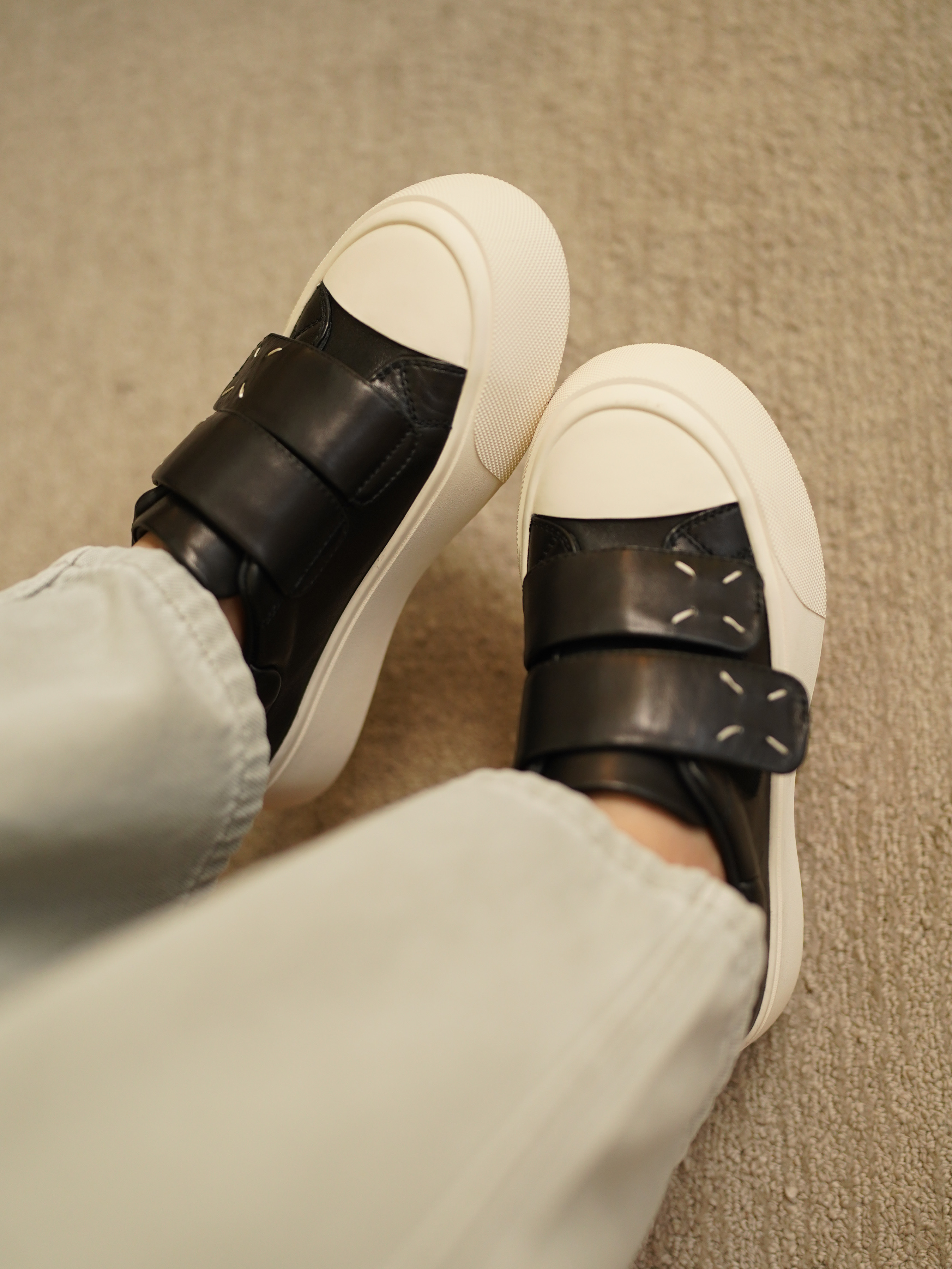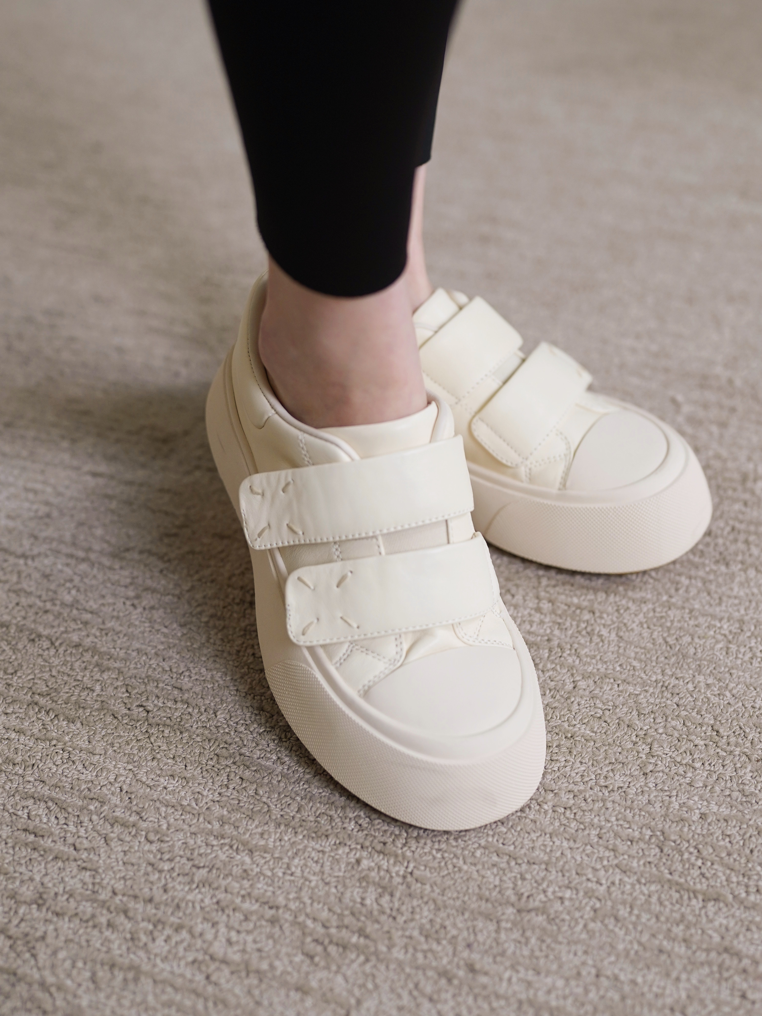 这次给大家带来的一双我很爱穿的魔术贴面包鞋,好好穿,去哪都方便!不用系鞋带!而且真的很好搭配哦~~😄它其实也是之前开团过的毛毛款面包鞋的四季升级版 ~
