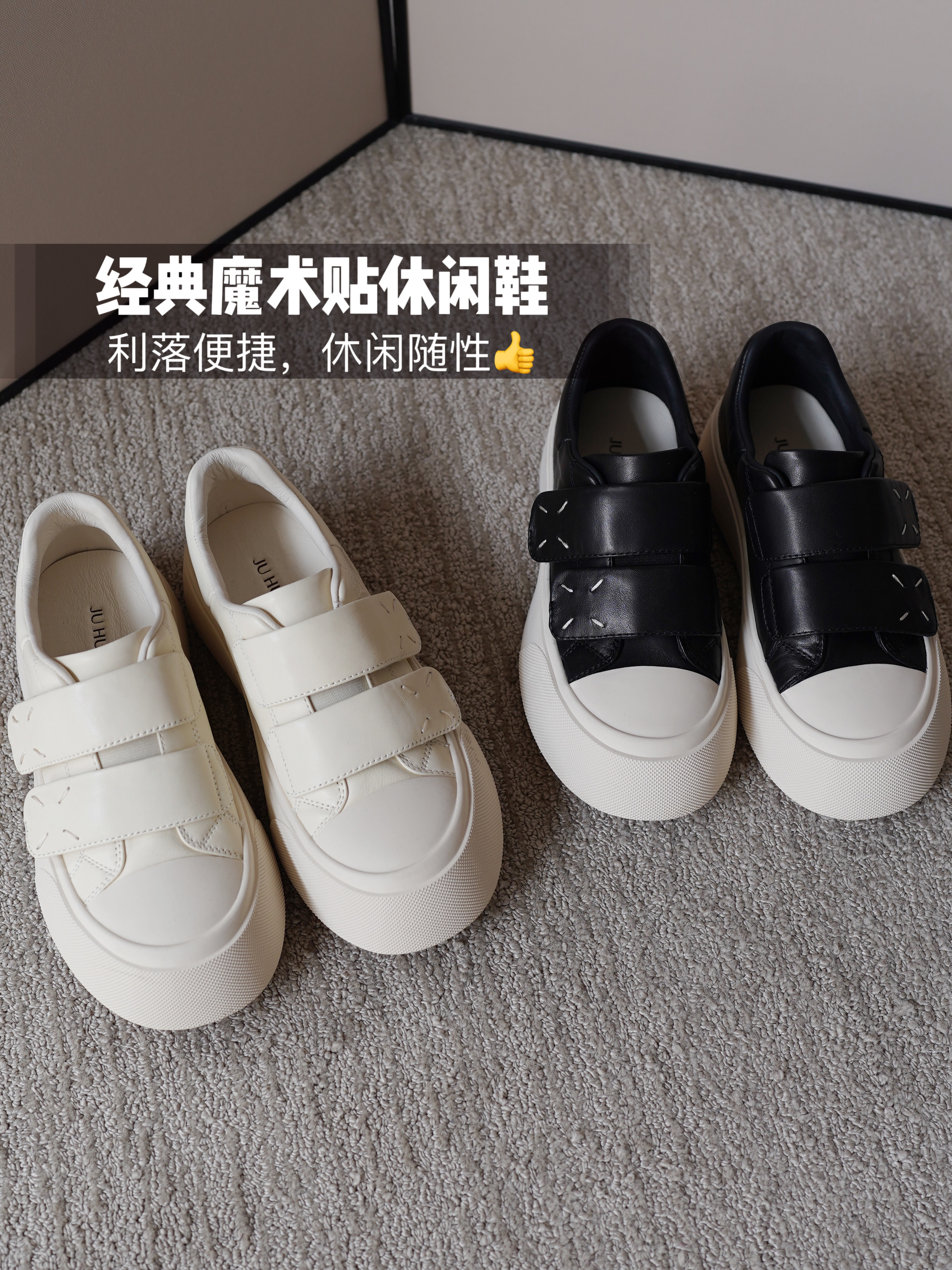 像我自己,我就很爱穿这种魔术贴的,粘上就走,非常方便省心👍🏻这家鞋子花花团也是合作挺久的了,本身很有实力不说,鞋子的品质真是让我有一直和他家合作下去的动力😄