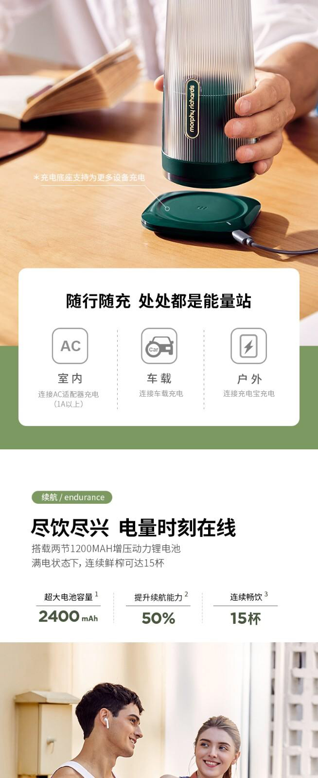 摩飞是小型榨汁杯里的网红品牌,颜值够,支持无线充电,很方便