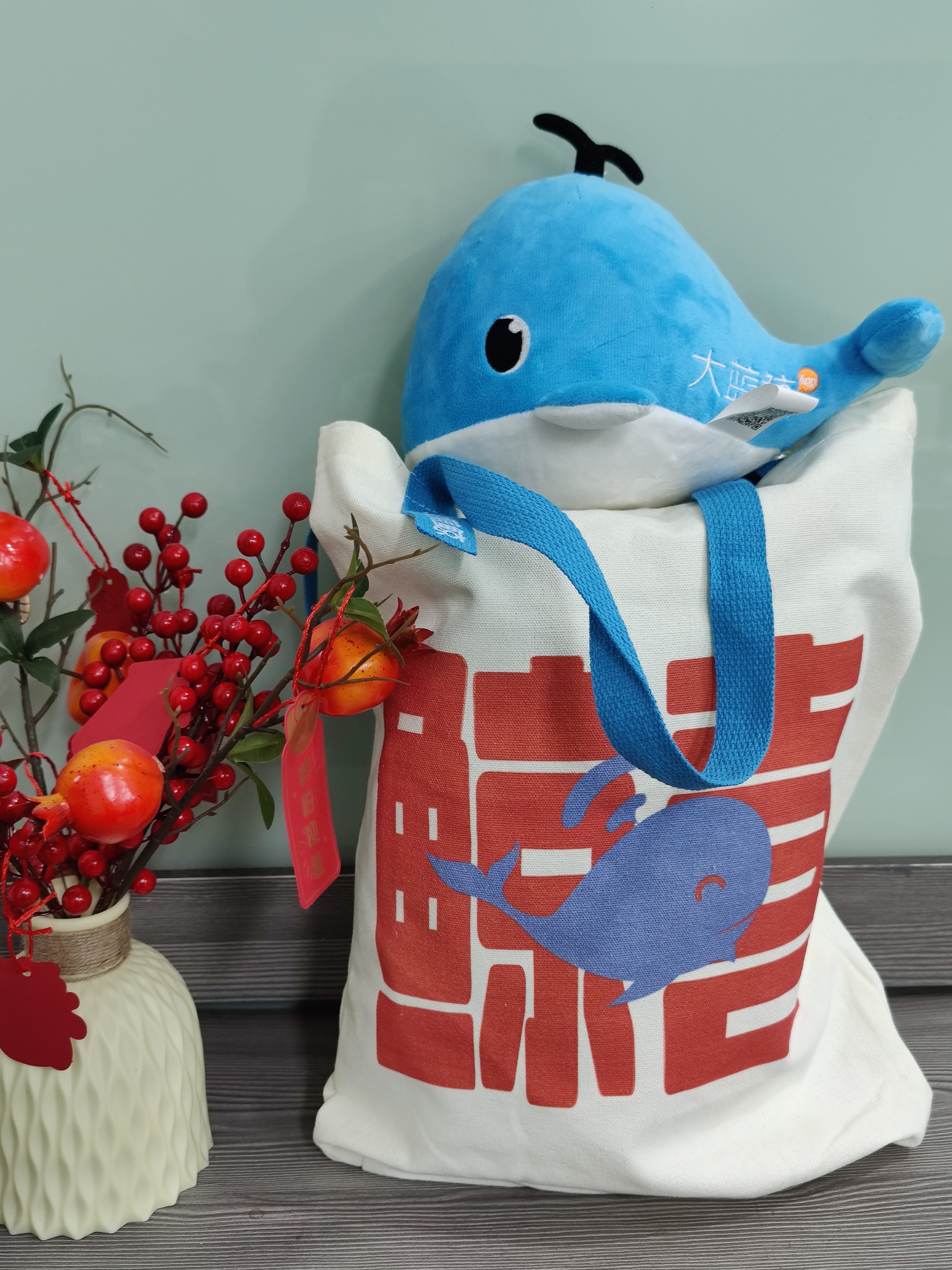 大蓝鲸精选鲸喜福袋(内含大蓝鲸定制鲸喜帆布袋、大蓝鲸玩偶、江苏广播珍藏版书籍、养生锤、鲸喜盆栽、国潮擦手巾)